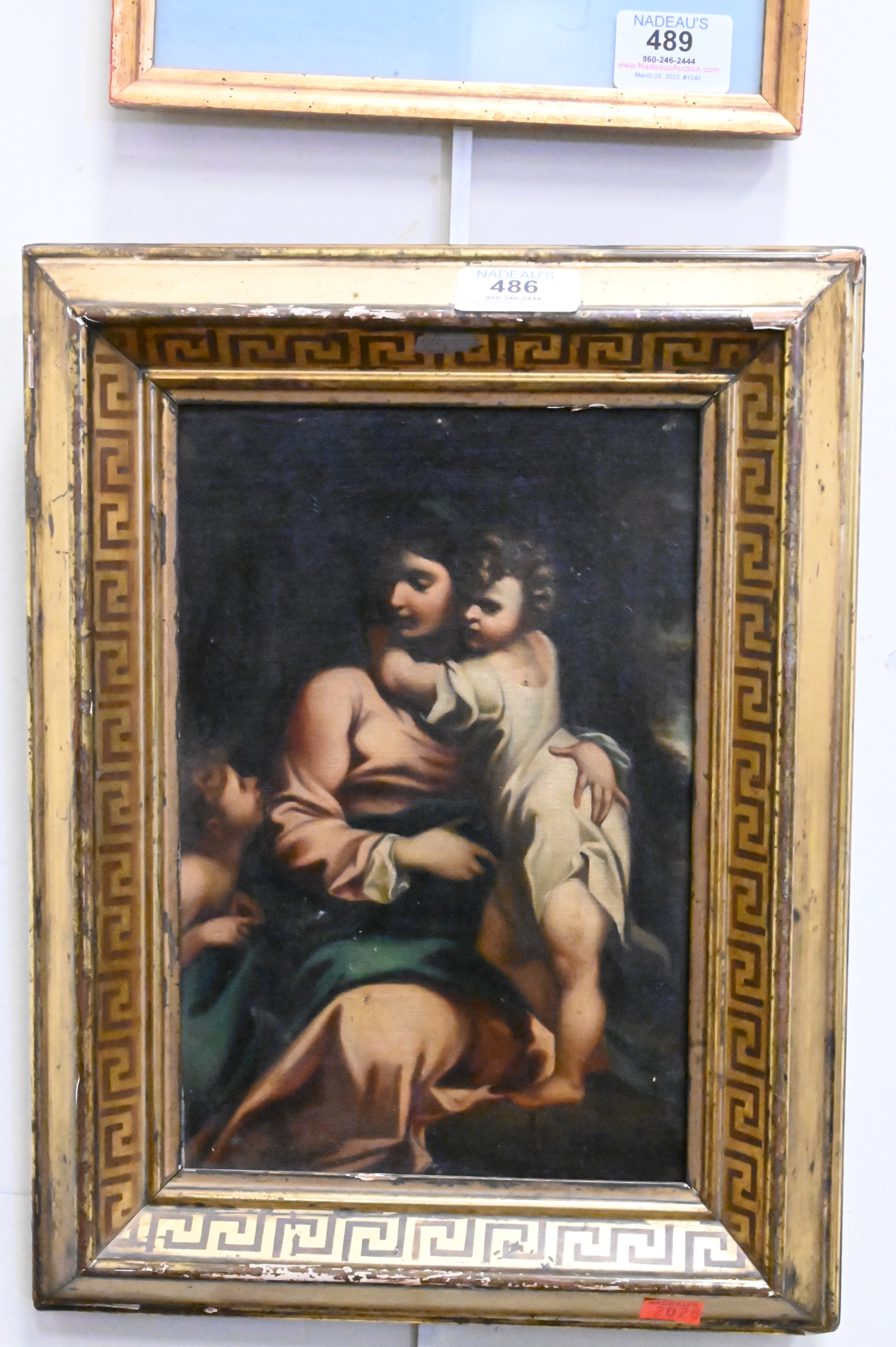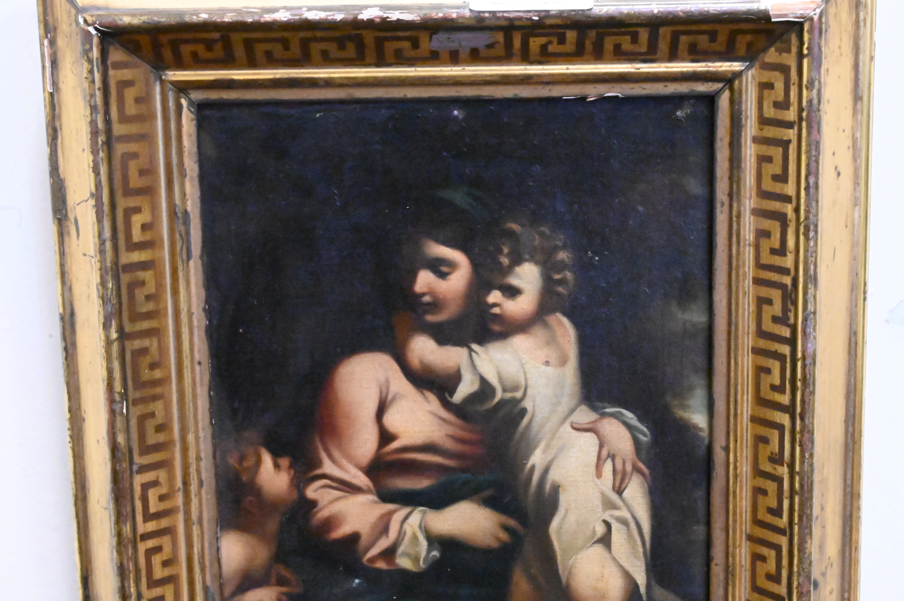 Madonna and Child, small oil on canvas laid on Masonite, 17th/18th century, 10 1/4″ x 7 1/2″.