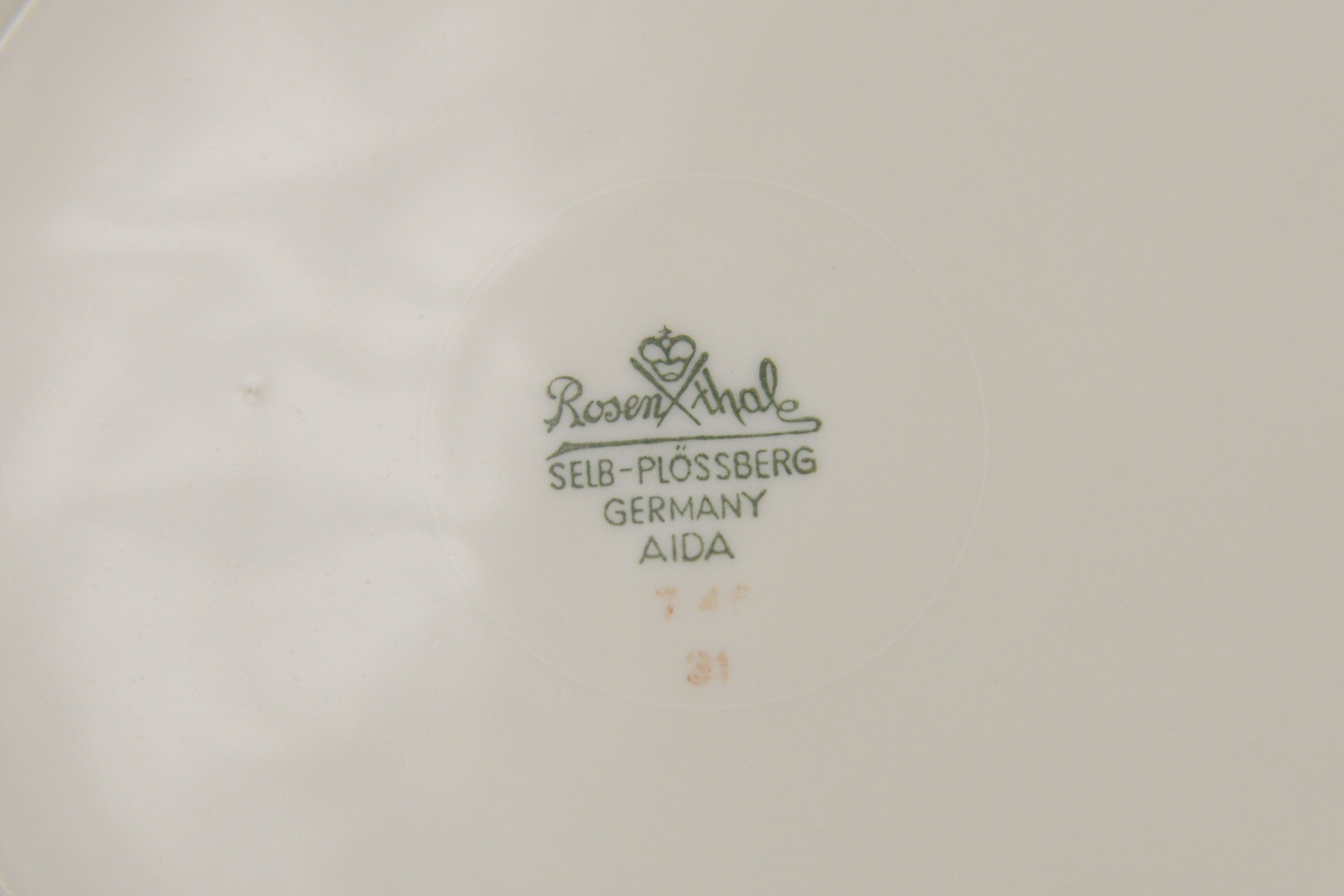 115 Piece Rosenthal “Aida” Dinnerware Set, with 26 dinner plates, 15 salad plates. 15 bread plates, 13 tea cups, 14 tea saucers, 12 soup bowls, 8 serving pieces, etc.