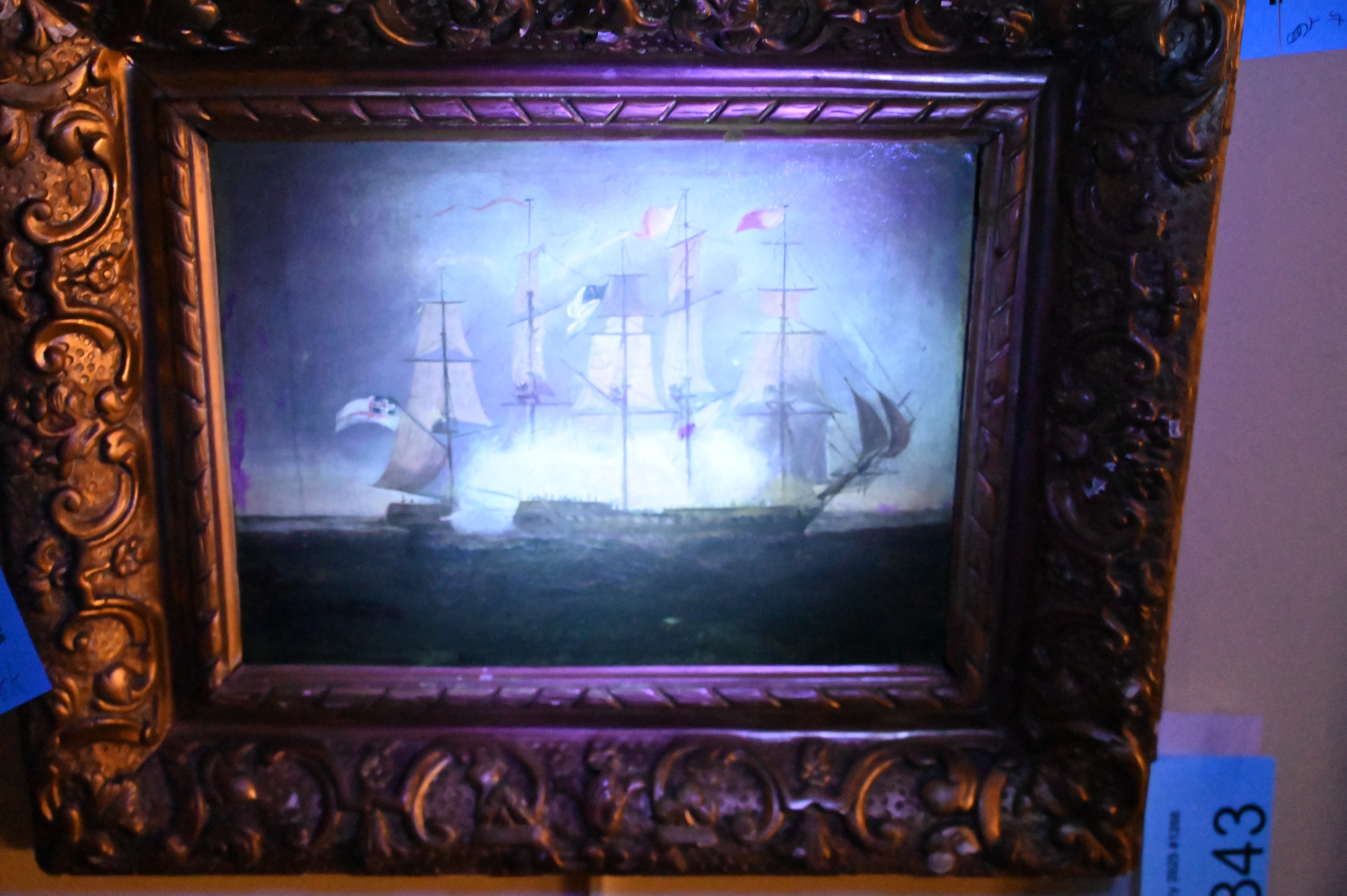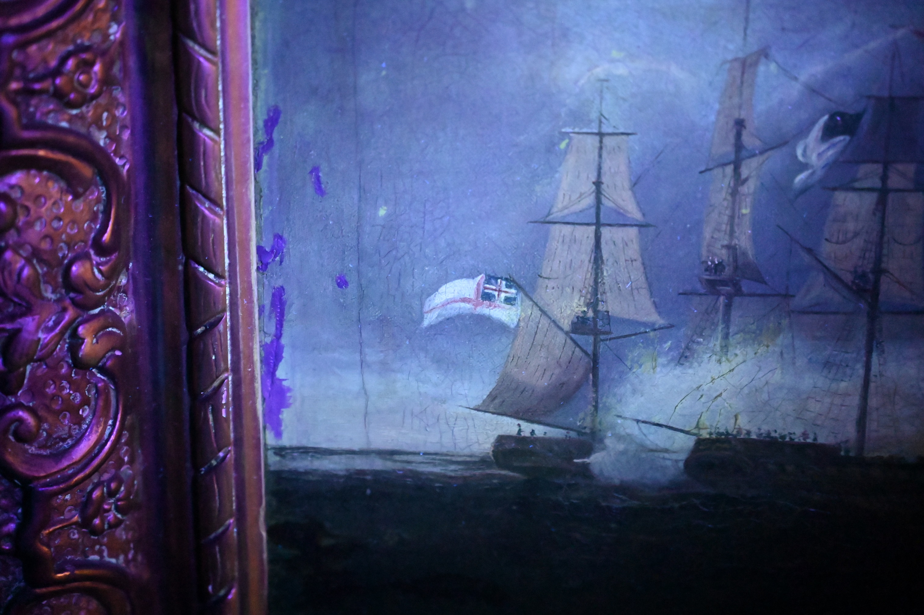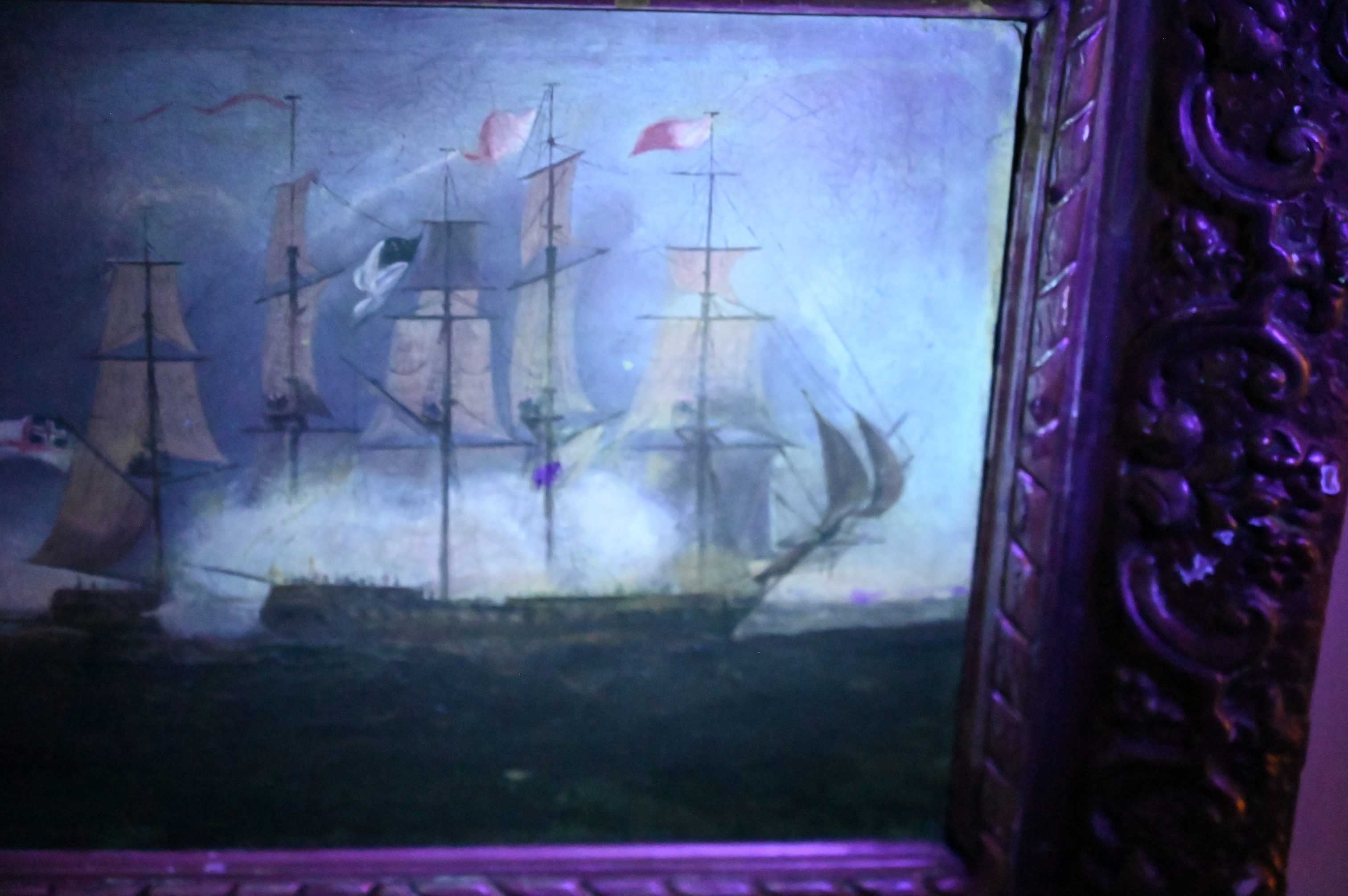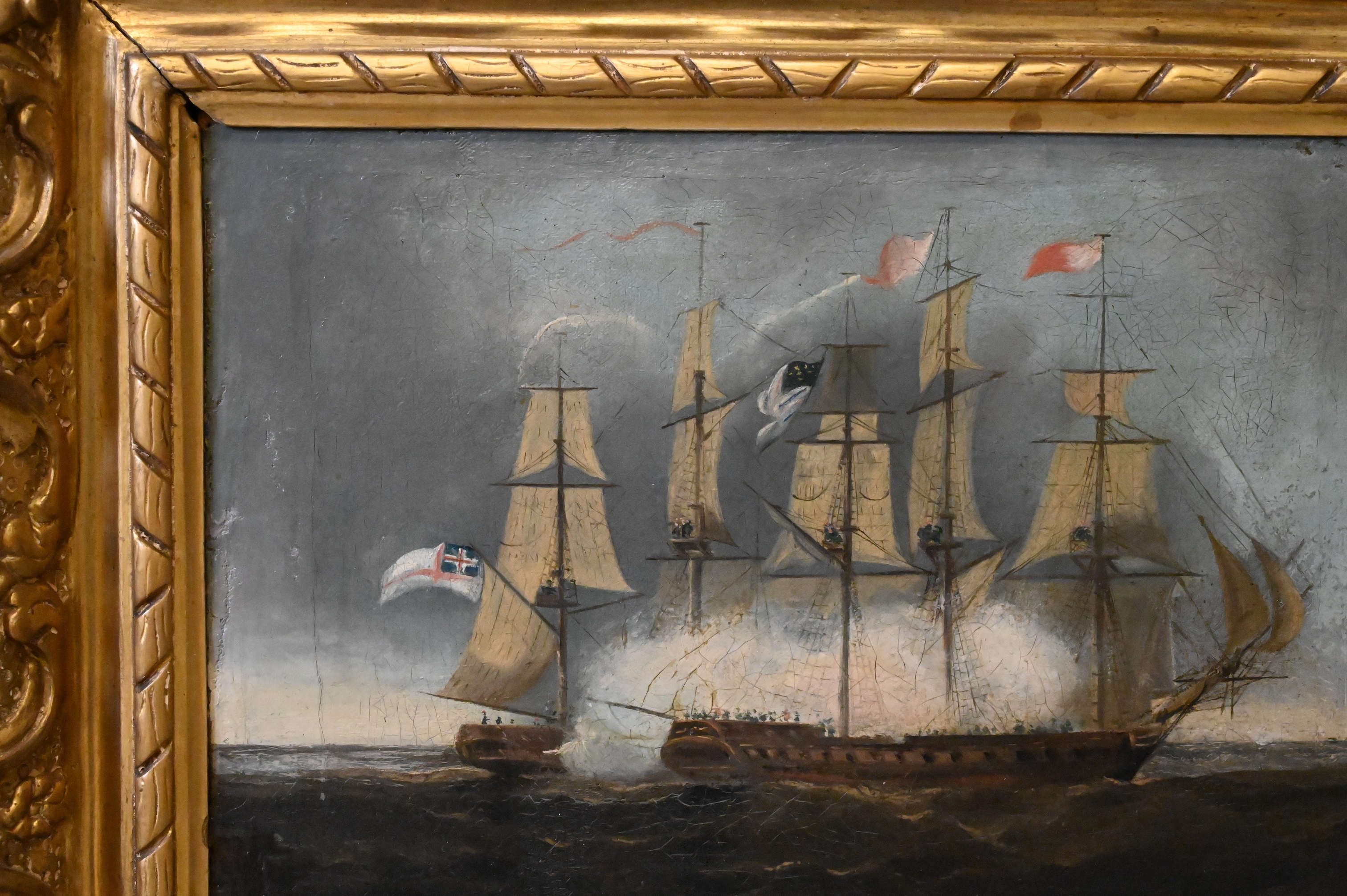 Depicting the American and British warships at sea in the early morning