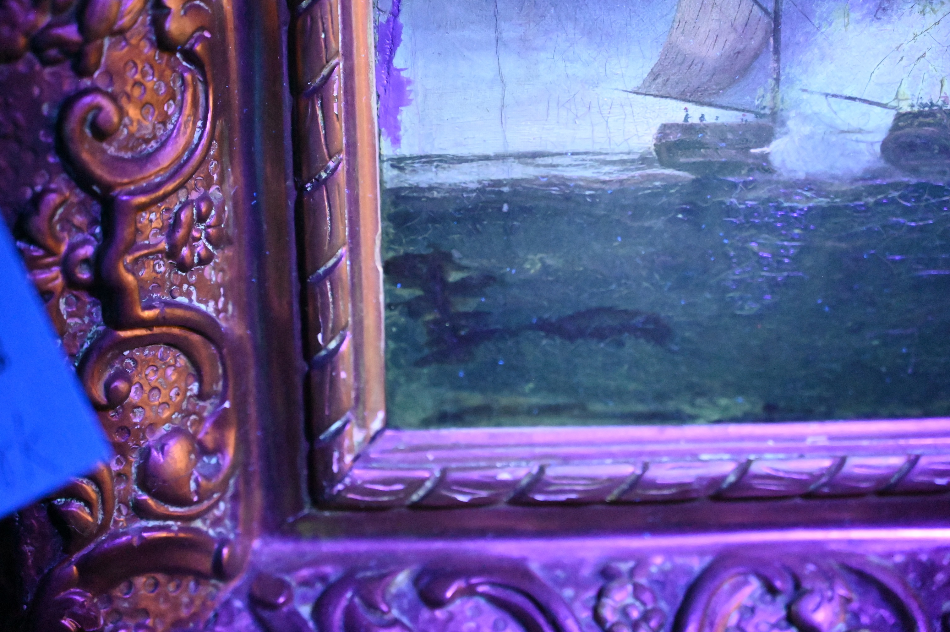 Condition: presents well, heavy varnish, craquelure throughout, edge ware, inpainting concentrating on horizontal craquelure lines to left border, some loss upper right corner