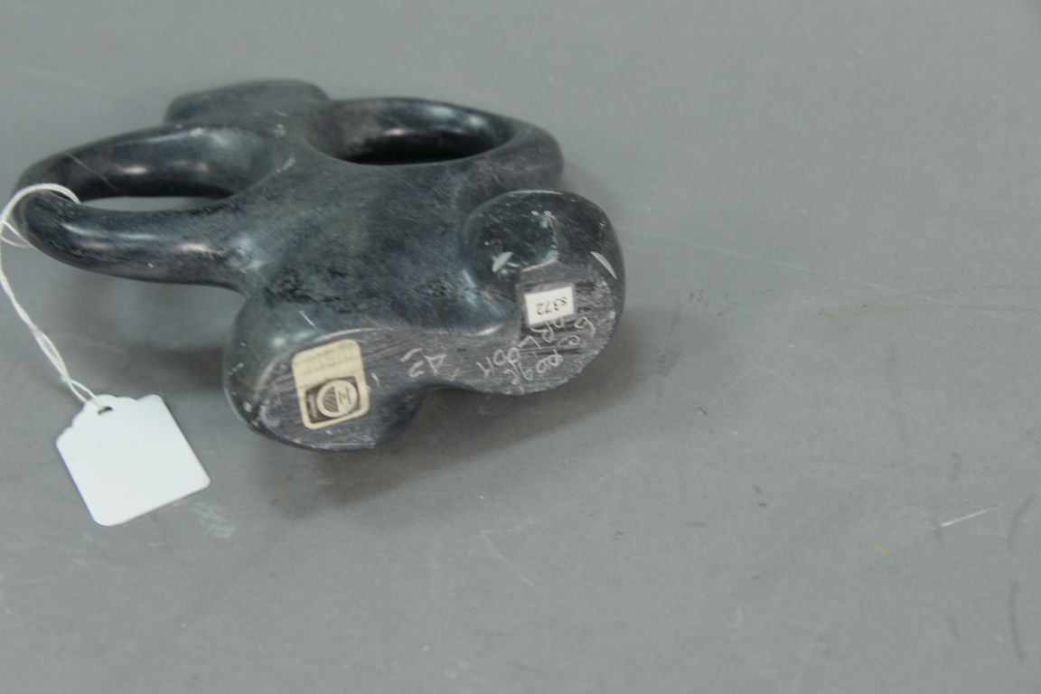 Lot 487: Inuit Eskimo carving George Arluk 1949 Arviat basalt Two Faced Man Transformation, 6 3/4 x 5 3/4 x 2. Provenance: Waddington’s …