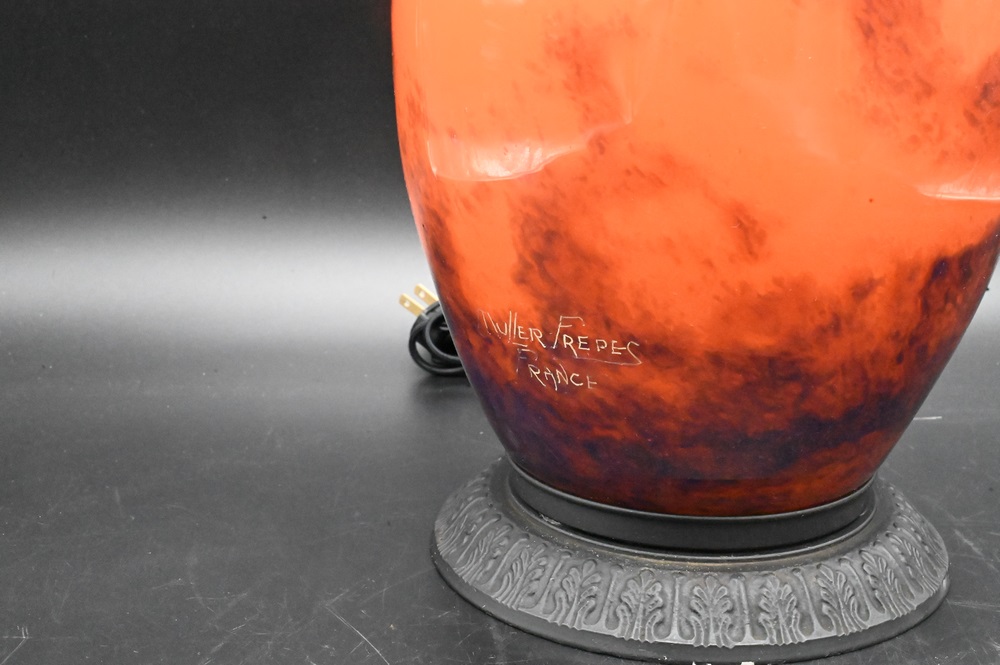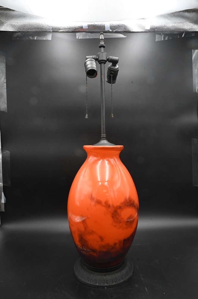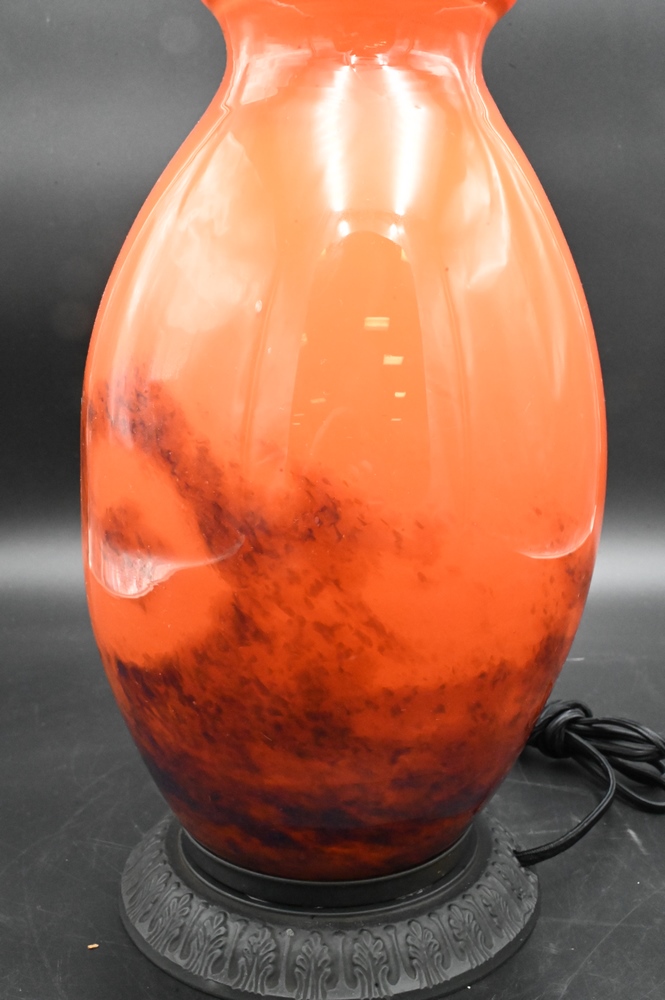 Muller Fres French Deco Glass Vase, made into a table lamp, height 28 inches.