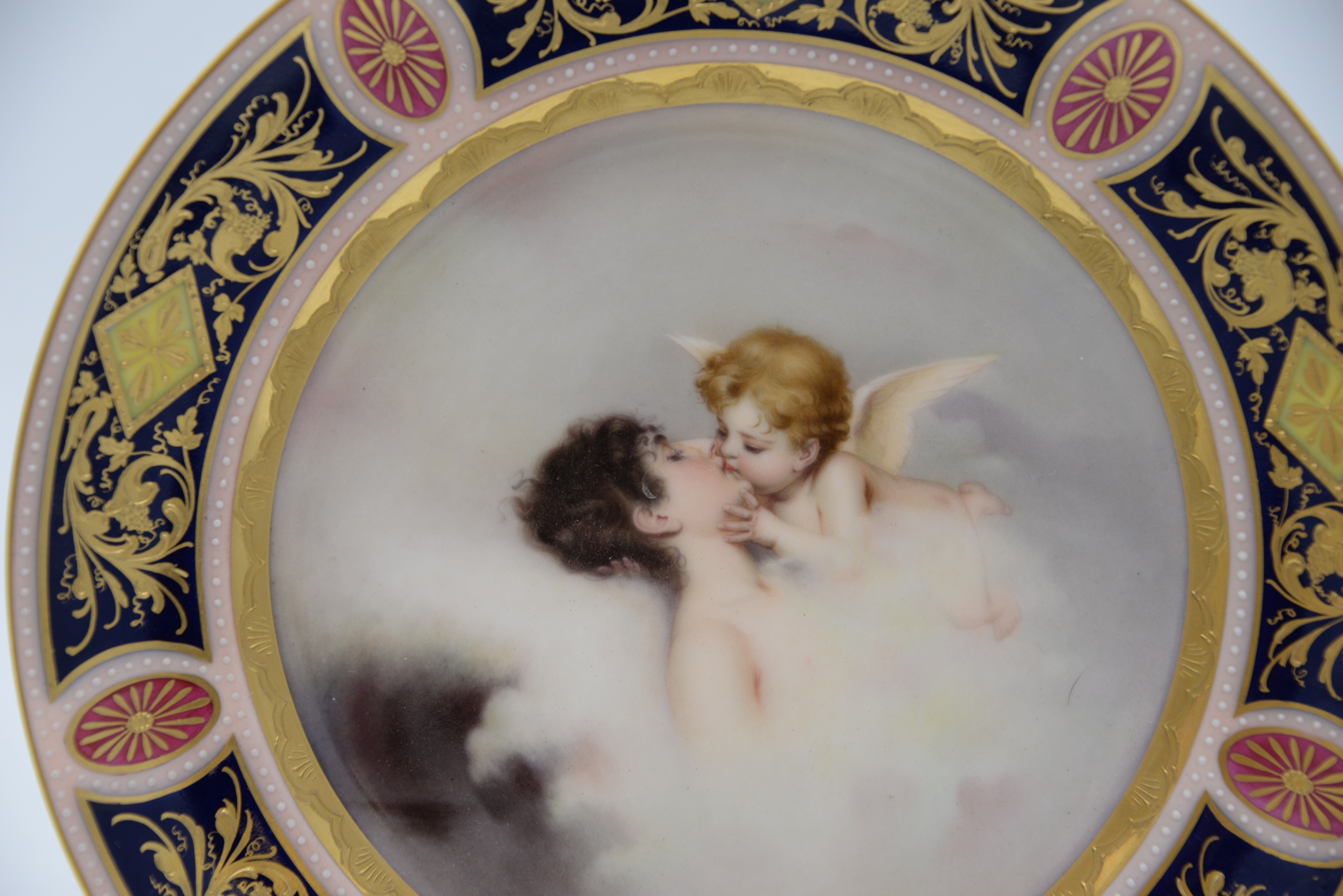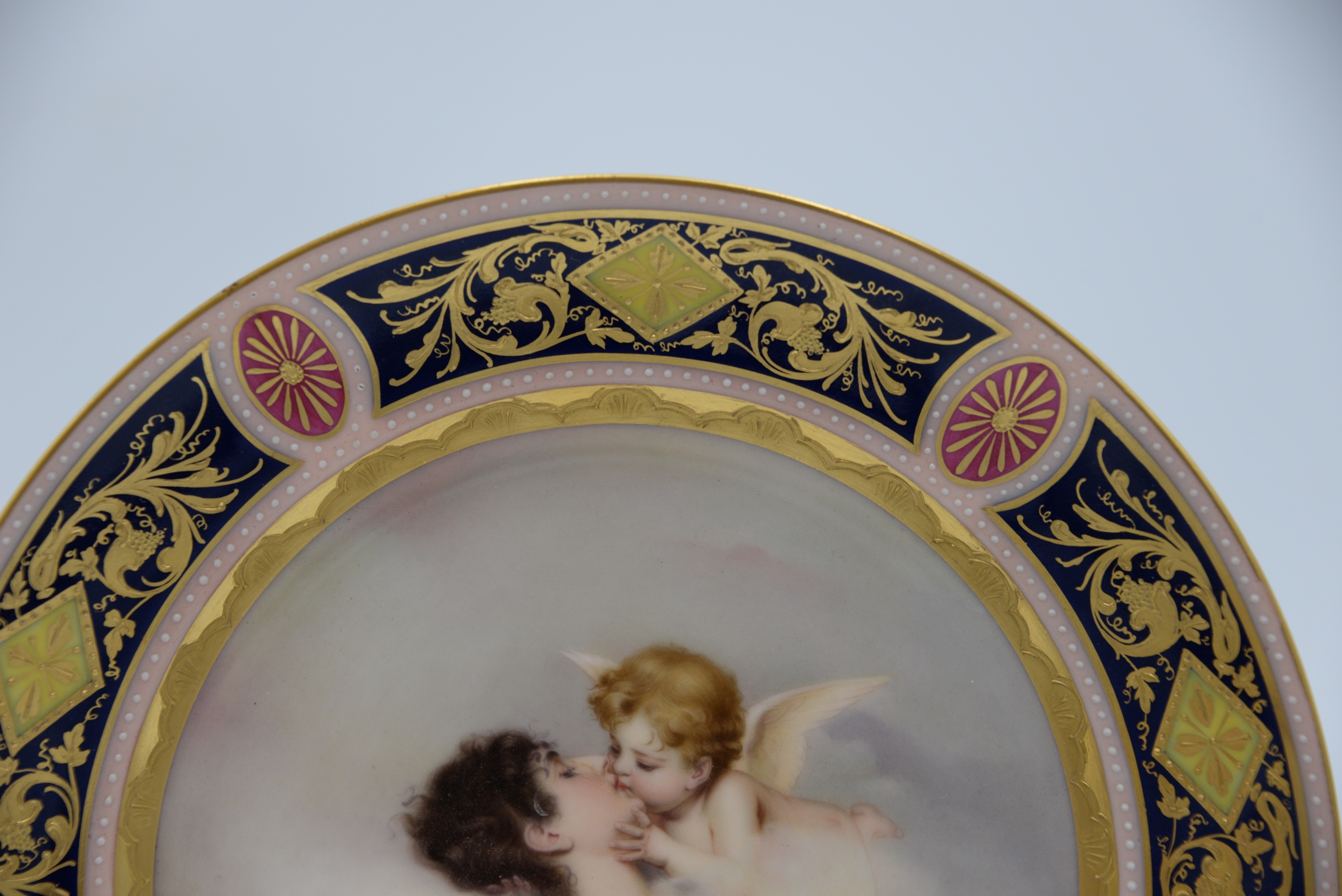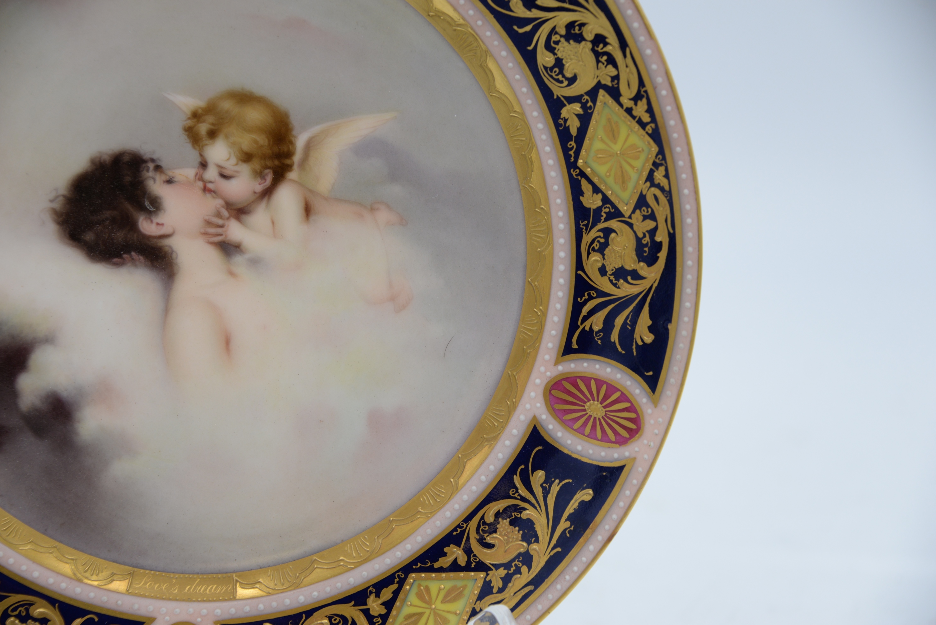 Royal Vienna Portrait Plate, “Love Dreams”, hand painted with high relief, diameter 9 1/2 inches.