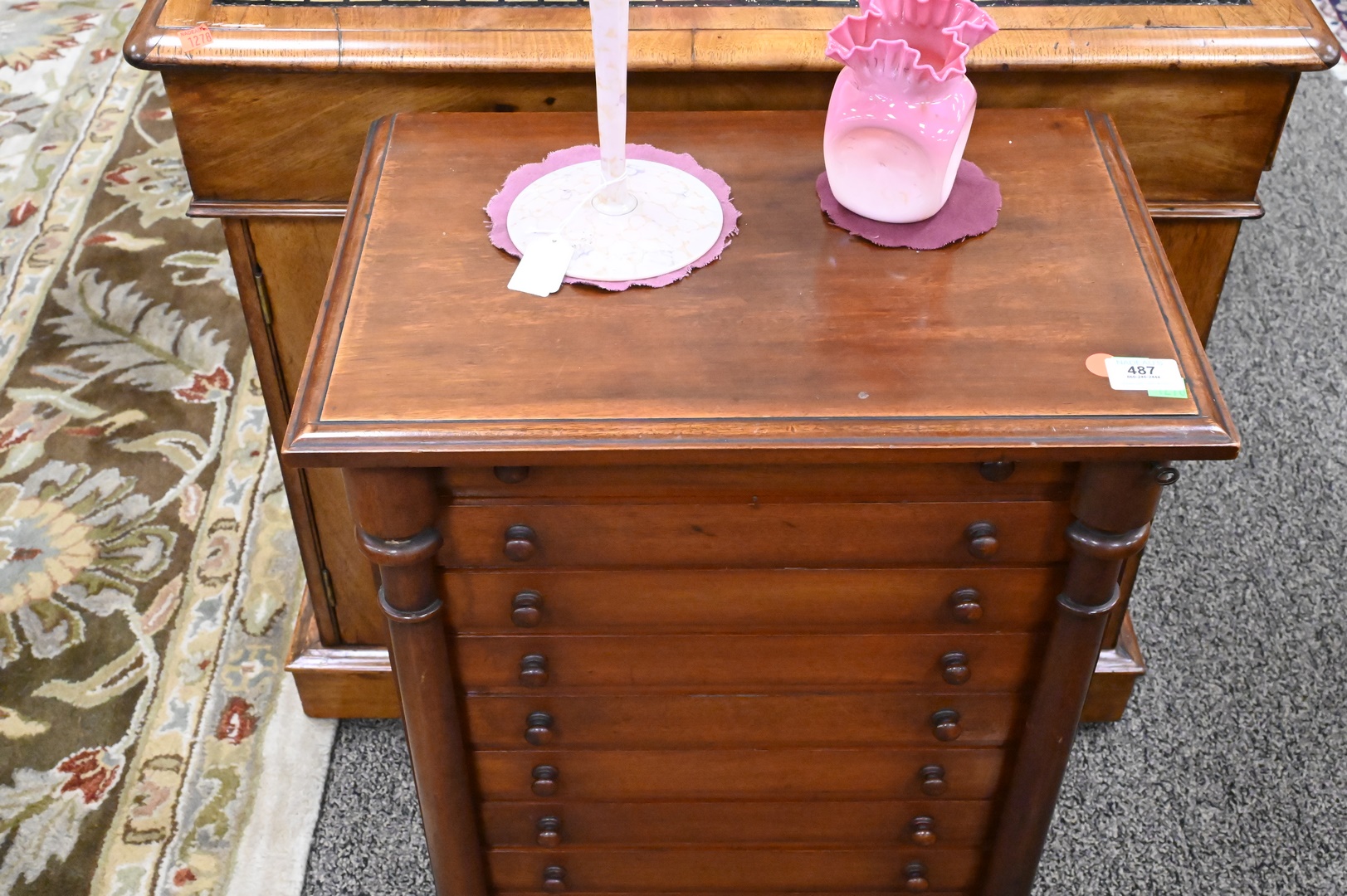 Victorian Mahogany Watch Cabinet, having double lockside, along with 10 drawers with glass tops, height 27 1/2 inches, top 13″ x 19 1/2″. Provenance: Estate of Peter Tillou, Litchfield, Connecticut.