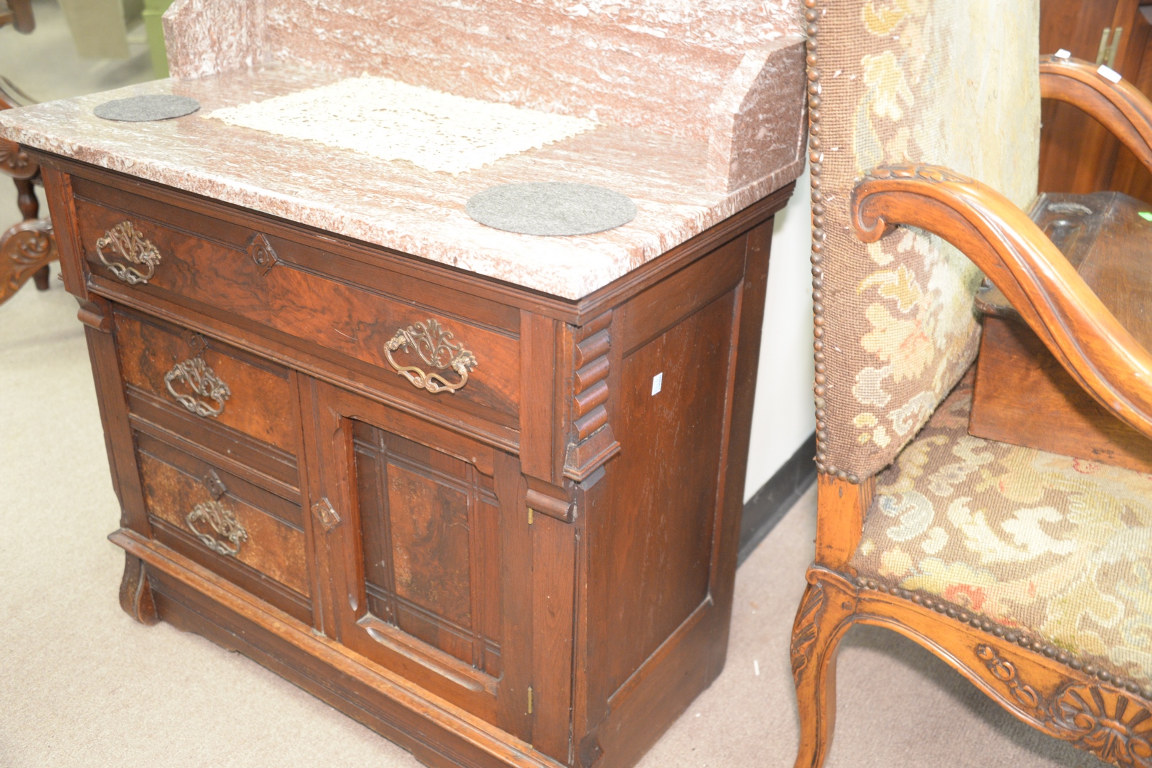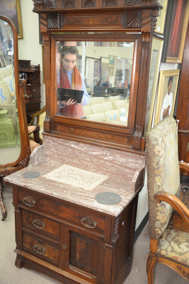 Lot 487: Victorian Walnut and Burl Marble Top Commode with mirror height 76 inches, width 32 inches Provenance: Thirty-five year collection o…