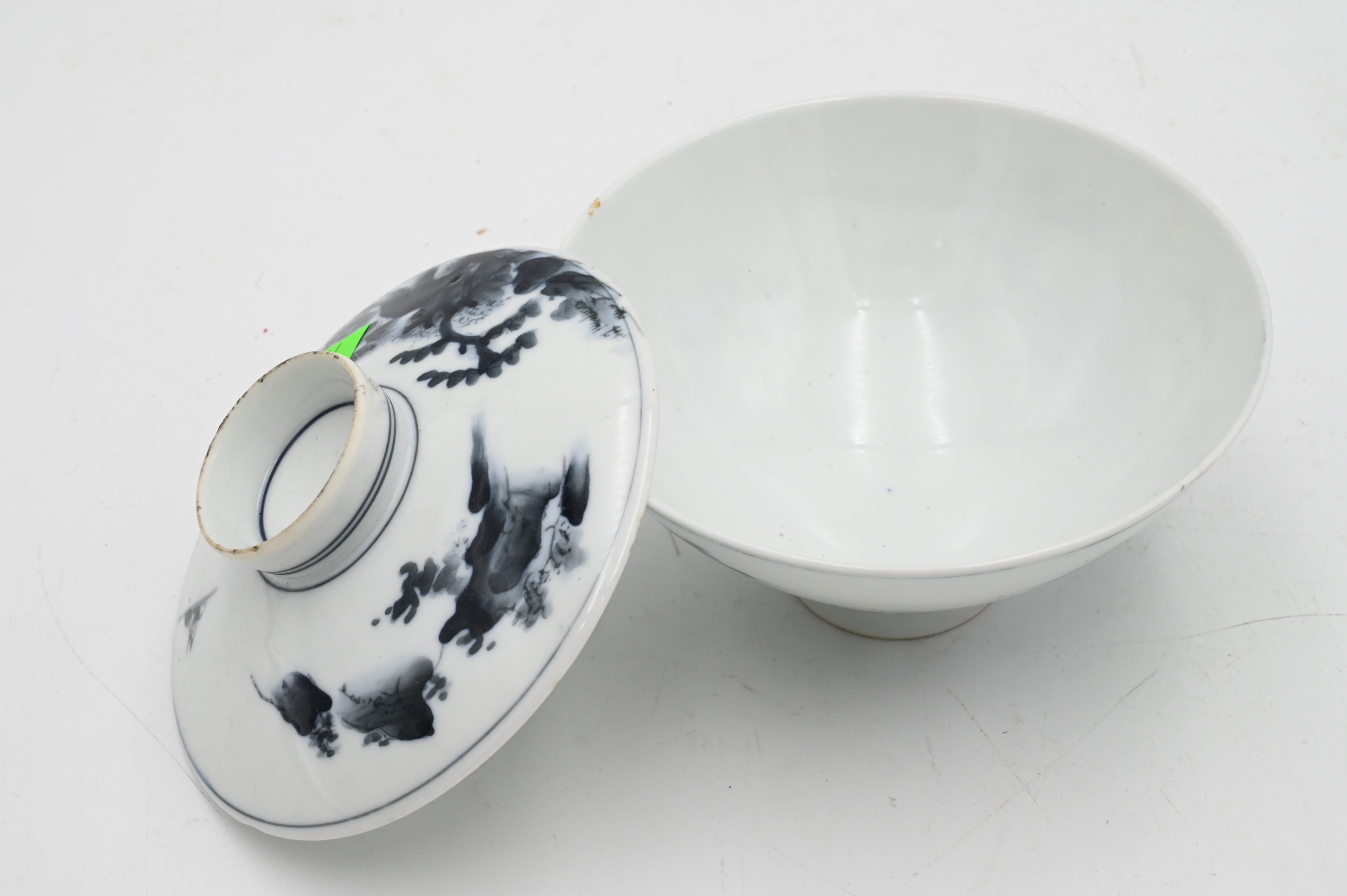 Covered Porcelain Cup, height with lid 3 1/2 inches, diameter 4 1/2 inches.
