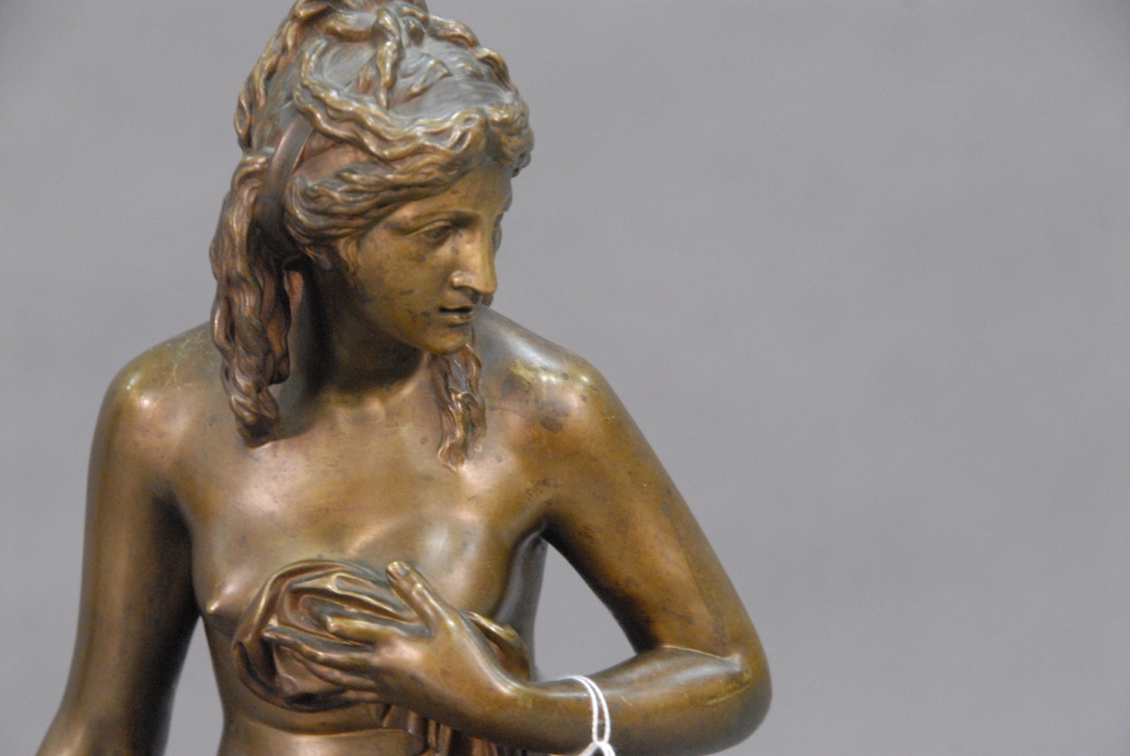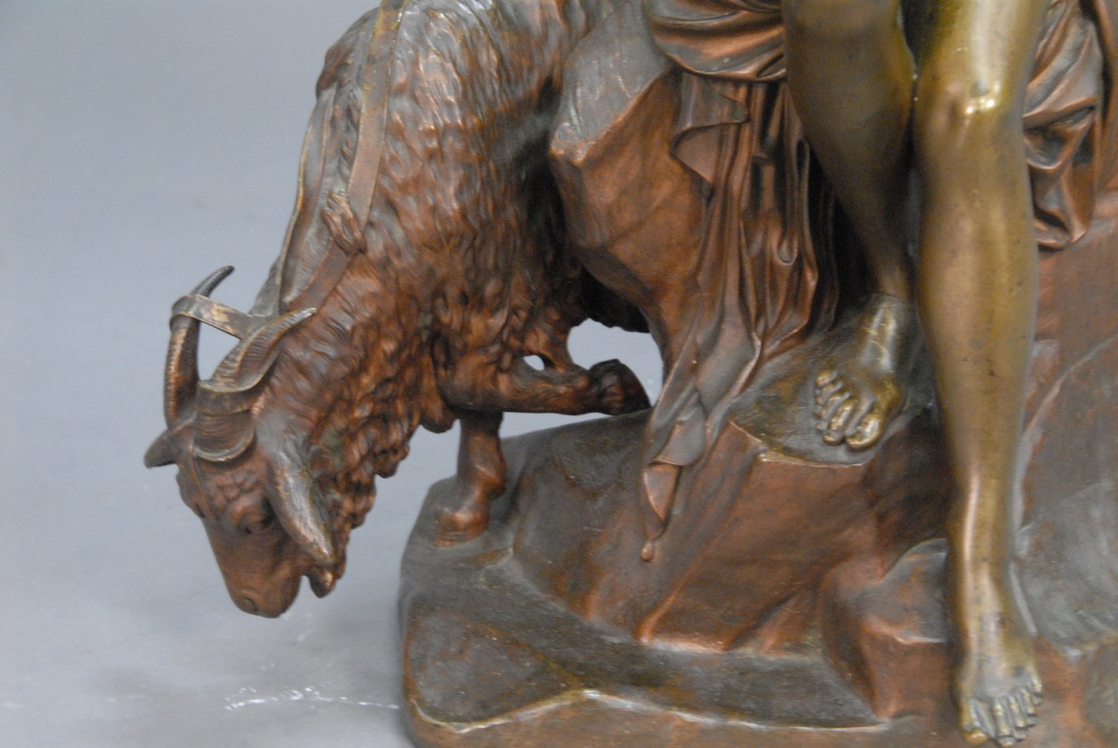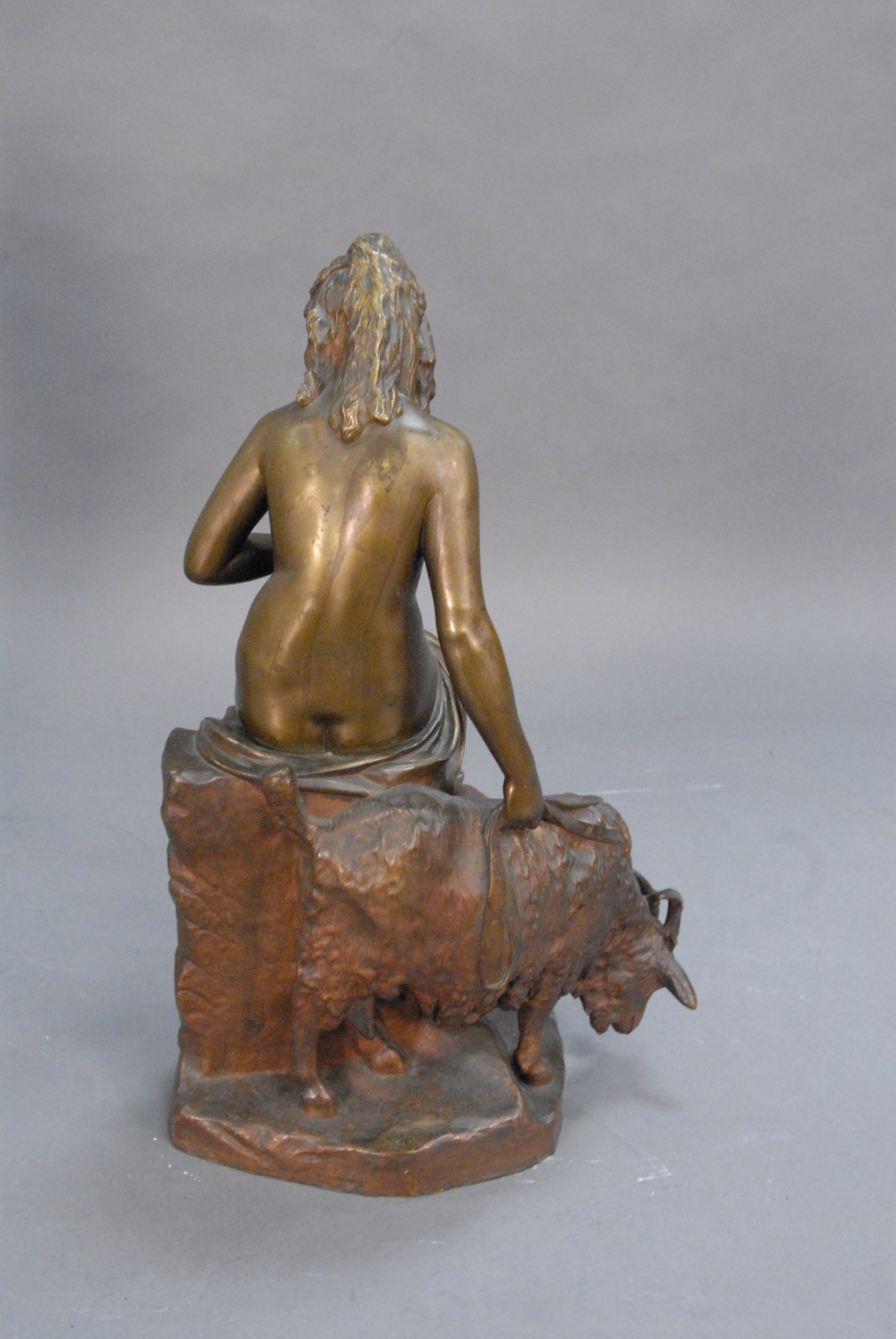 G. S. Medaille SEATED NUDE WOMAN WITH A GOAT bronze stamped on back G. S. Medaille D’or 1867.