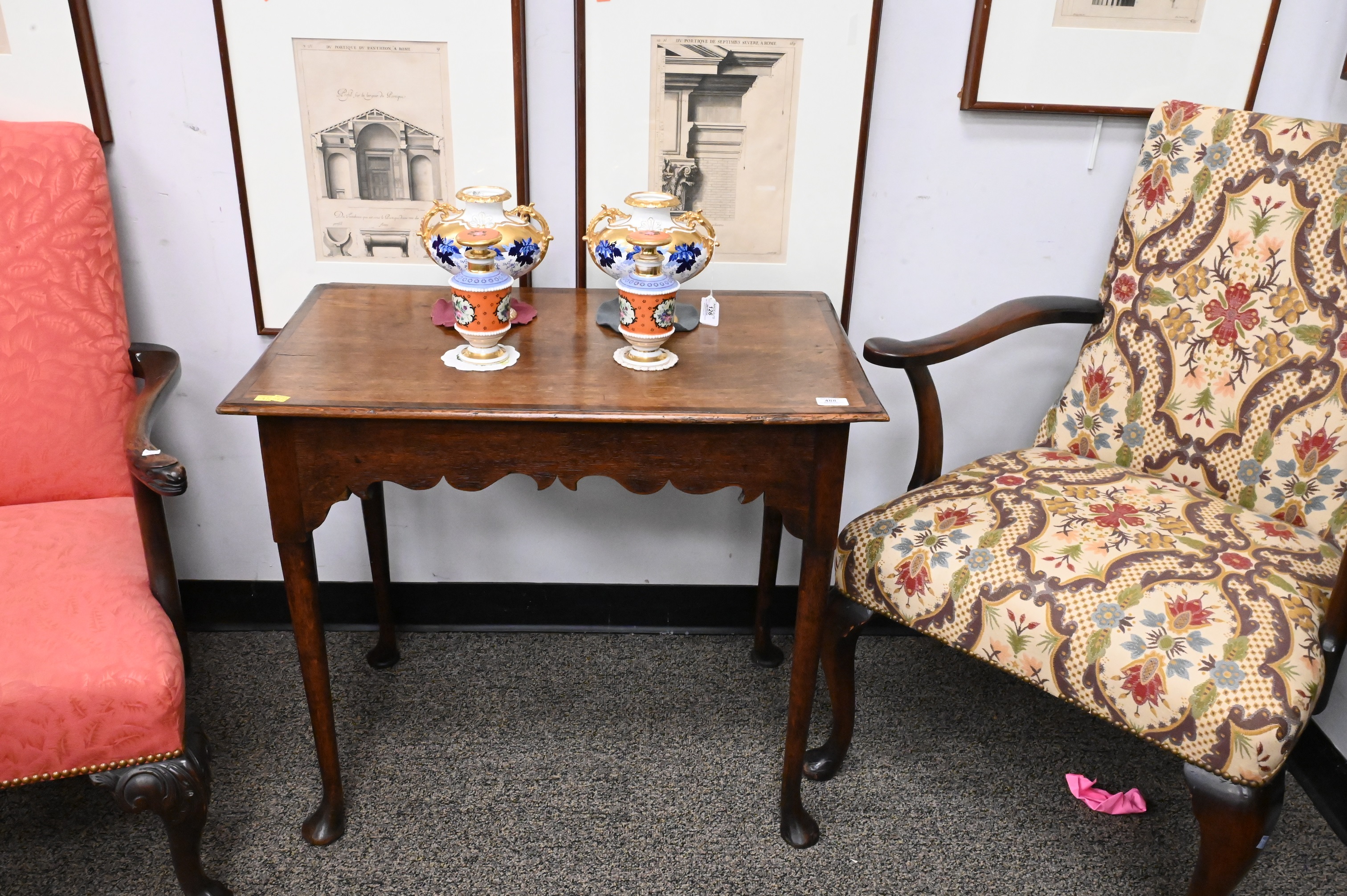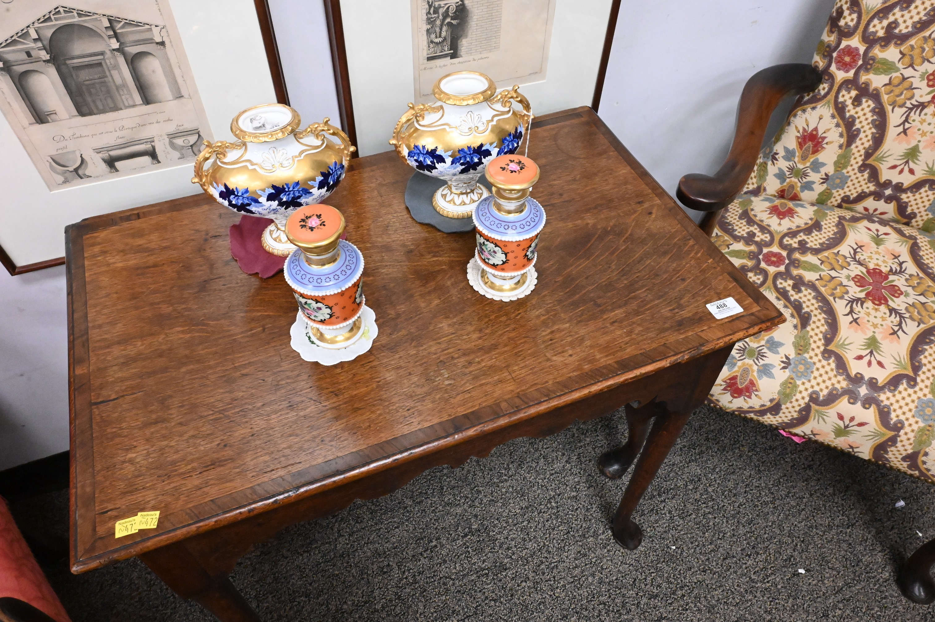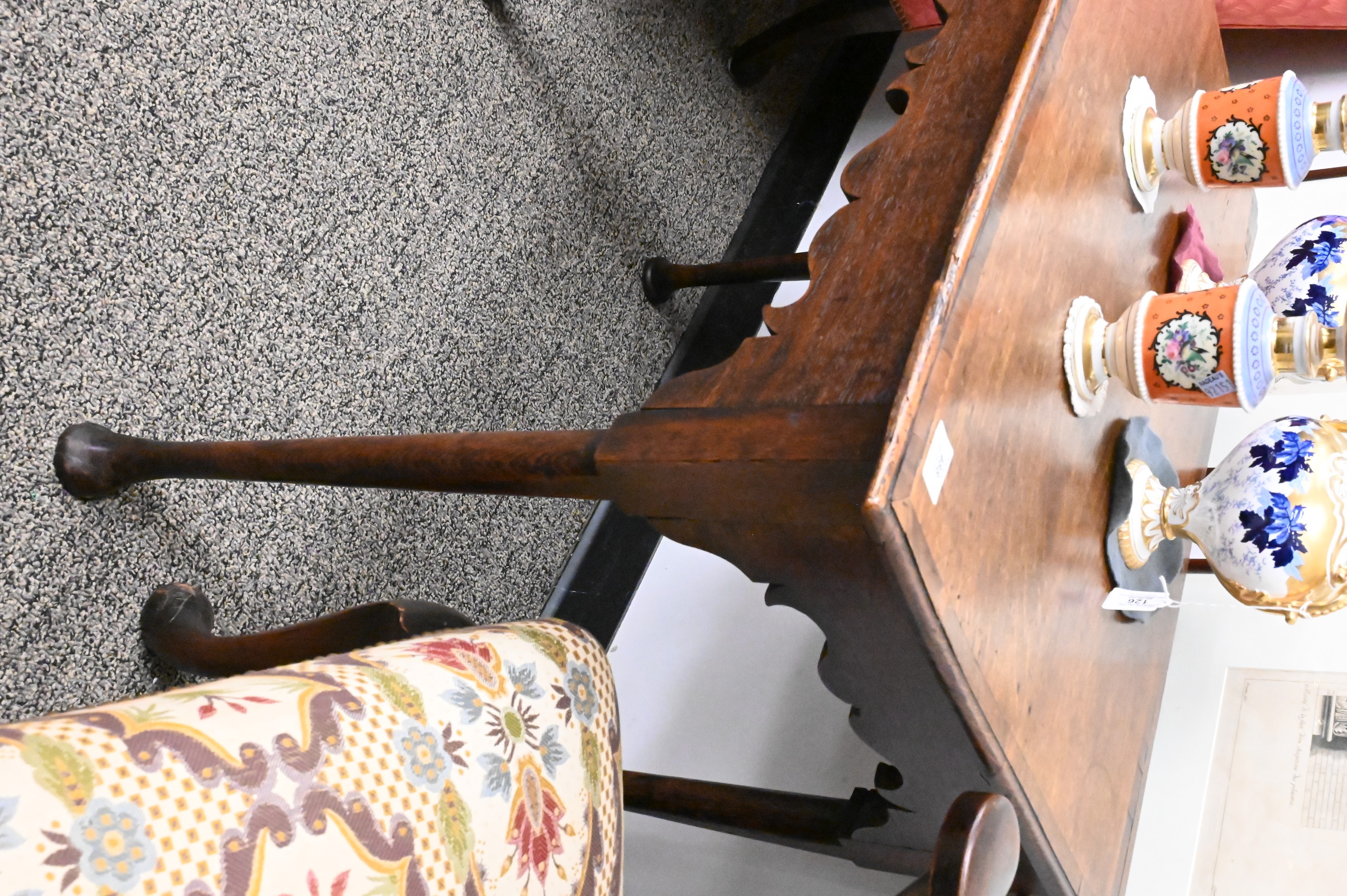 having banded inlaid top with carved skirt on pad feet, 18th century