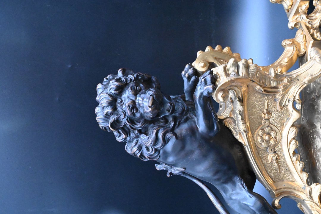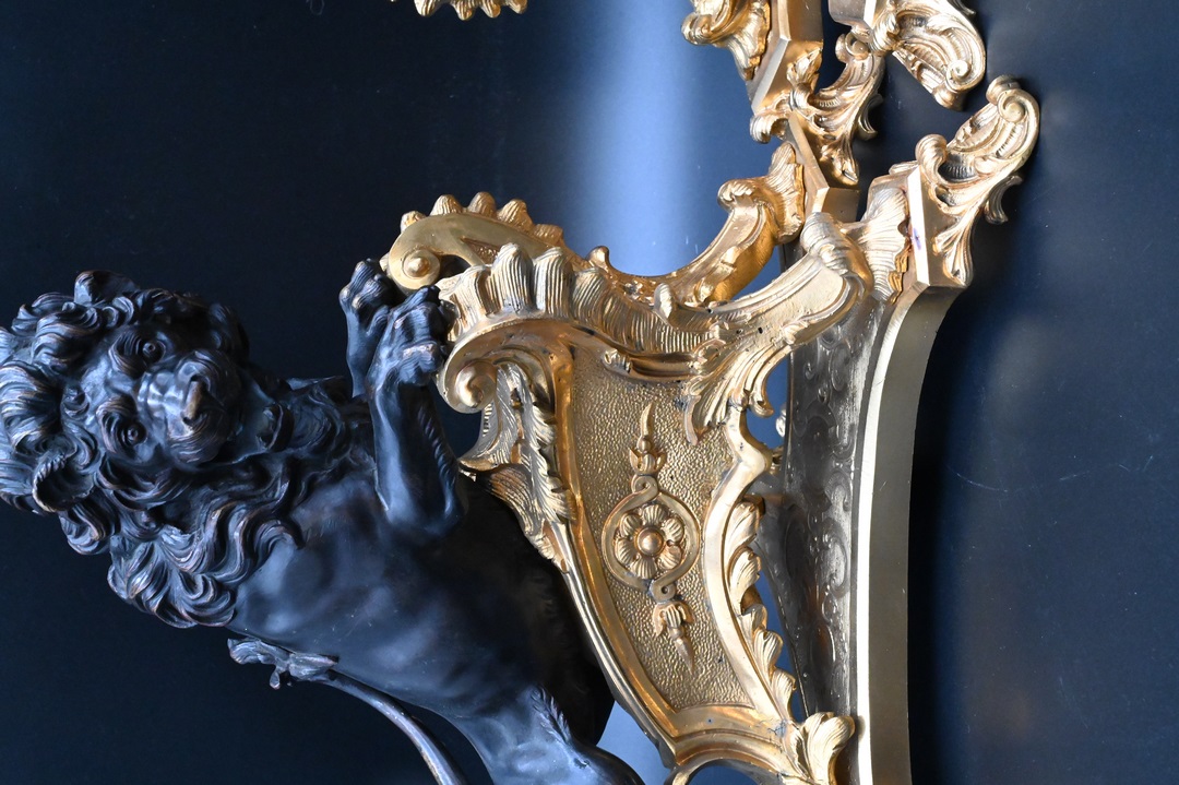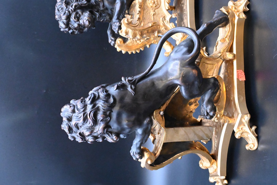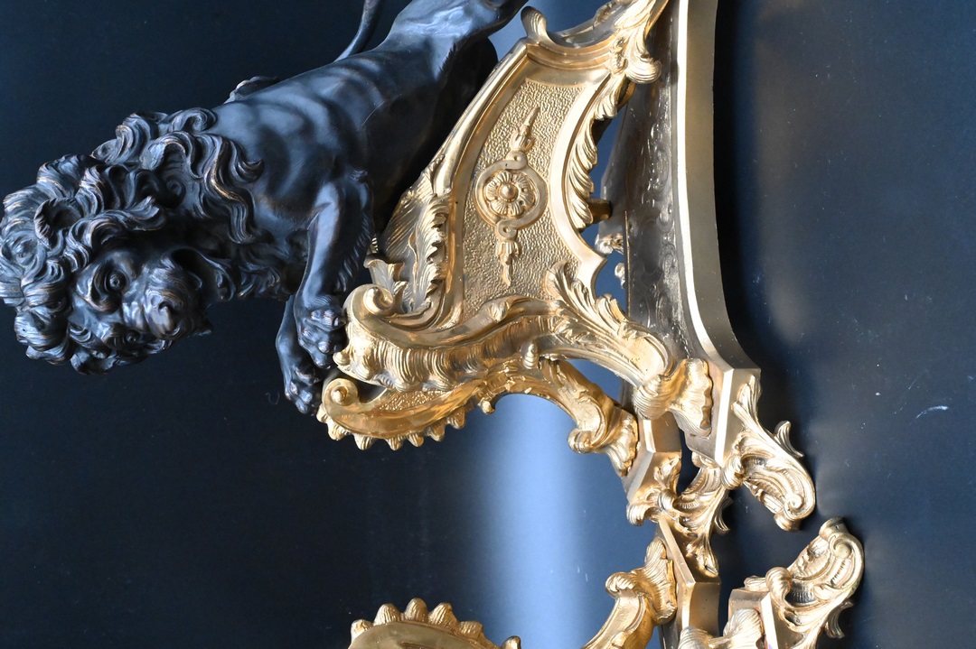 Lot 489: A Pair of Louis XV Style Ormolu and Patinated Bronze Chenets