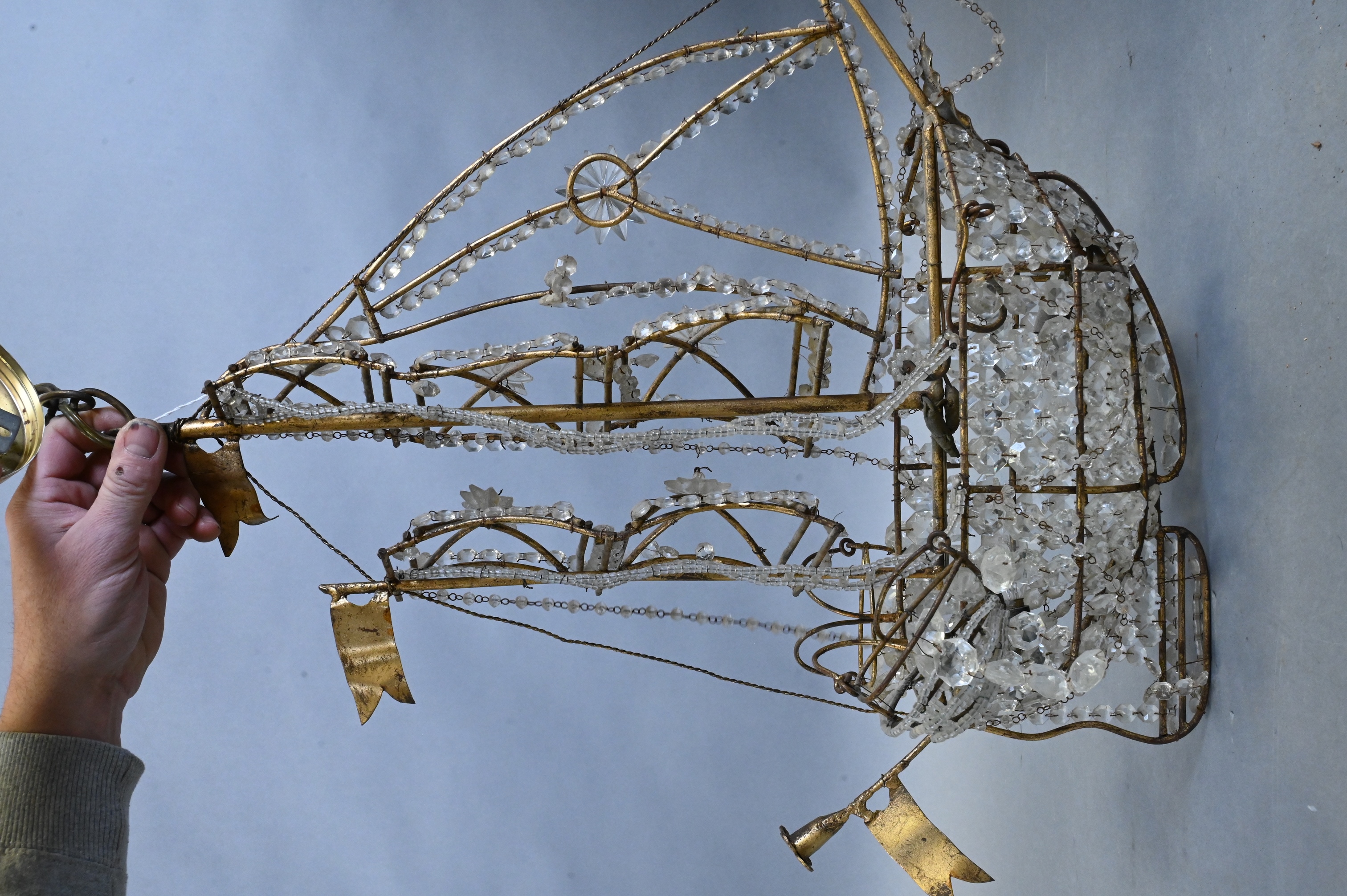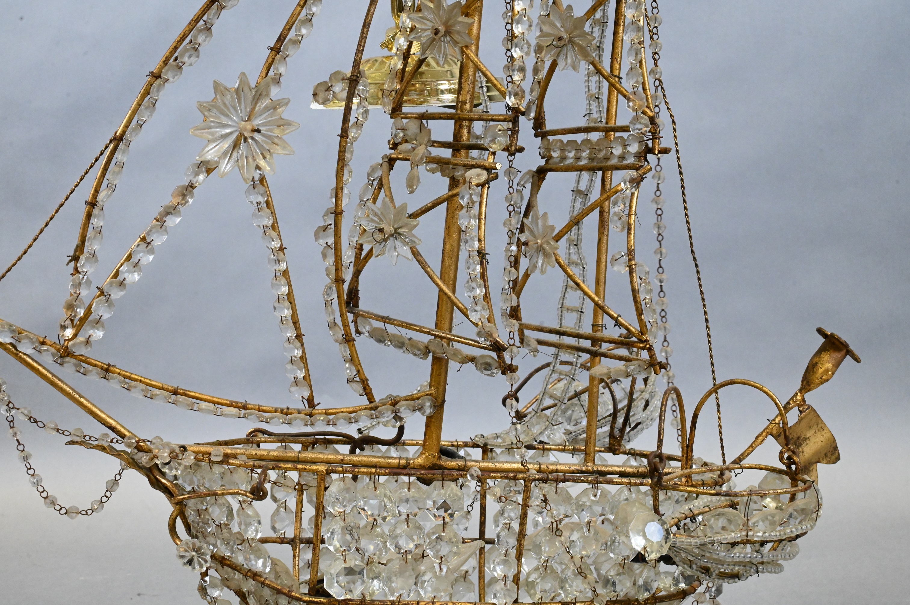 two light chandelier in the form of a Spanish ship, with swags and teardrops, gilt metal and glass