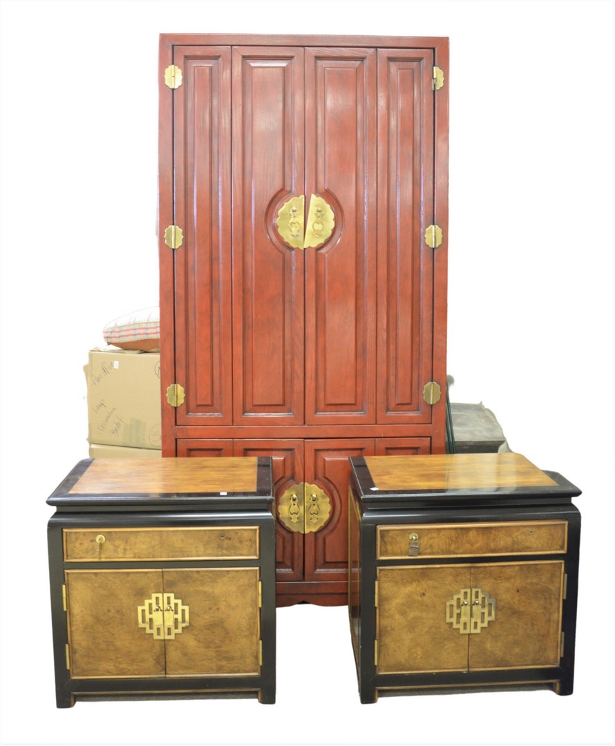 Four Piece Lot, to include large coffee table, pair of night stands, and a two door cabinet.