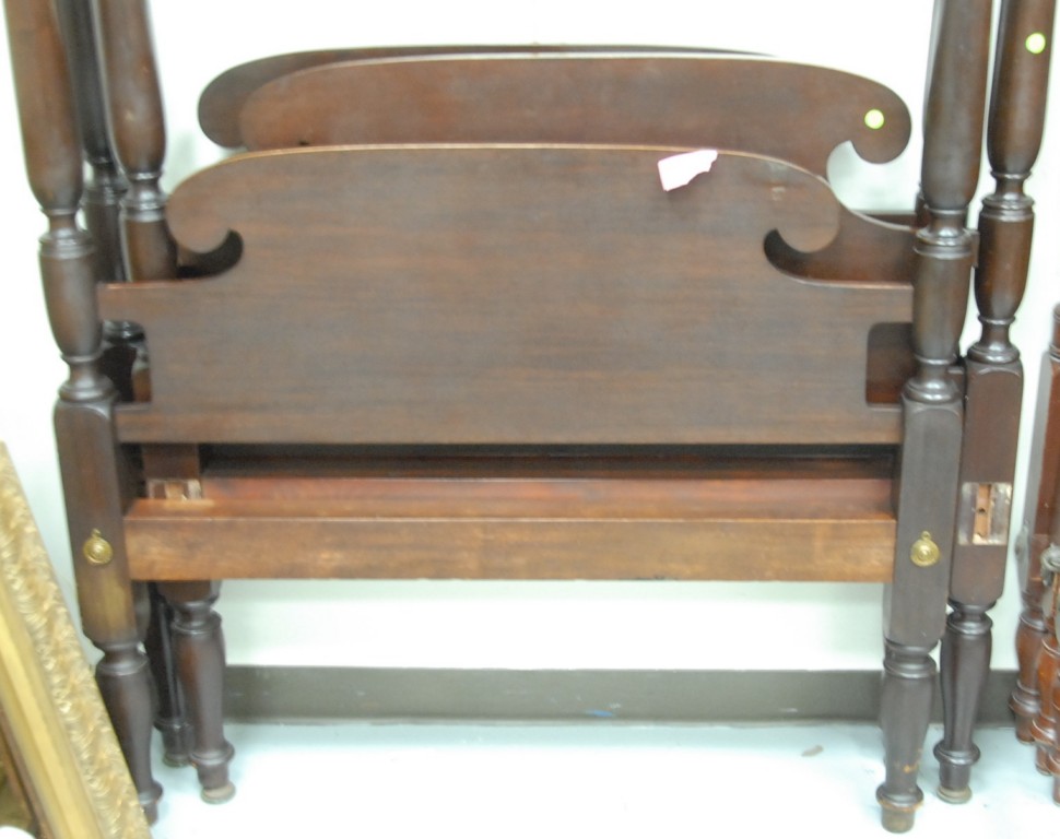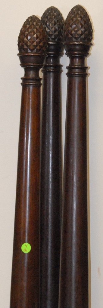 Pair of Margolis twin post beds with pineapple tops on plain posts, unsigned, probably Nathan Margolis.