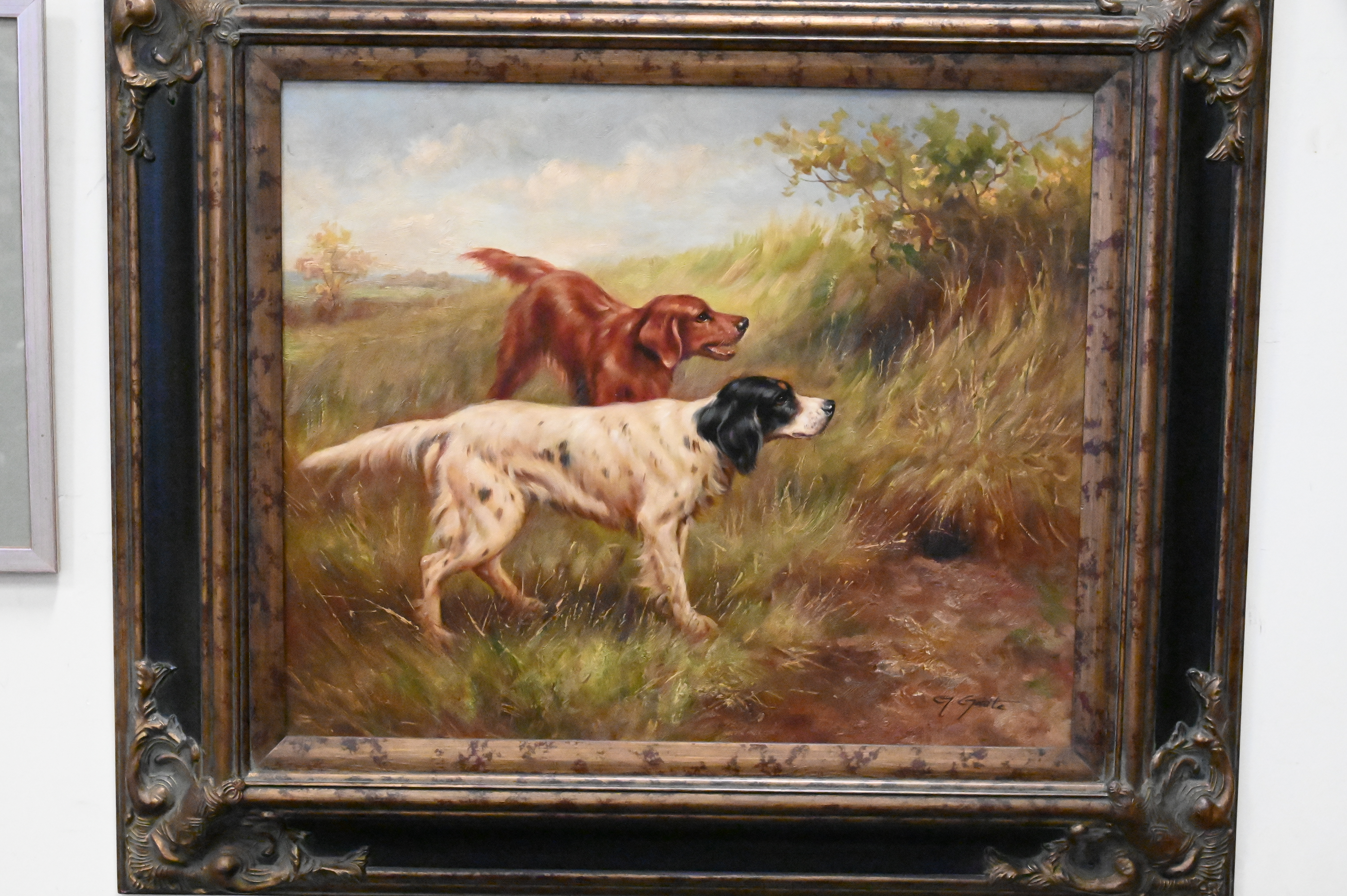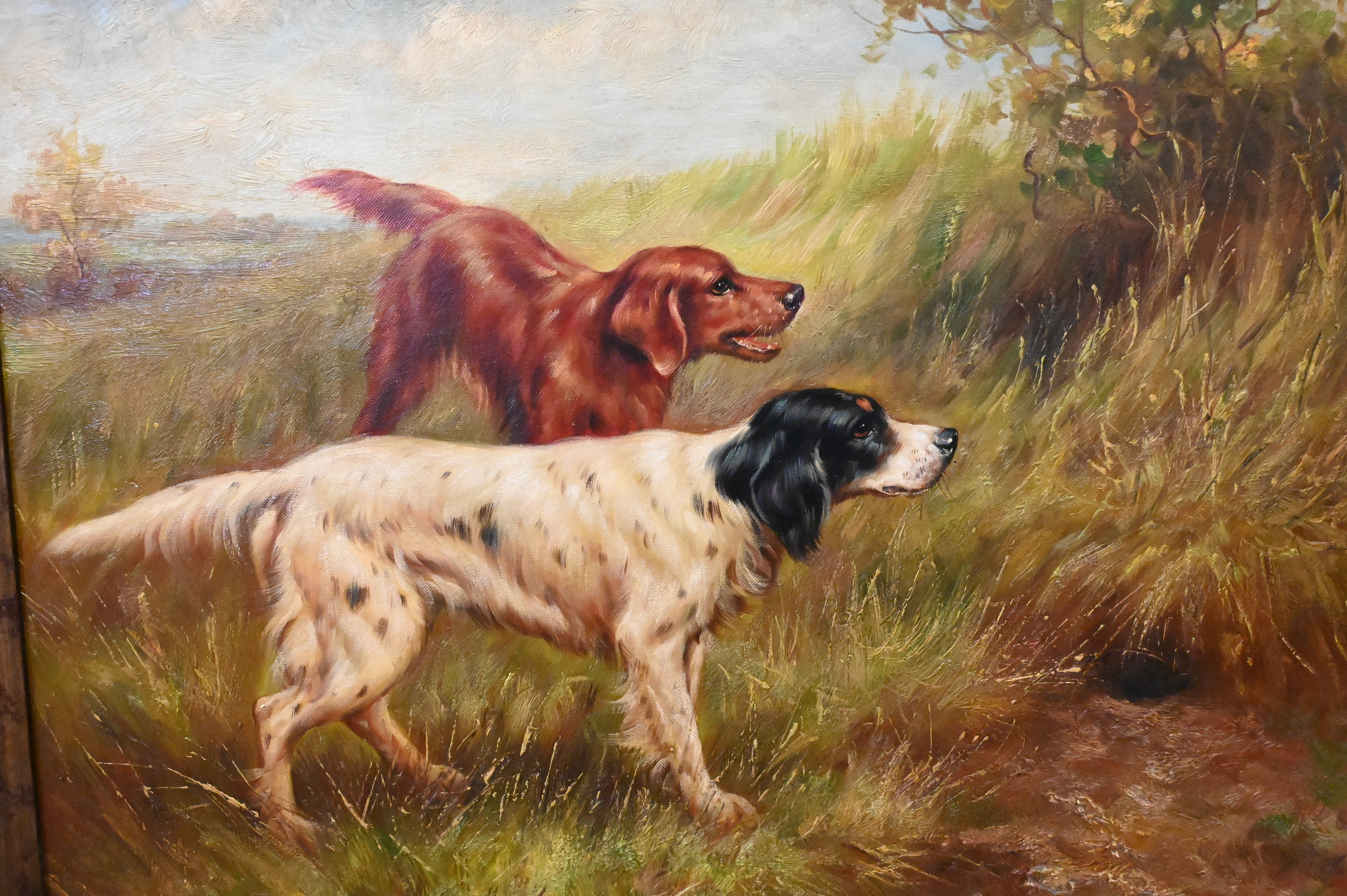 Two 20th Century Oil on Canvas Paintings of Hunting Dogs