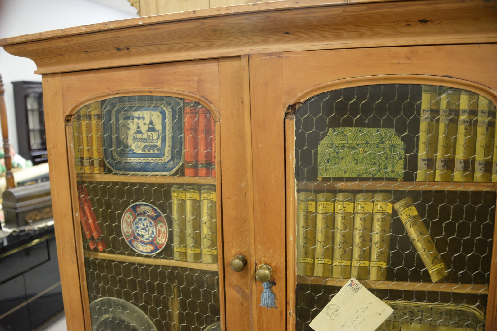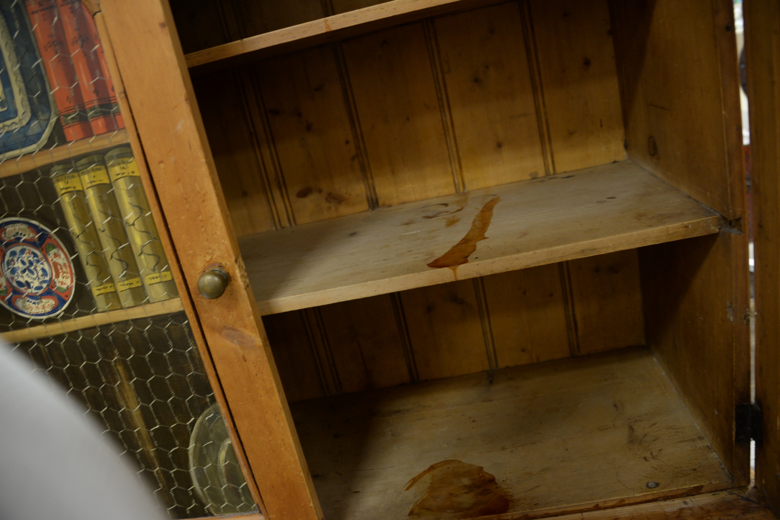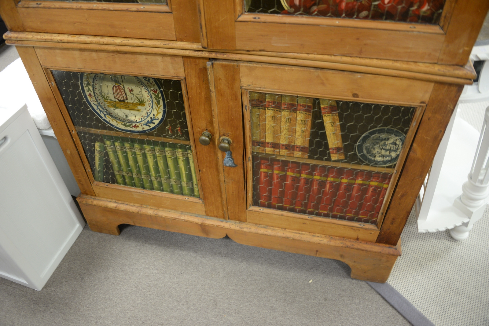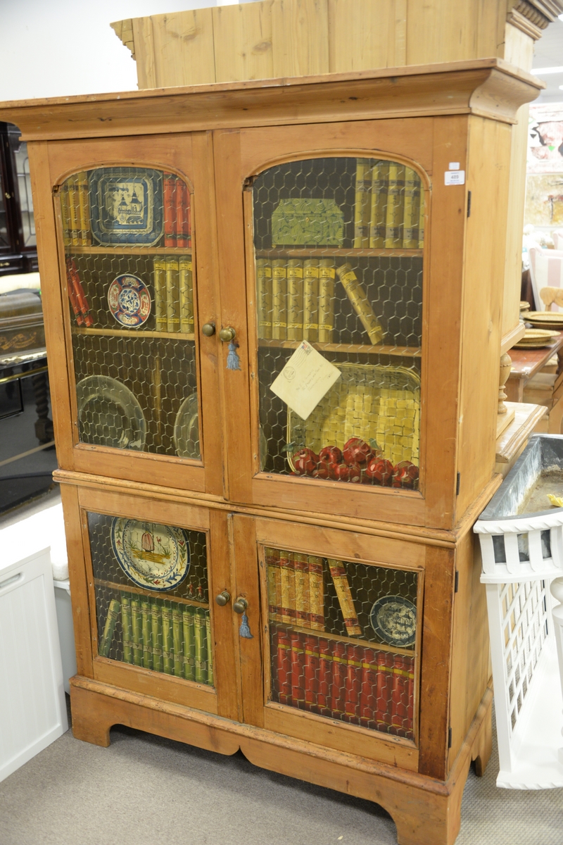 Two part cabinet with faux painted doors. ht. 70in., wd. 44in., dp. 18in.