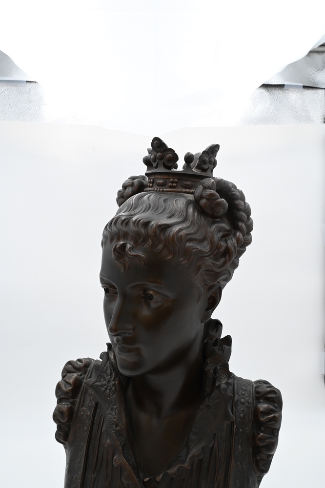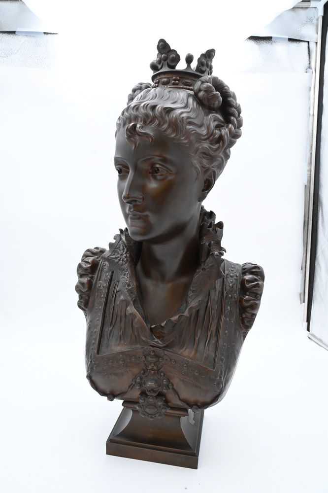 Lot 489: Vincent Desire Faure De Brousse, Buste of the Royal princess, bronze, marked on side Faure de Brousse, 1876, height 25 1/2 inches.