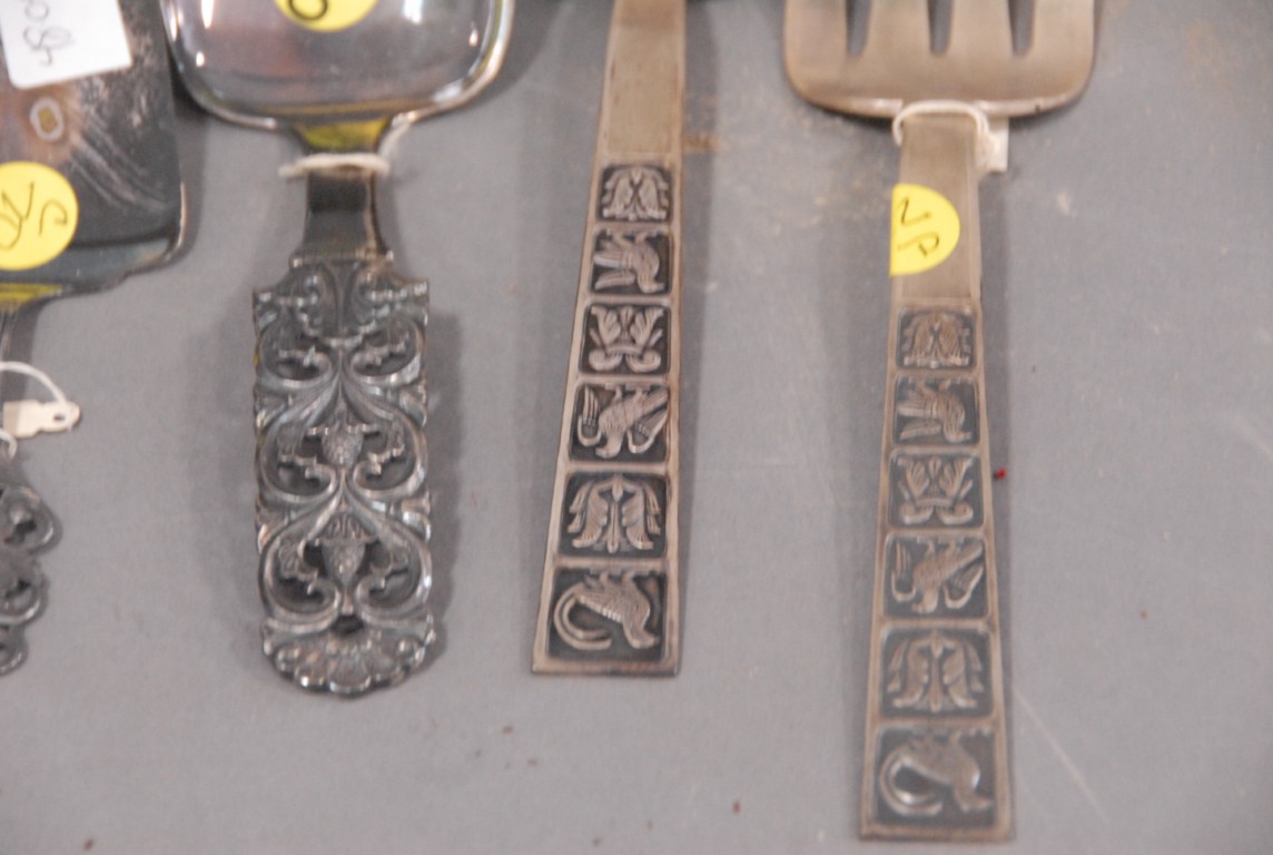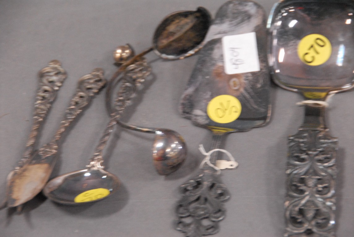 Silver lot to include two piece Continental silver salad set, two serving pieces and four small silver pieces