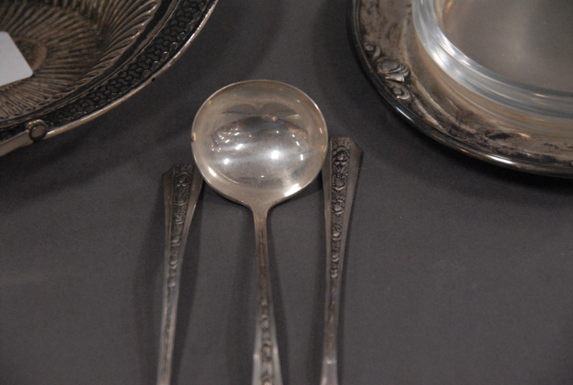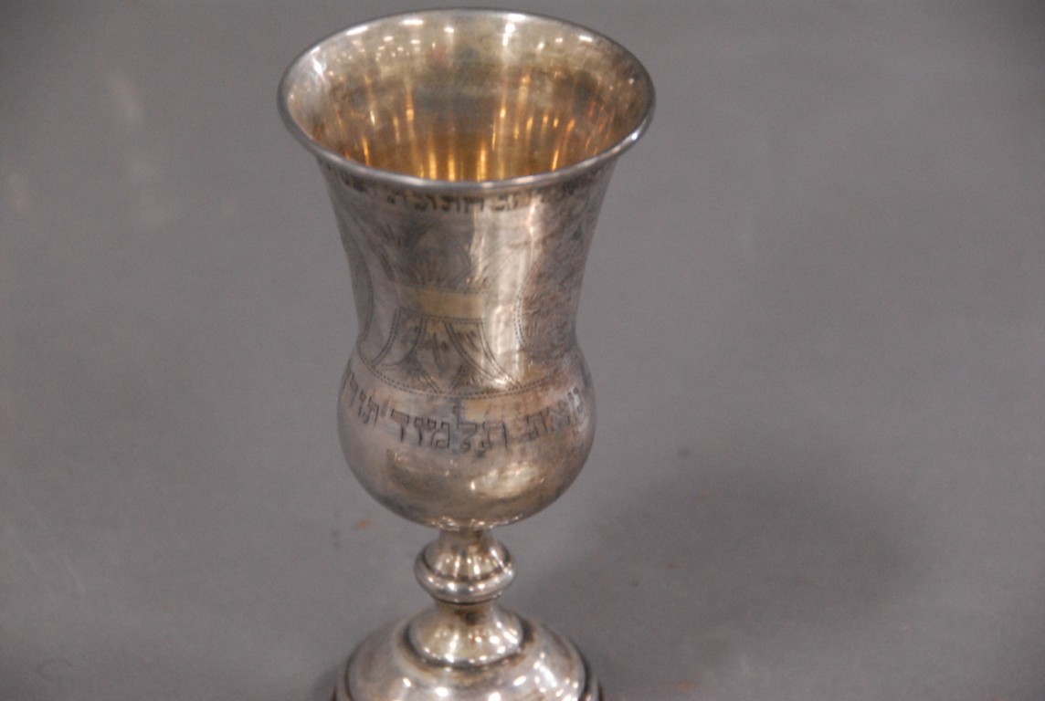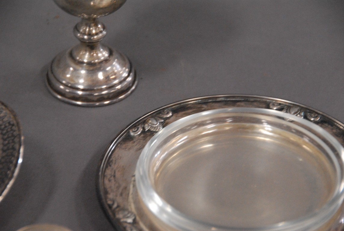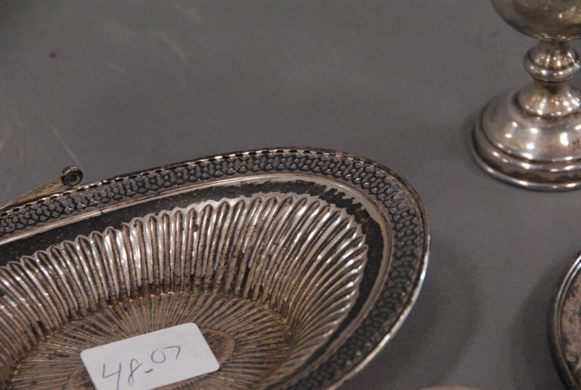 Small group of silver including a Russian cup, Georg Jensen small plate acorn pattern, a small basket and three small serving pieces
