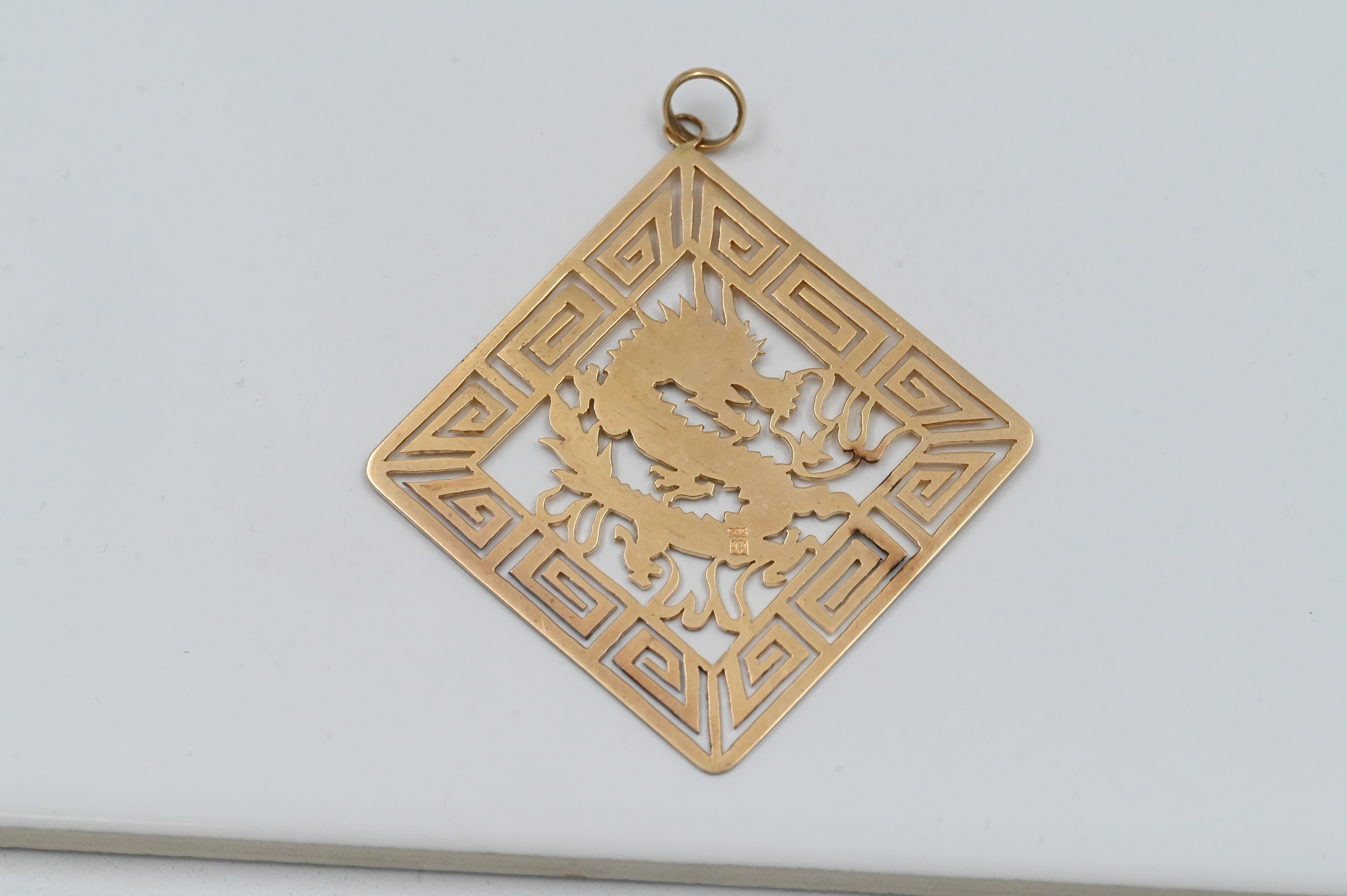 14K Yellow Gold Pendant having Pierce Carved Dragon