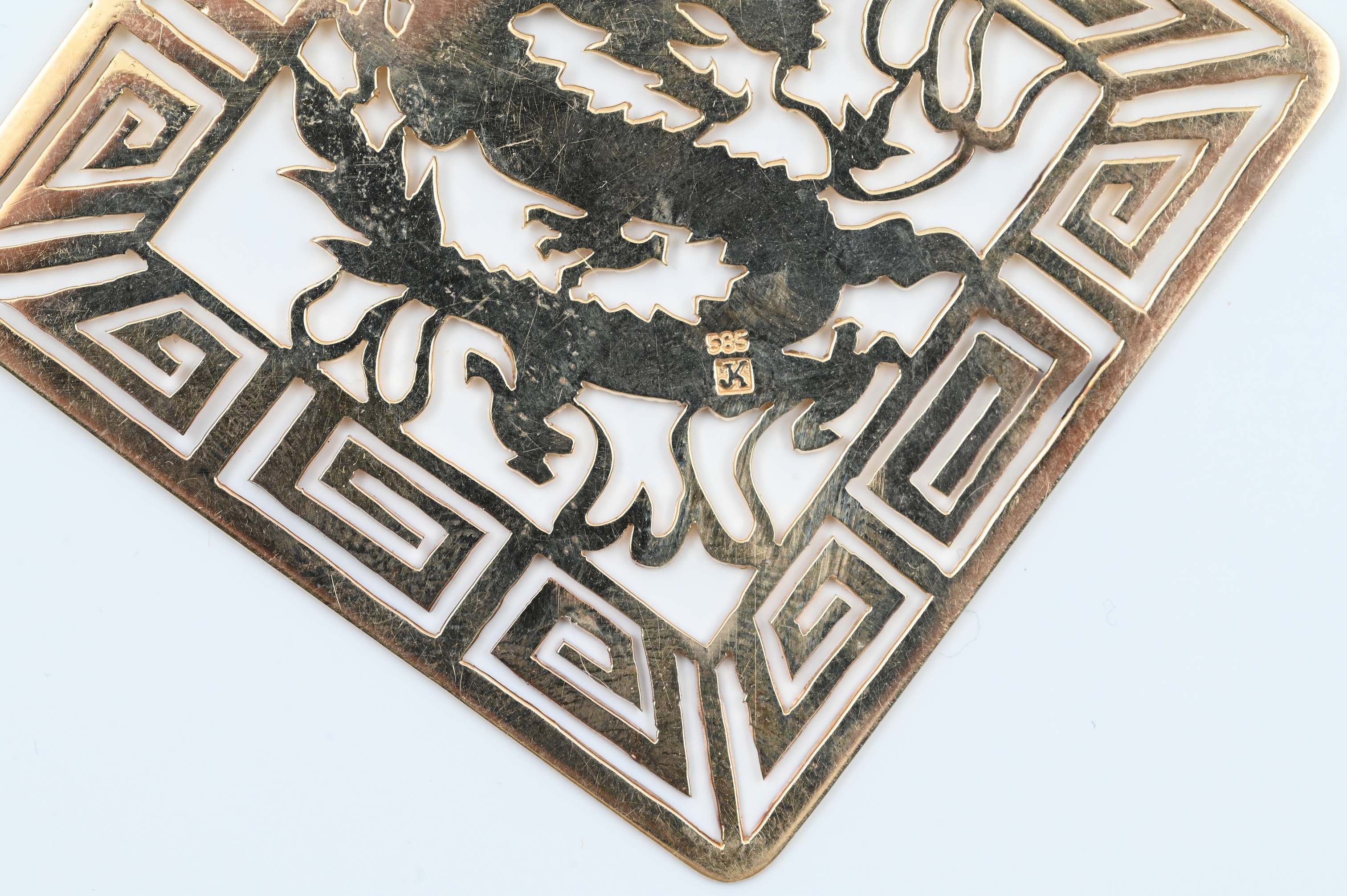 Lot 49: 14K Yellow Gold Pendant having Pierce Carved Dragon