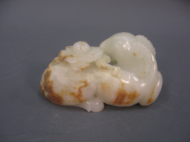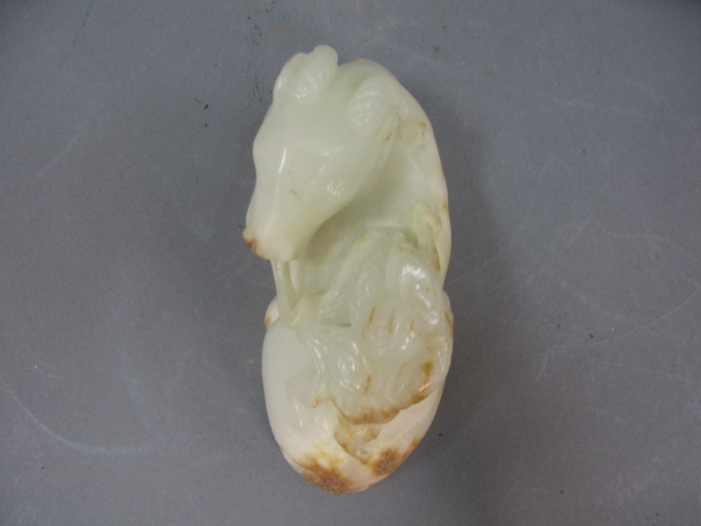 A late Qing Dynasty white jade ram.