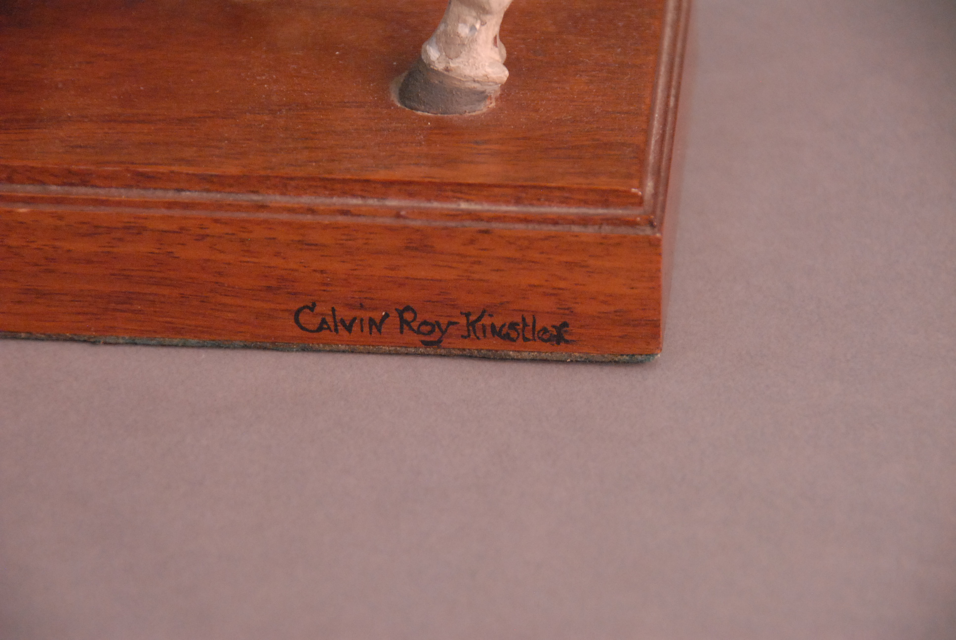 Calvin Roy Kinstler carved and painted wood horse signed Calvin Roy Kinstler.ht. 10 1/2 in. lg. 10 1/2 in.