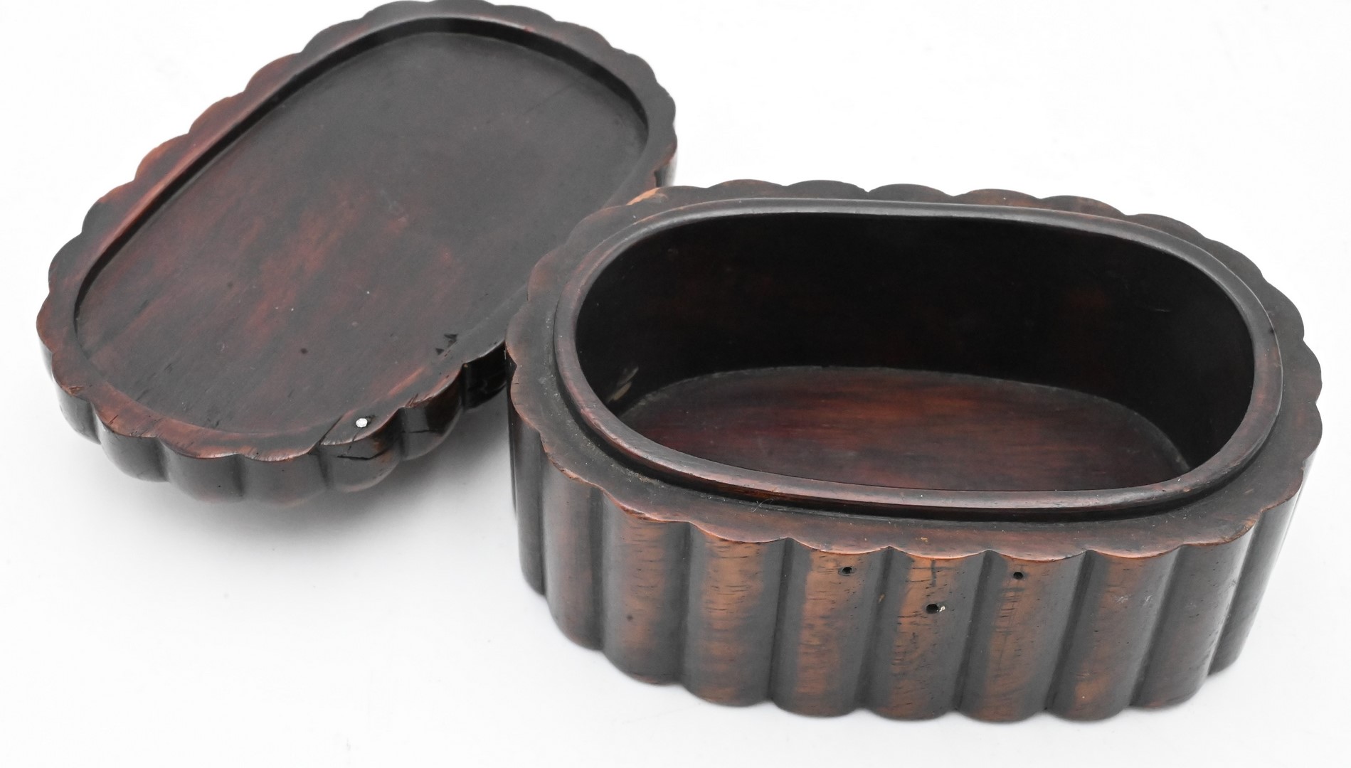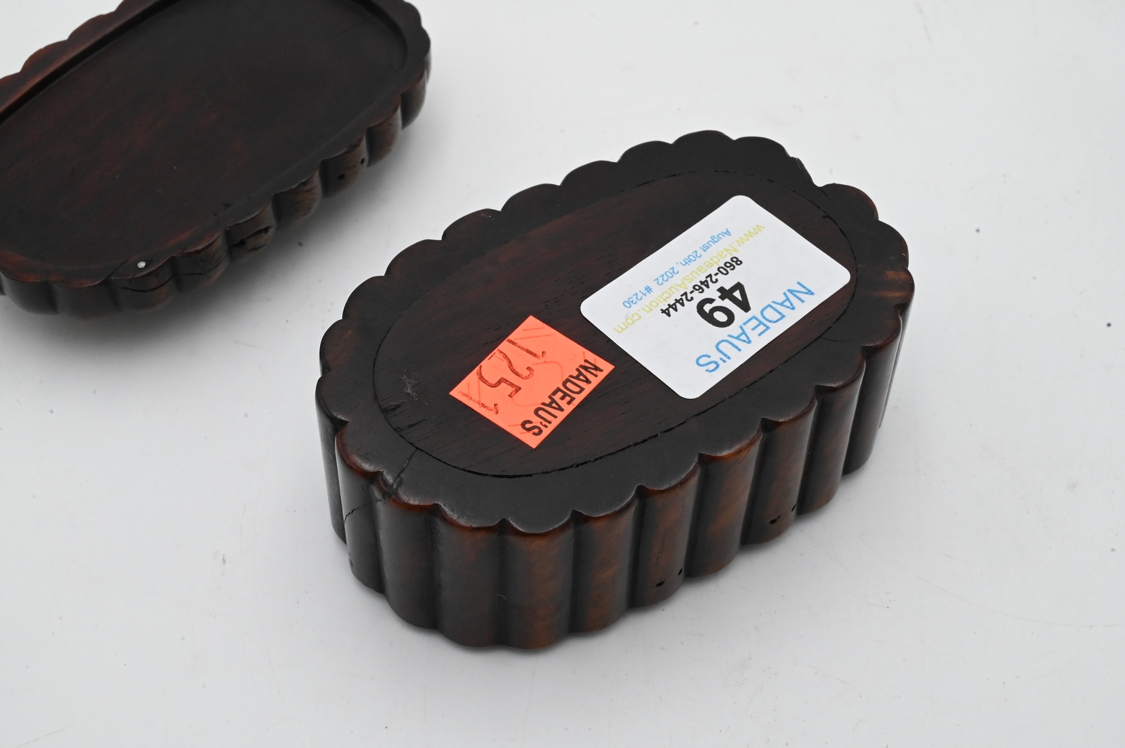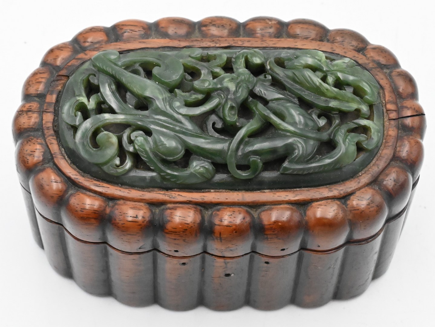 Carved Wood Box, having spinach jade plaque, height 2 inches, length 4 inches.