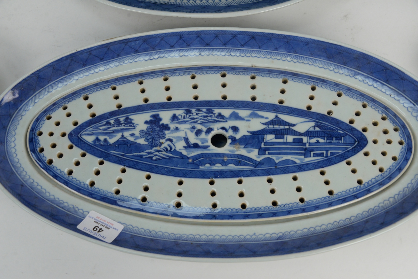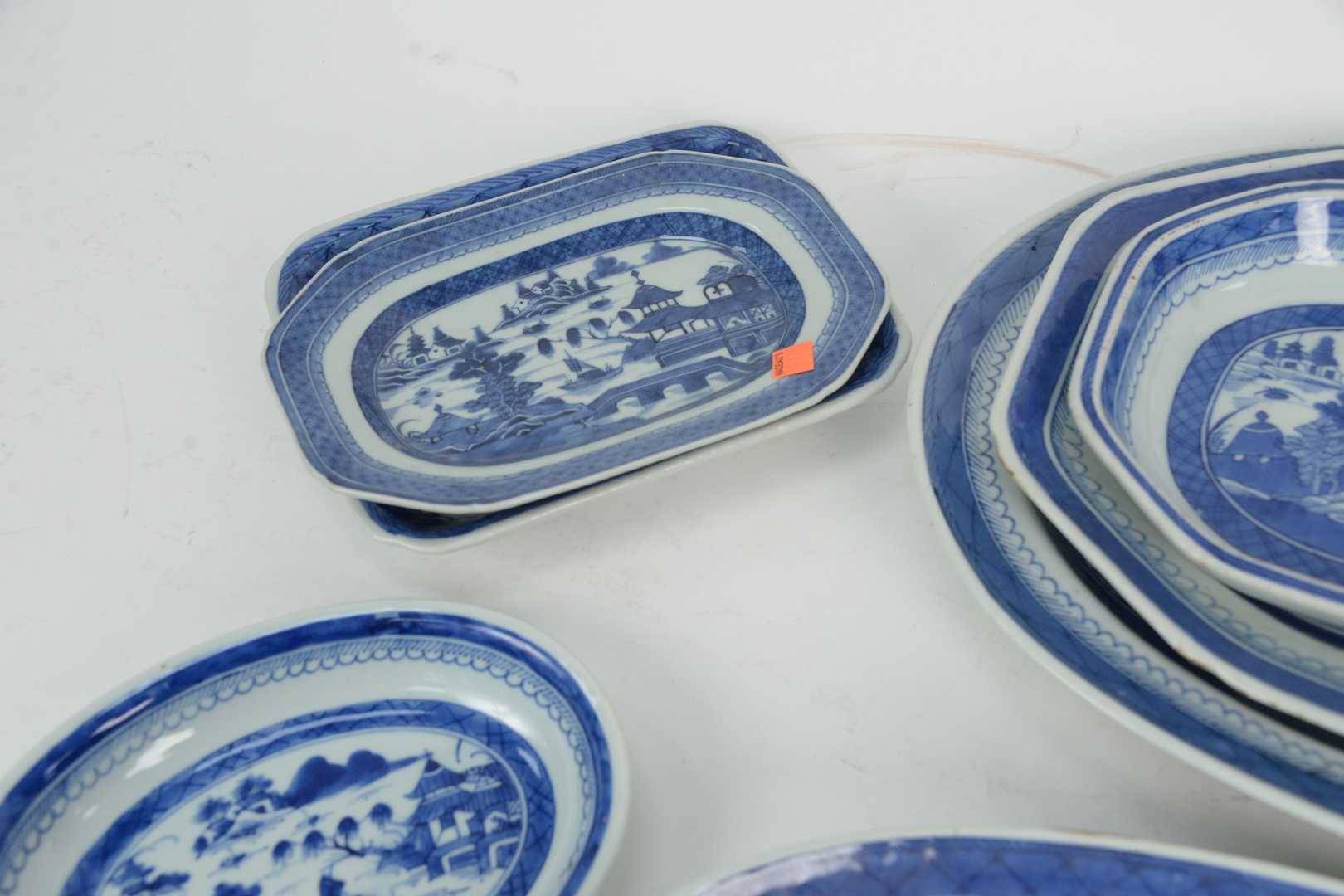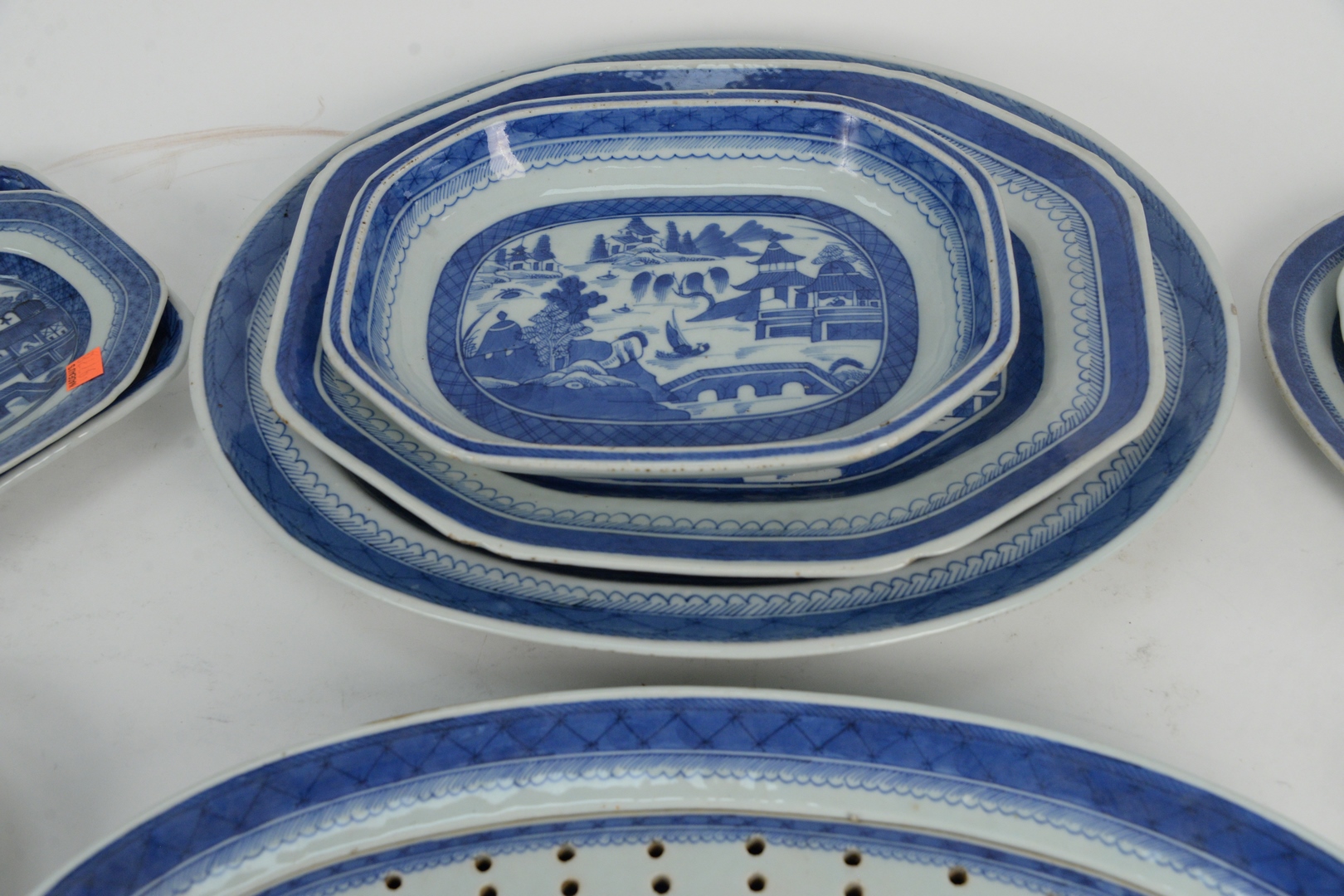 Lot 49: Eleven Piece Lot of Canton to include fish trays with liner, well and tree platter, along with various trays, fish platter, length 19 inches. Provenance: From a Newport, Rhode Island historic home, in the same family since 1761.