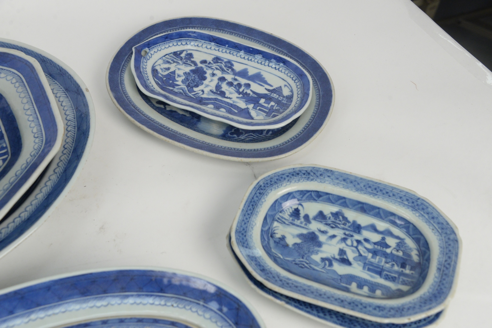 Eleven Piece Lot of Canton to include fish trays with liner, well and tree platter, along with various trays, fish platter, length 19 inches. Provenance: From a Newport, Rhode Island historic home, in the same family since 1761.
