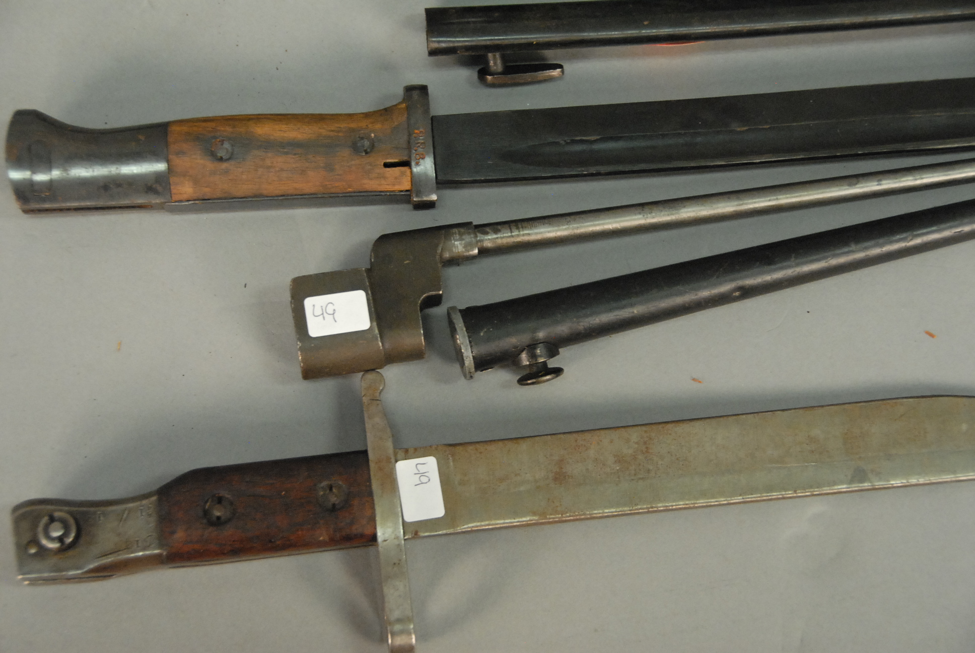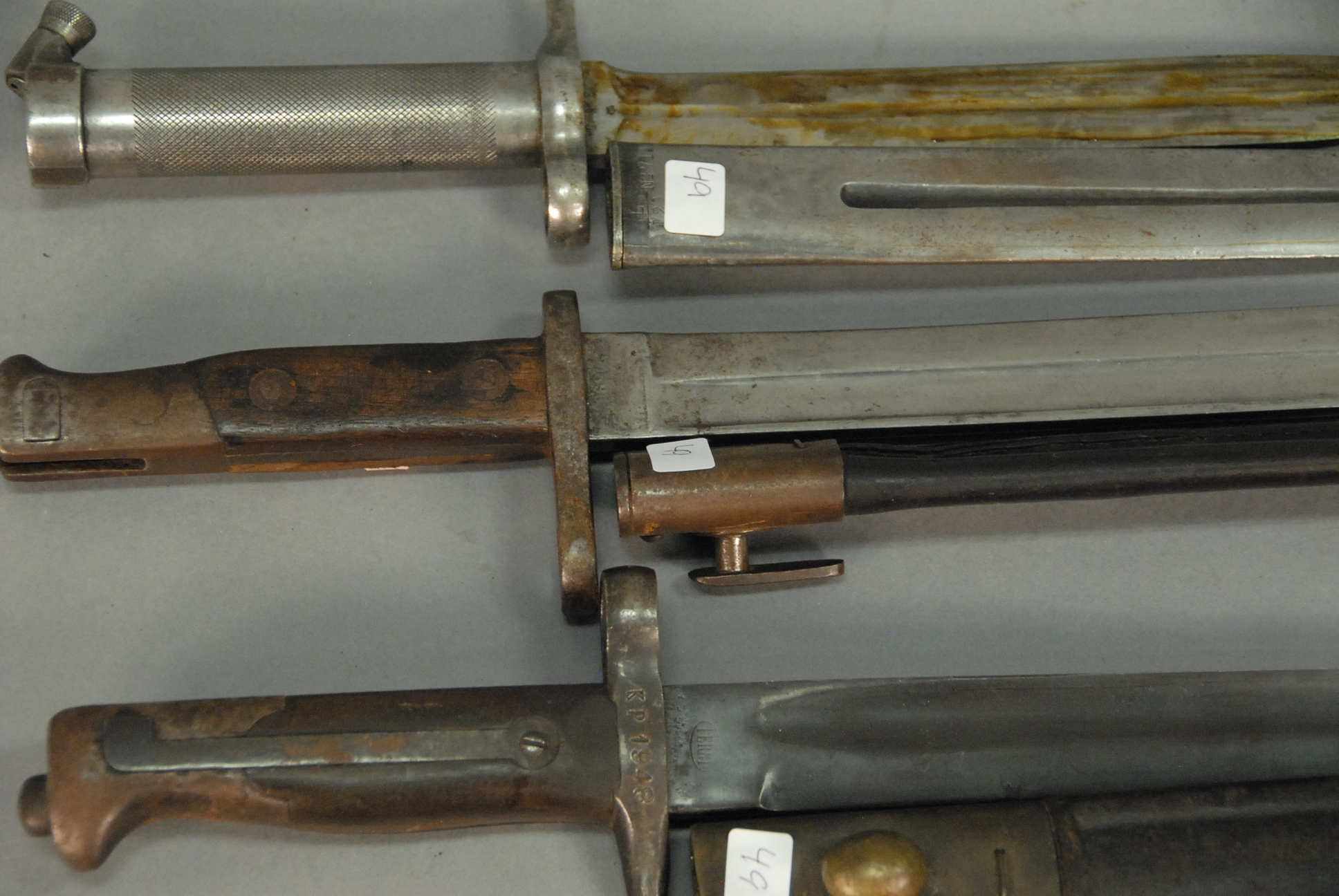 Lot 49: Group of six bayonets including Spanish bayonet marked PR8 5666 10 blade, a bayonet marked no 71A and no 289, bayonet marked Terni…
