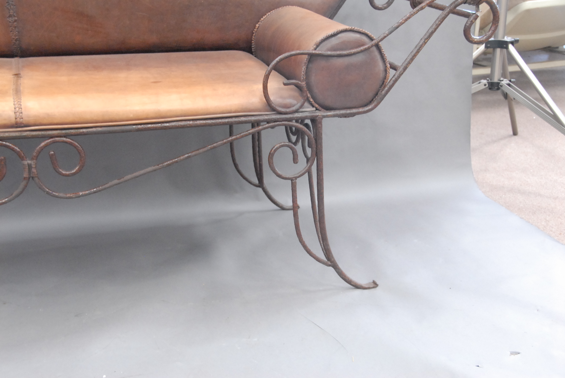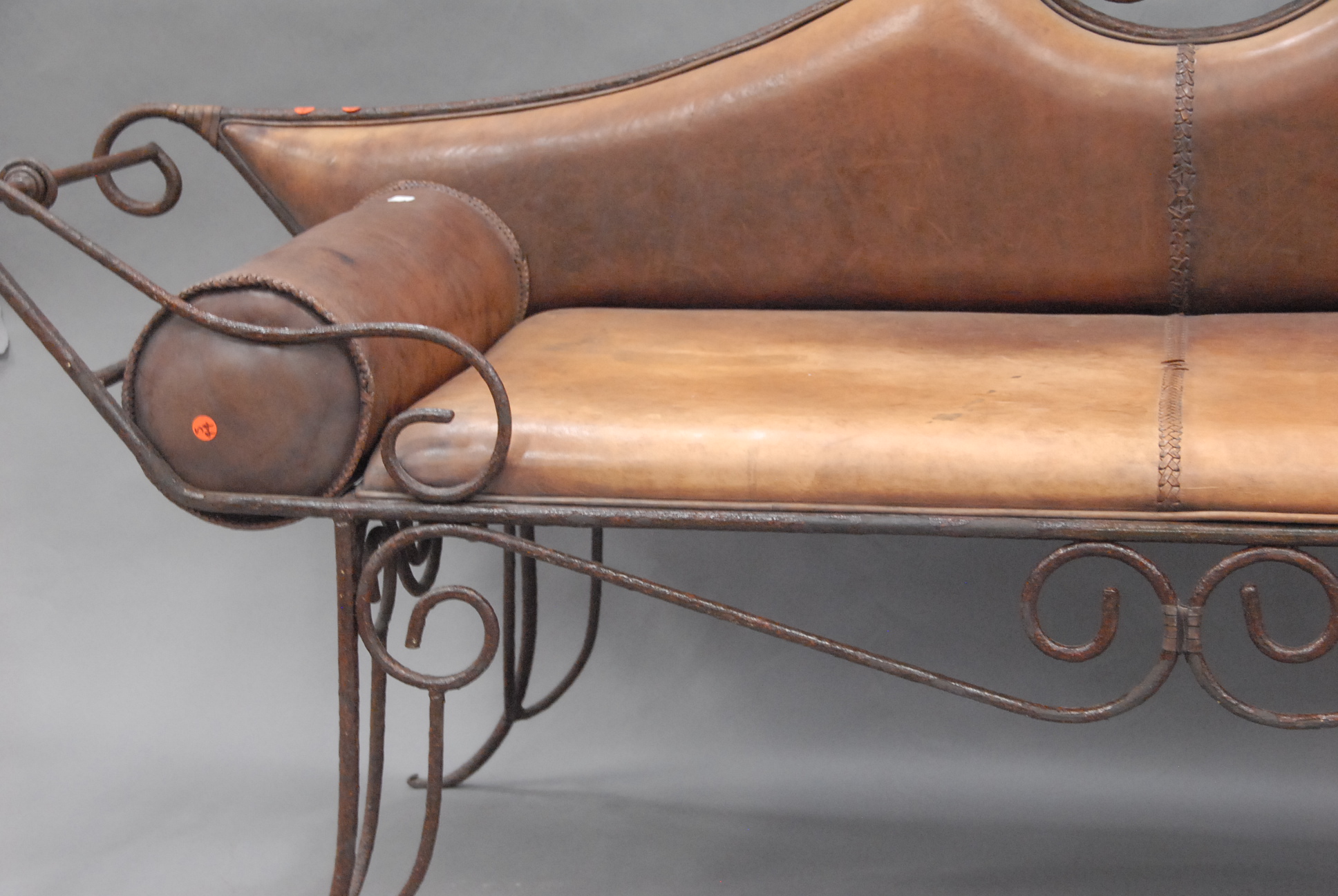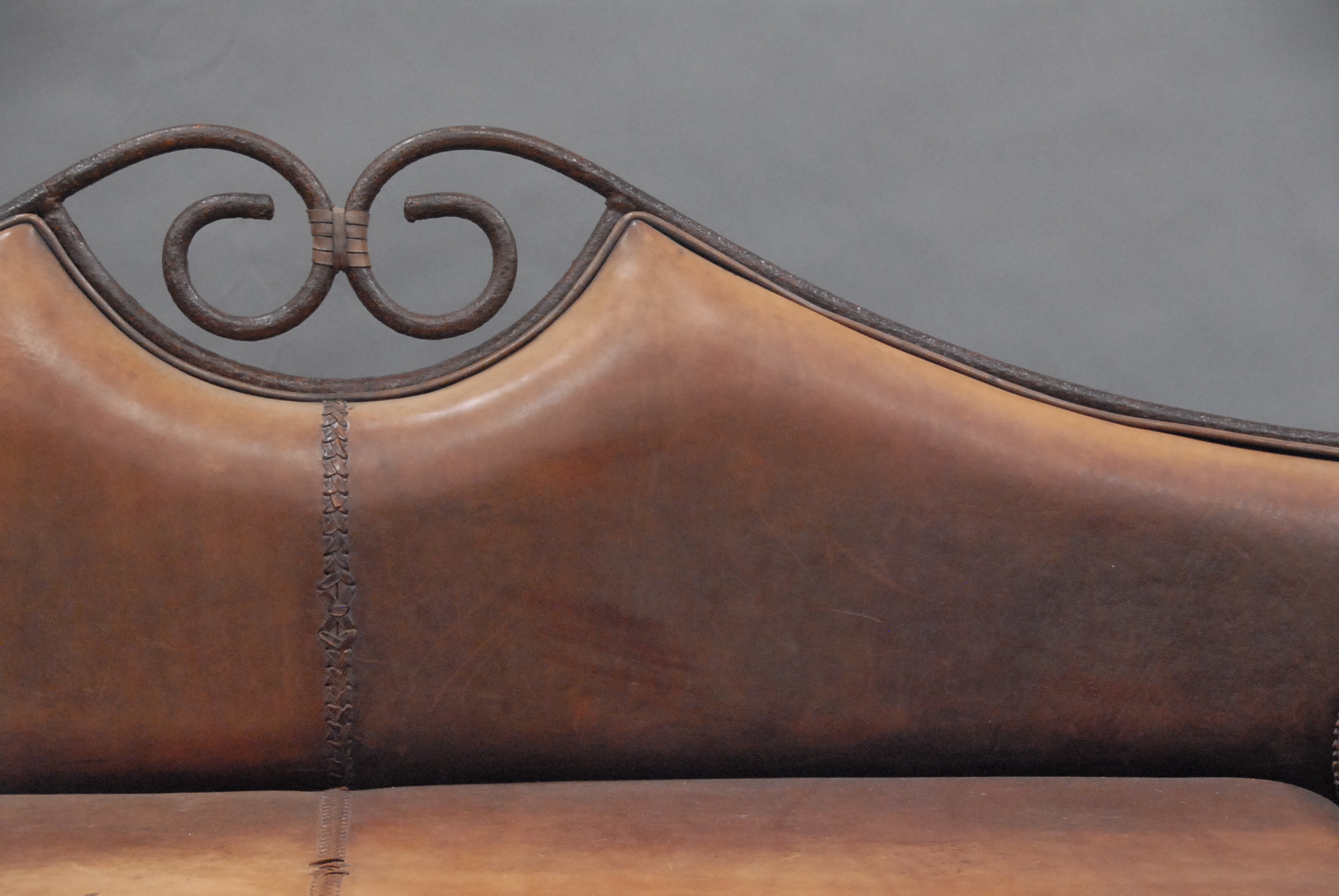 Iron and leather sofa.