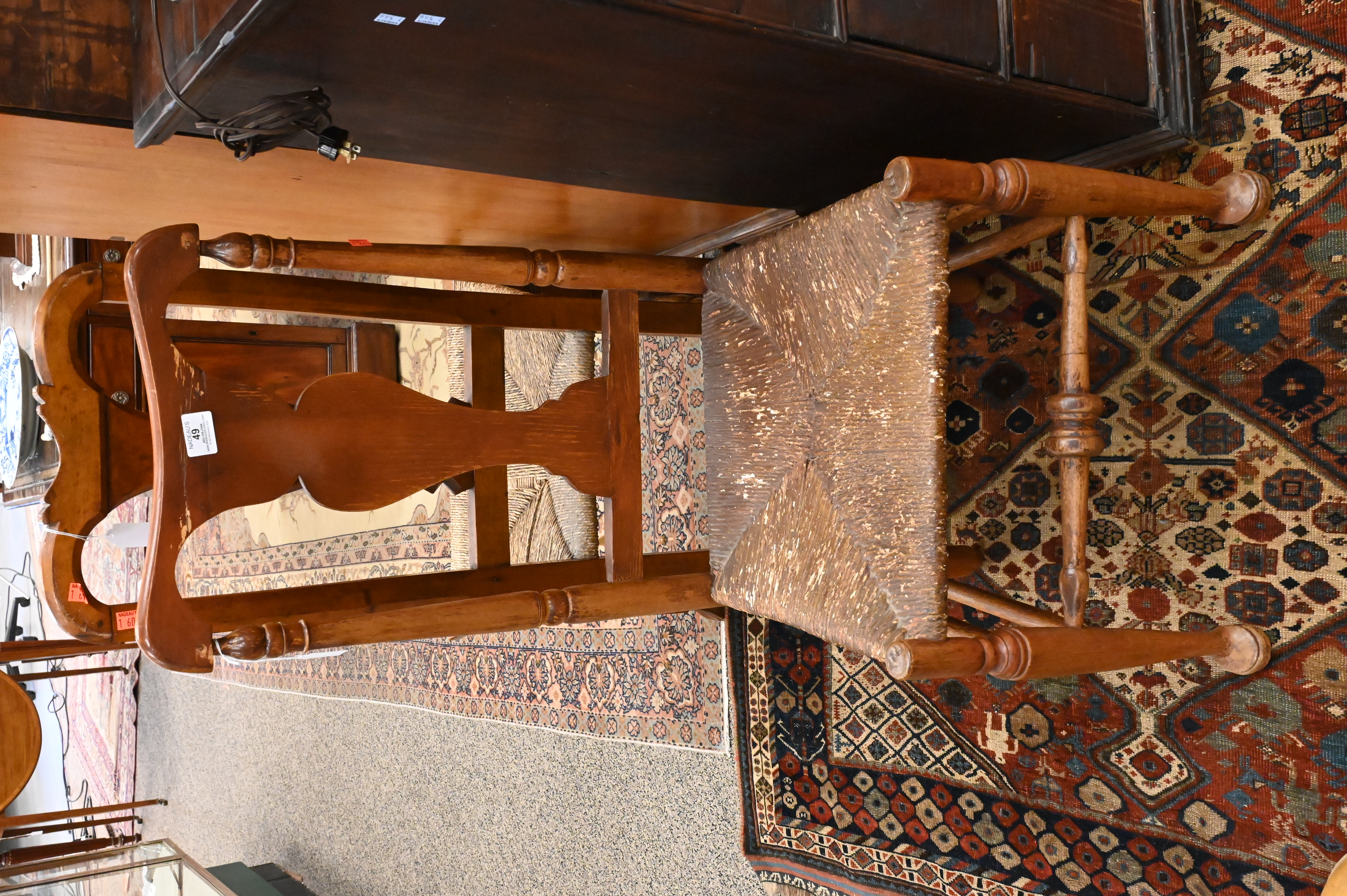 Lot 49: Pair of Queen Anne Side Chairs having Rush Seats