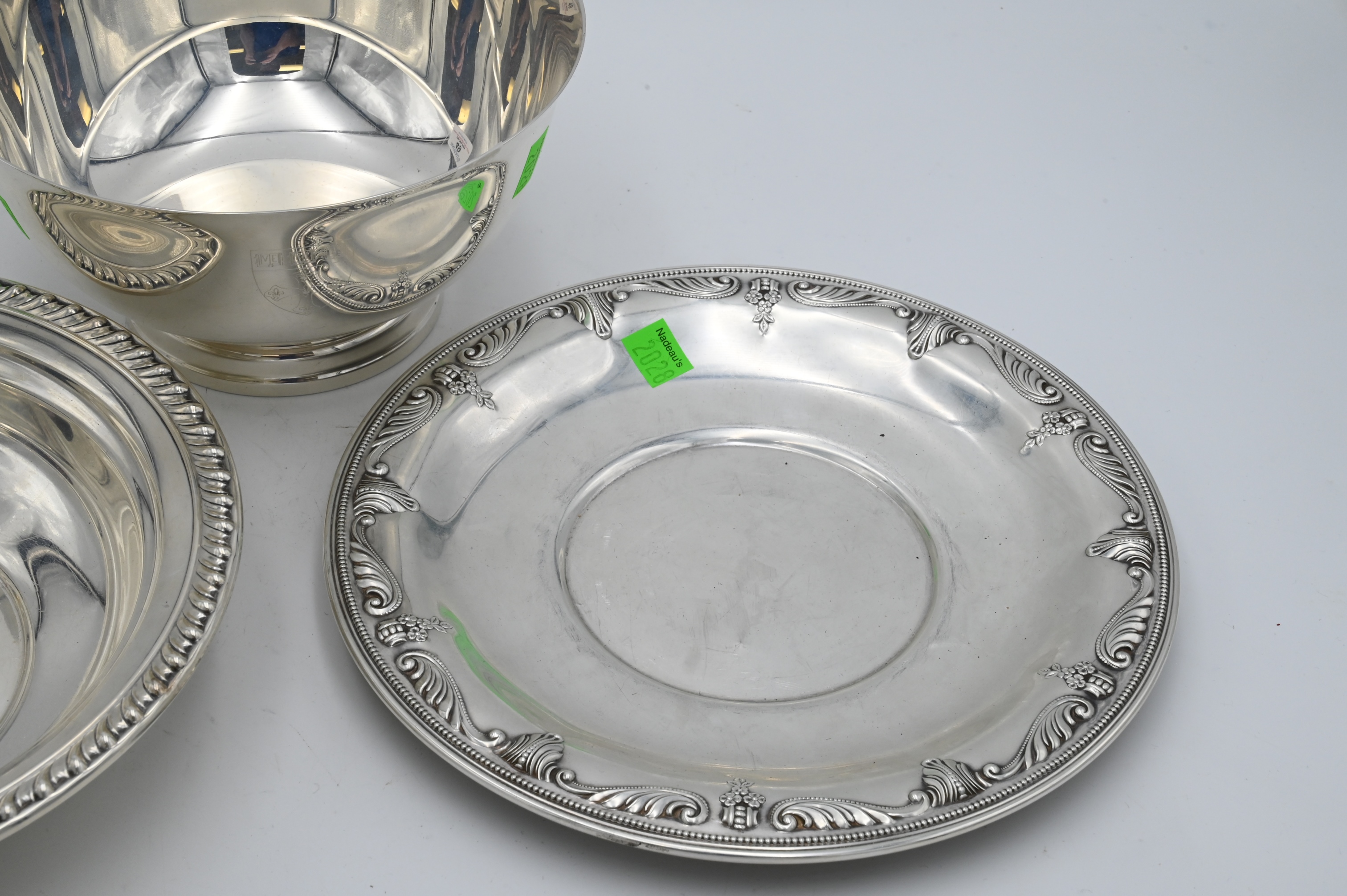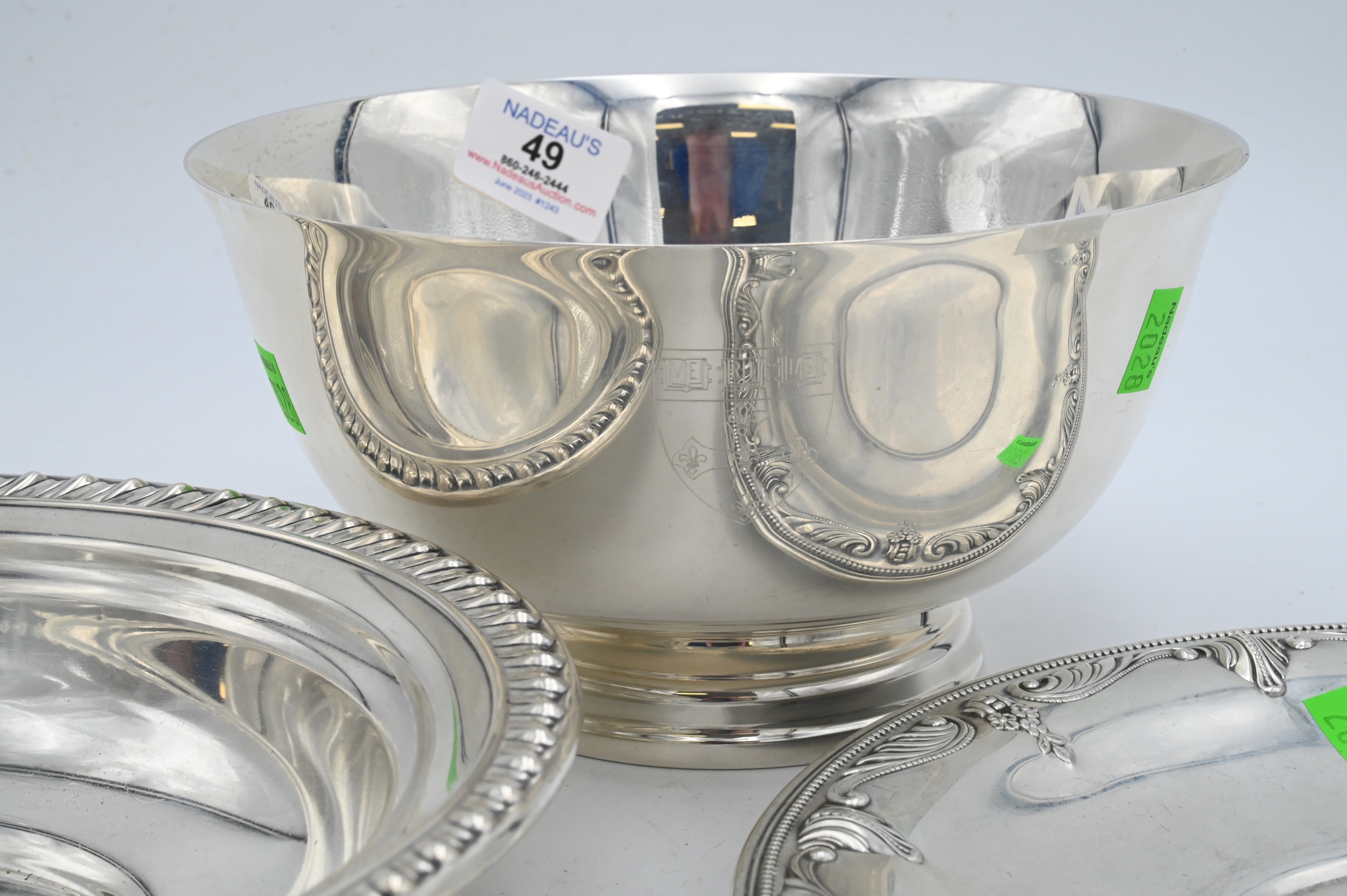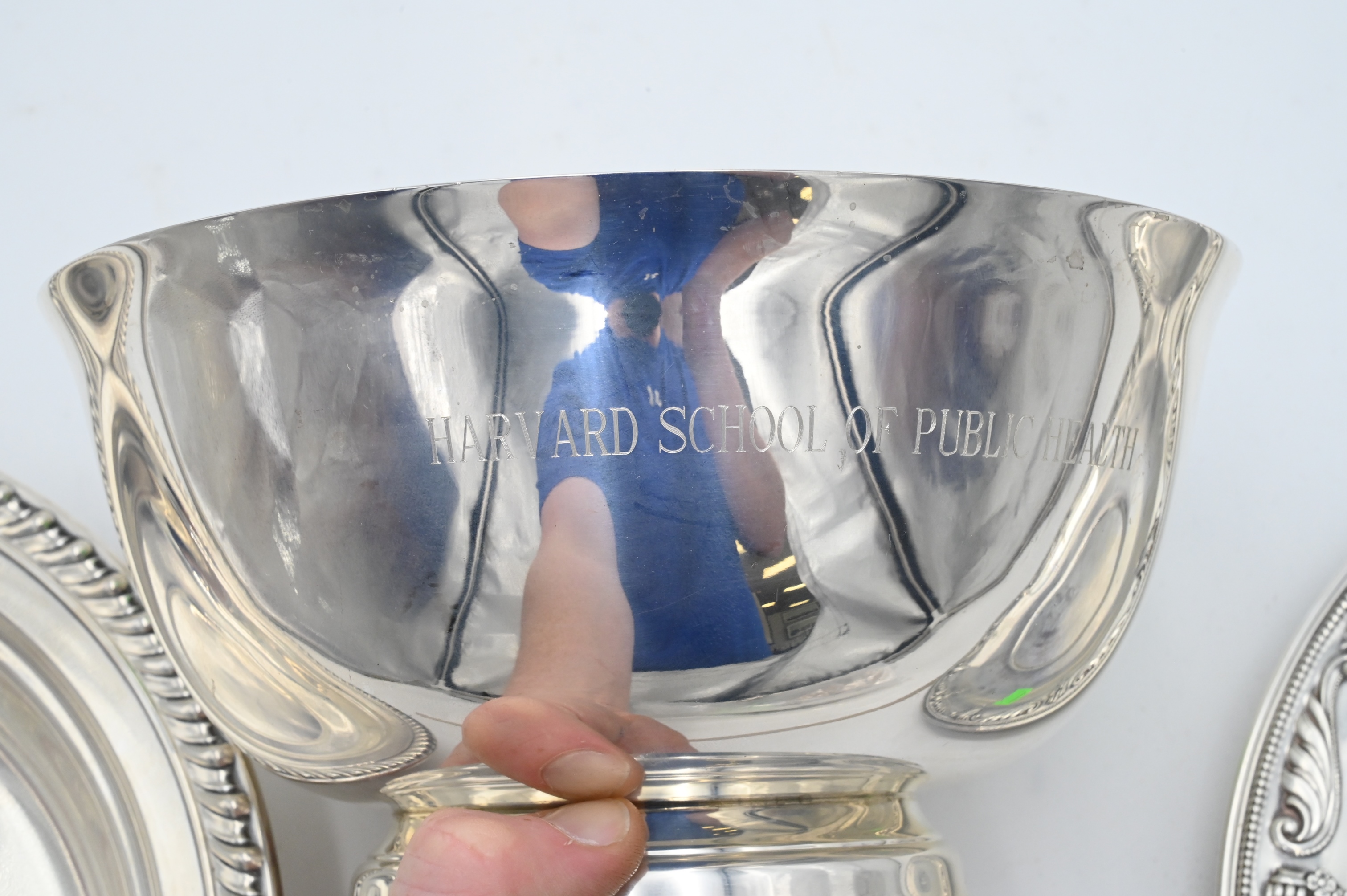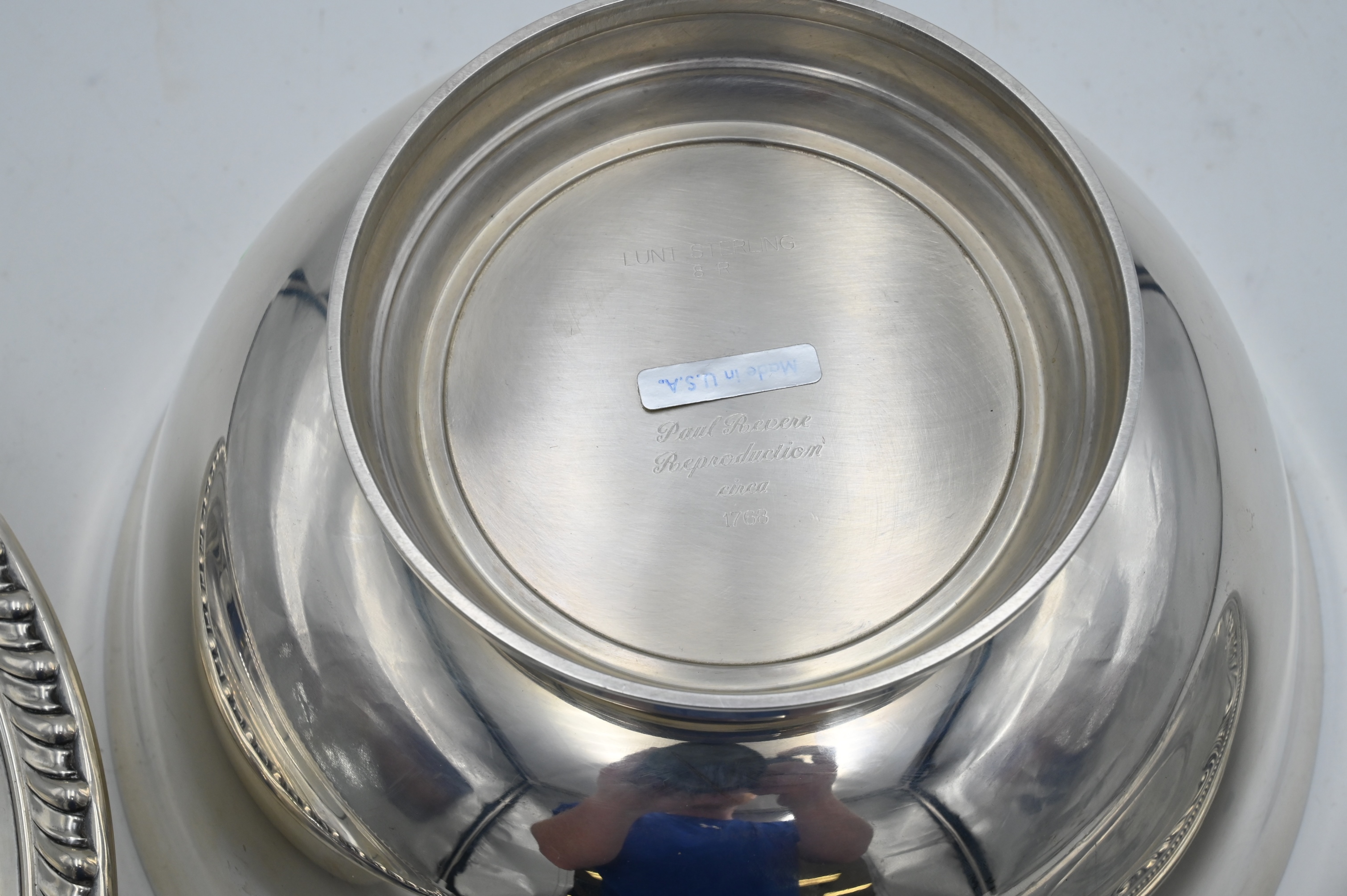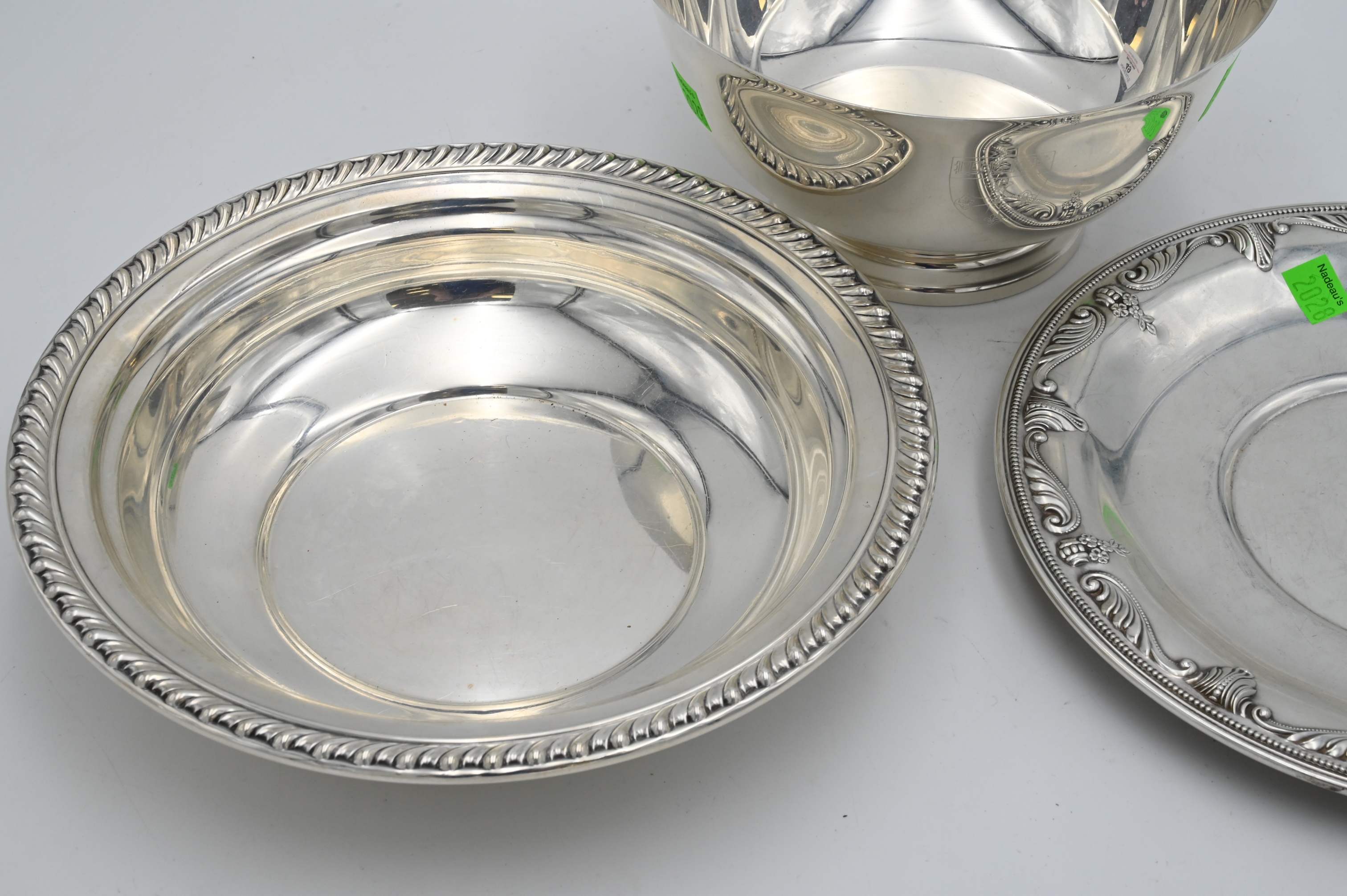 Three Sterling Silver Bowls, to include Paul Revere reproduction and Wallace Sterling, tallest height 4 1/4 inches, 37.7 t.oz, Provenance: Julius H Jacobson II a Fifth Avenue Estate.