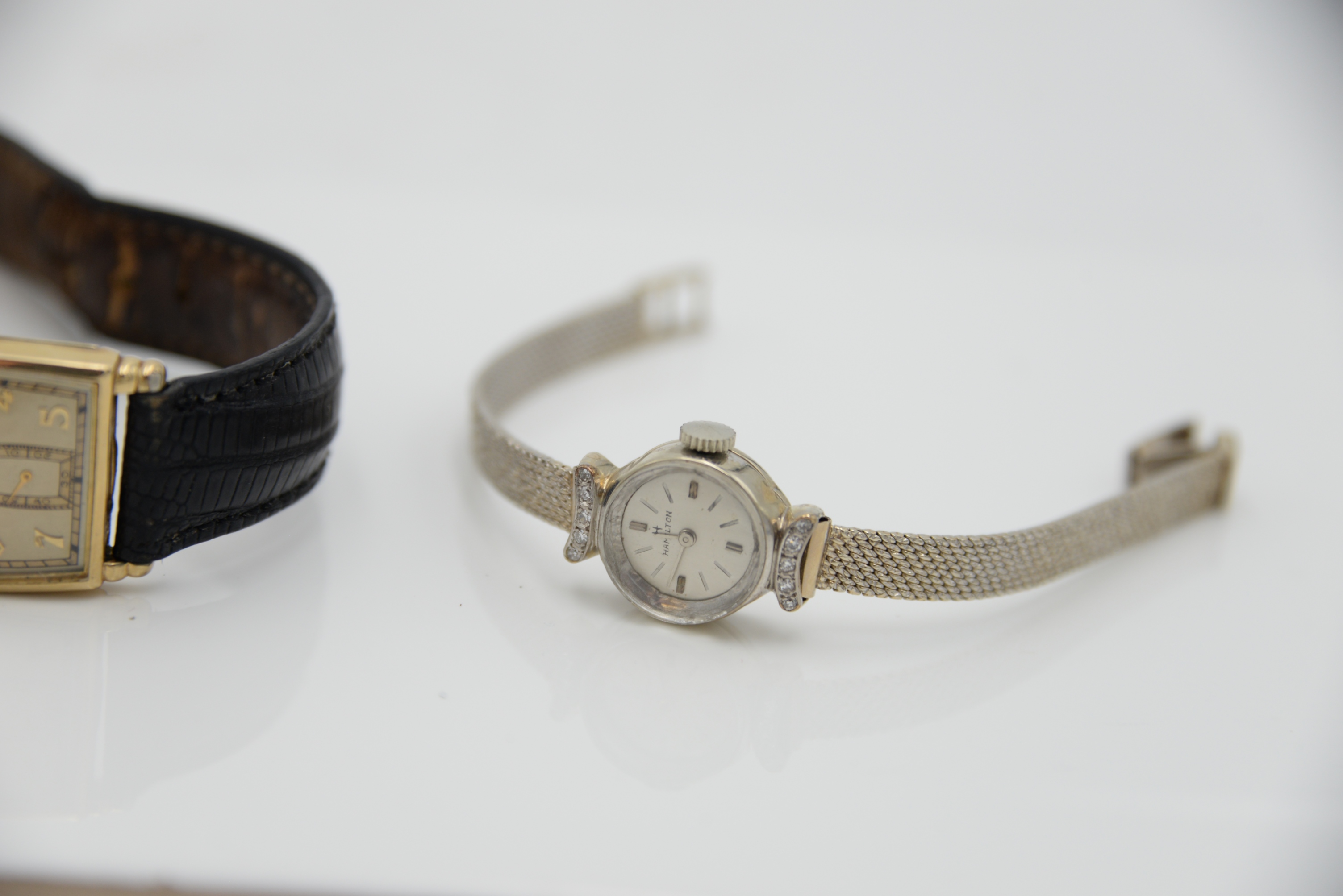 a ladies Hamilton 14 karat white gold wristwatch having 14 karat white gold mesh bracelet