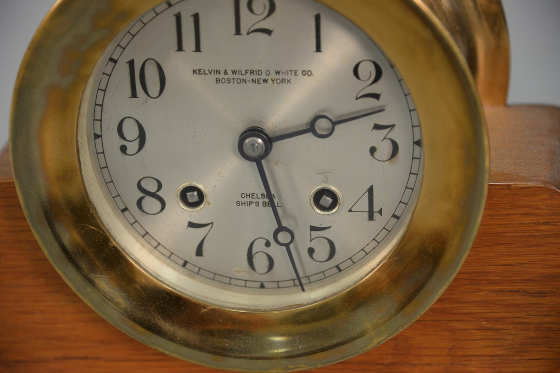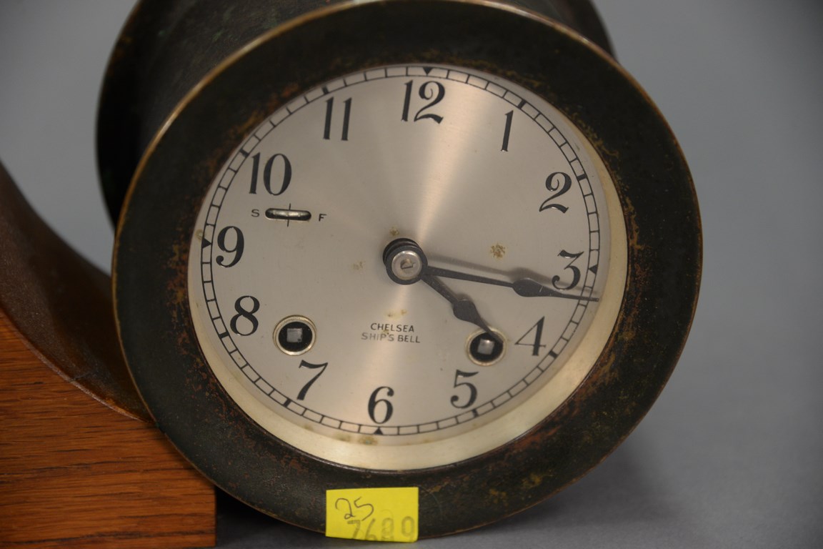Two Chelsea Ships Bell clocks, hts. 5 in. to 6 1/2 in.