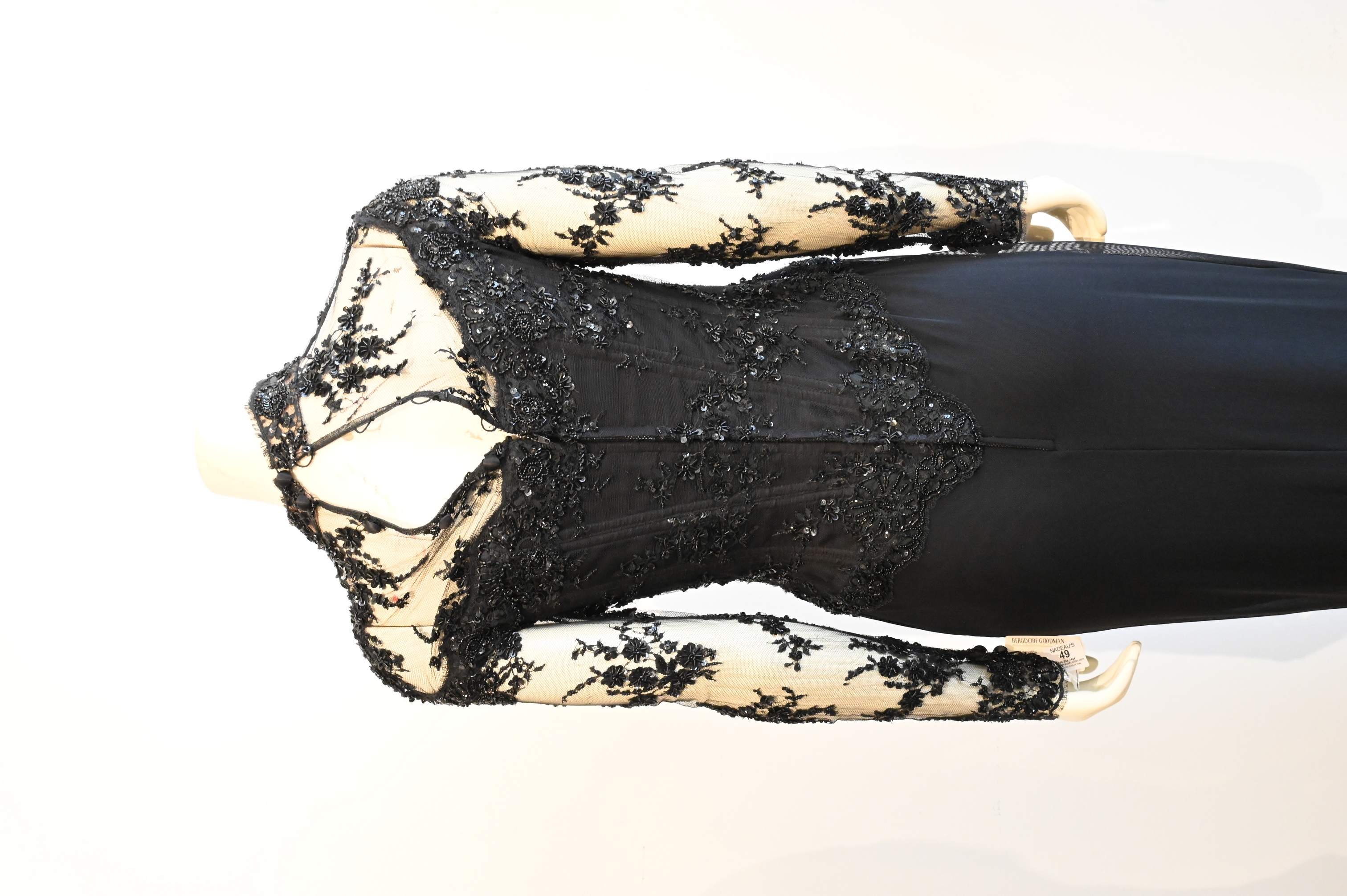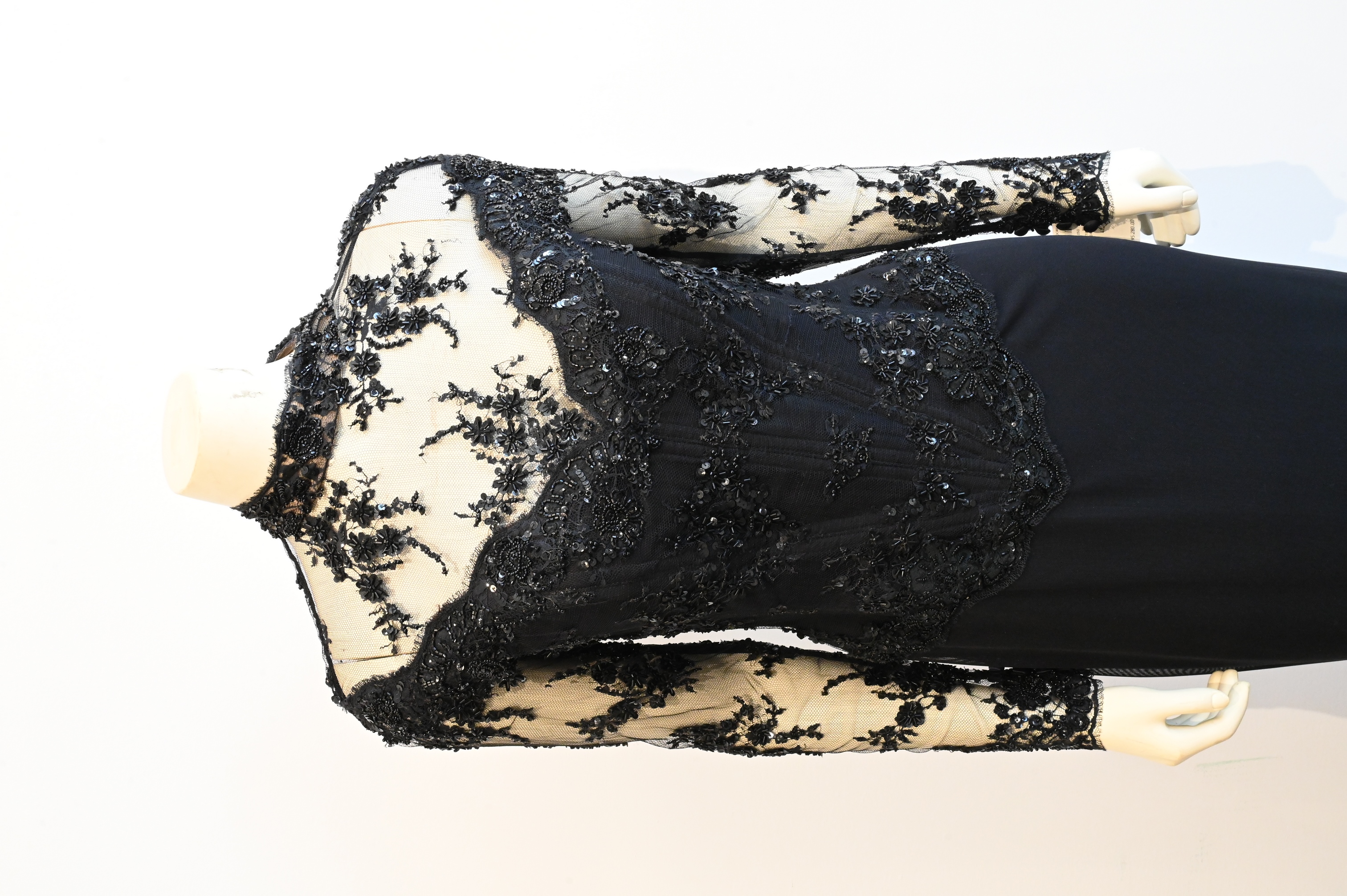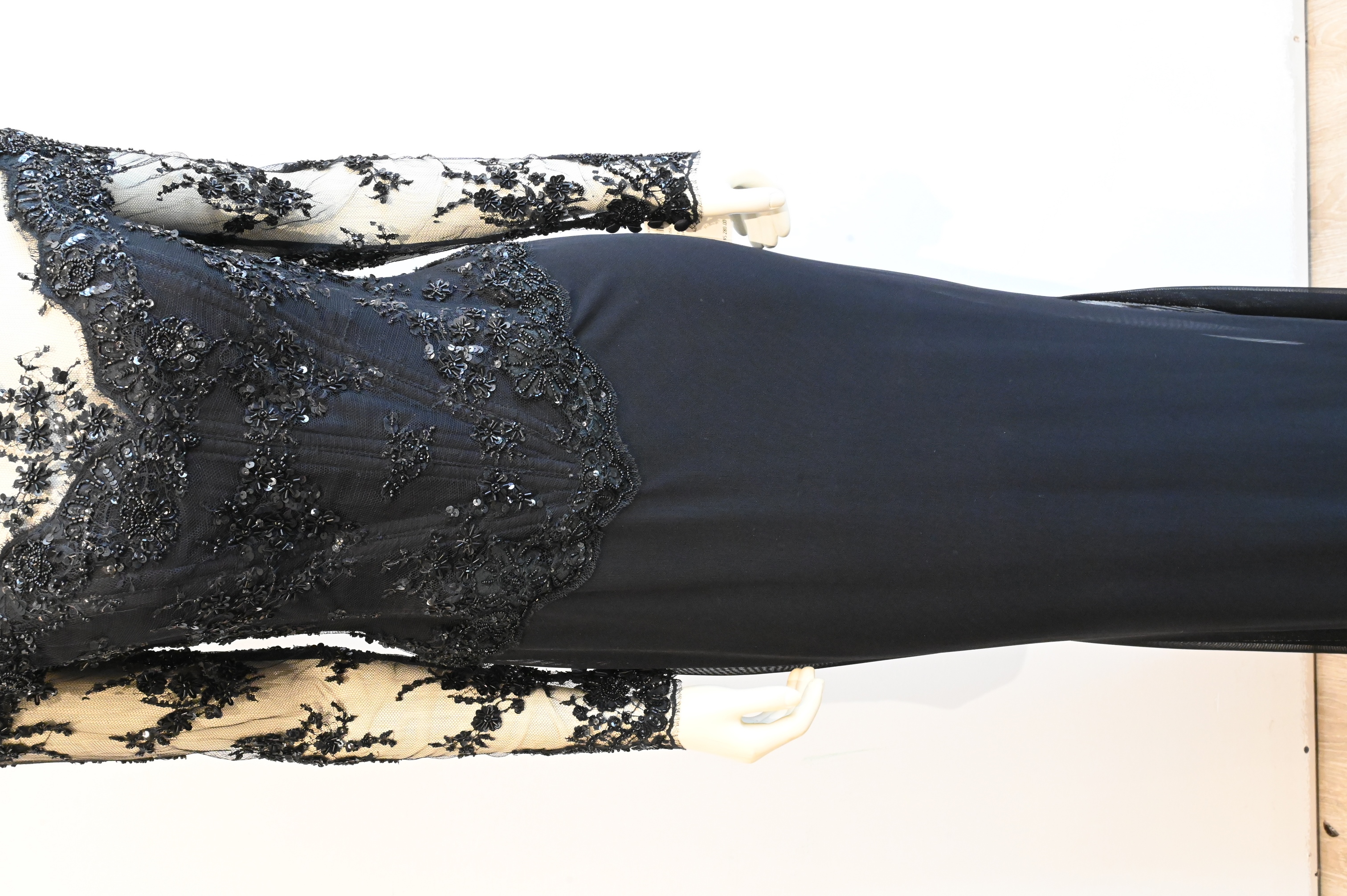 beaded accents to dress, long sleeve, high neck, Bergdorf Goodman tag retails for $5,280