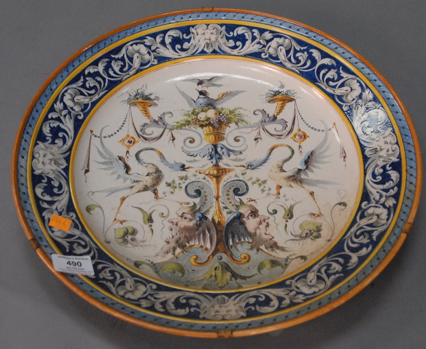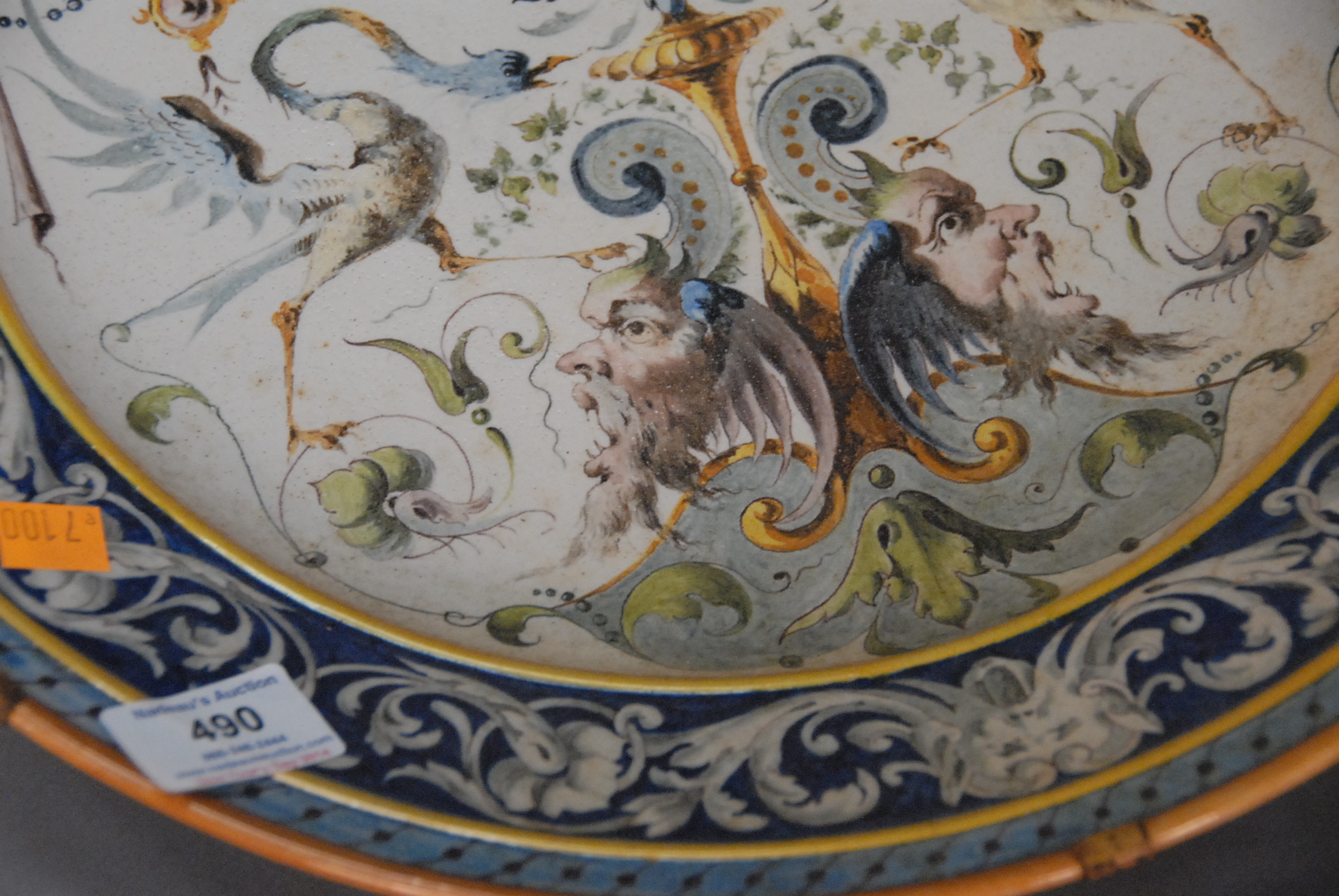 Italian Majolica charger marked Ginori. dia. 16 1/2in.