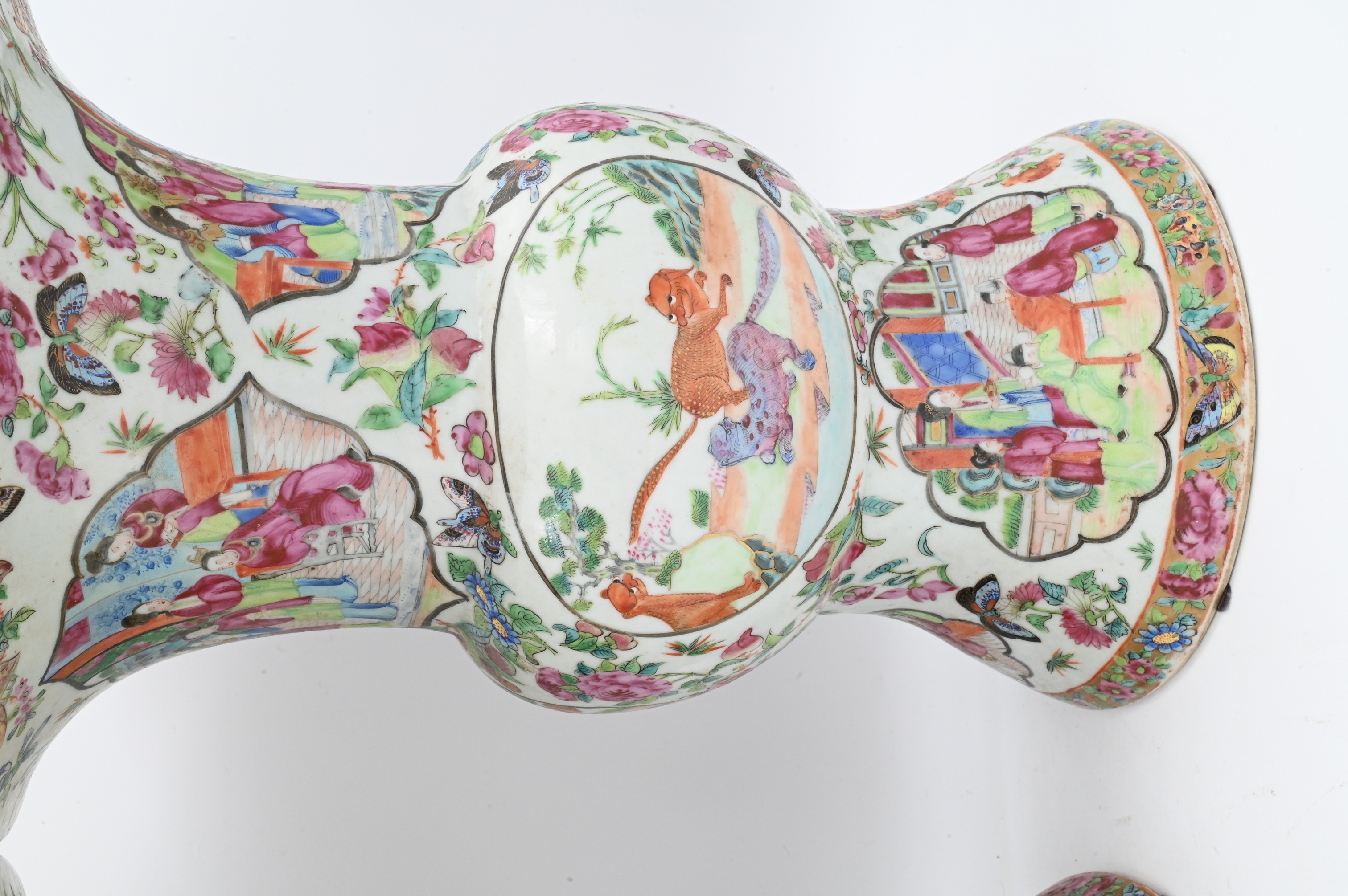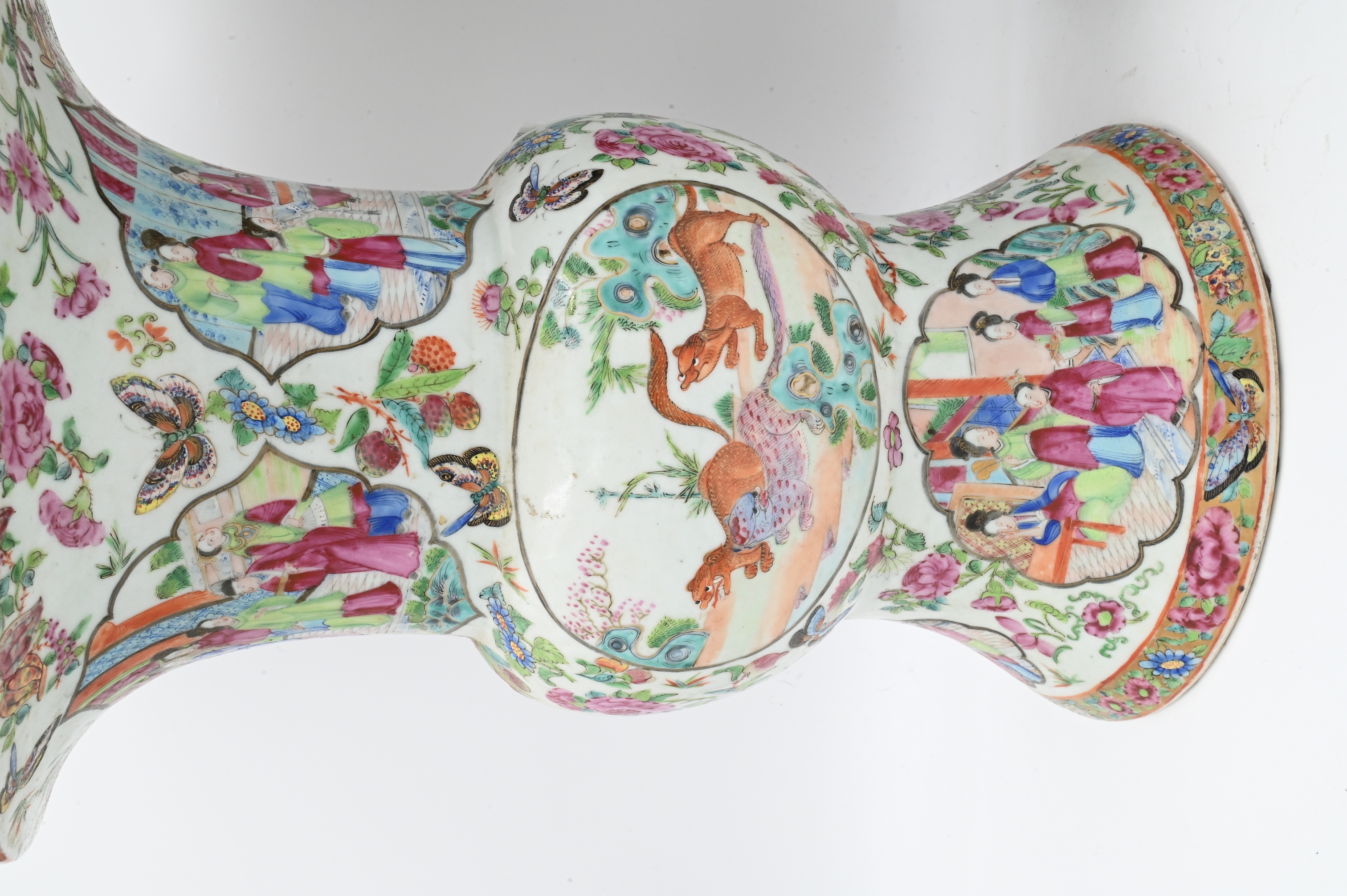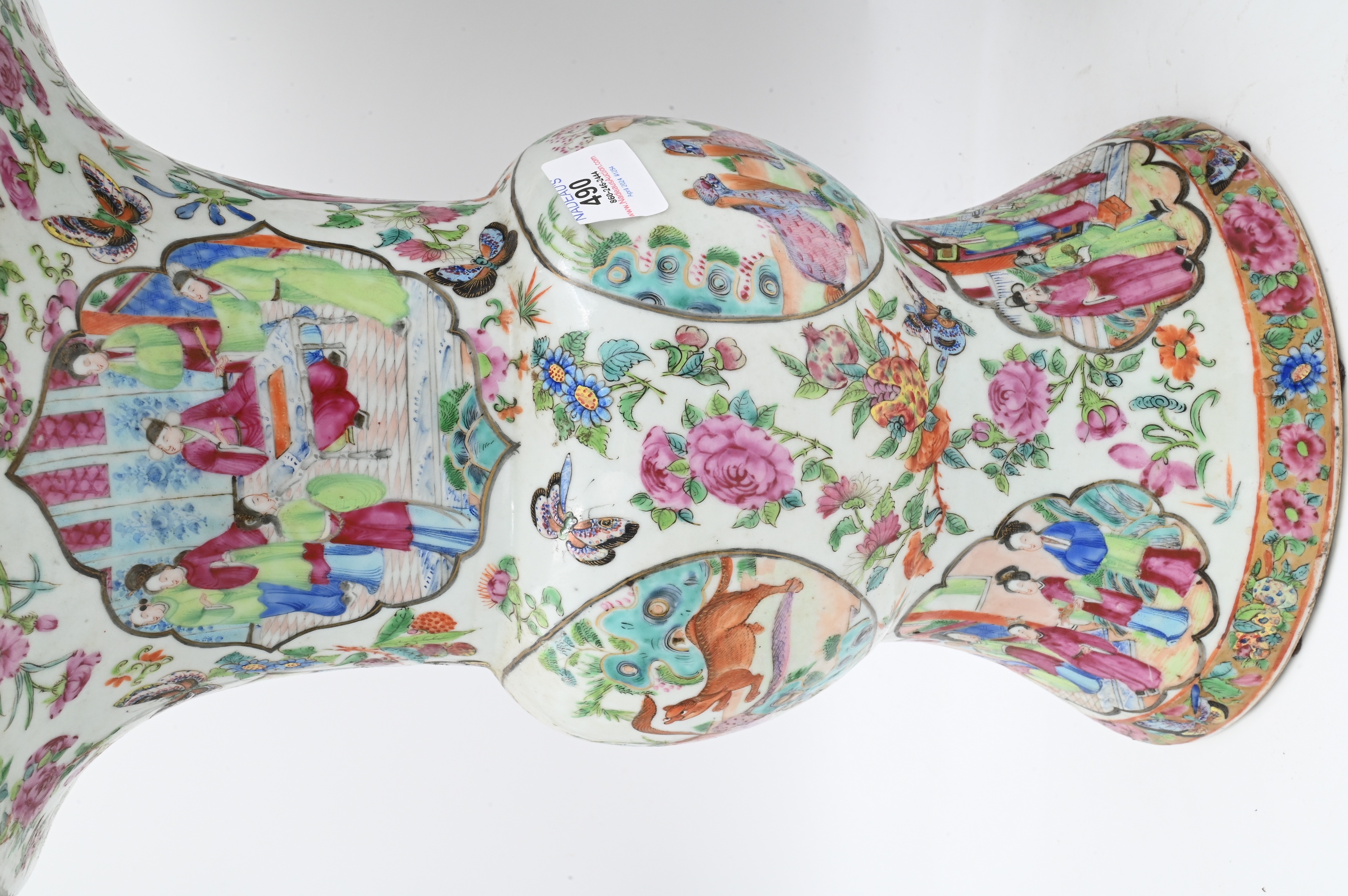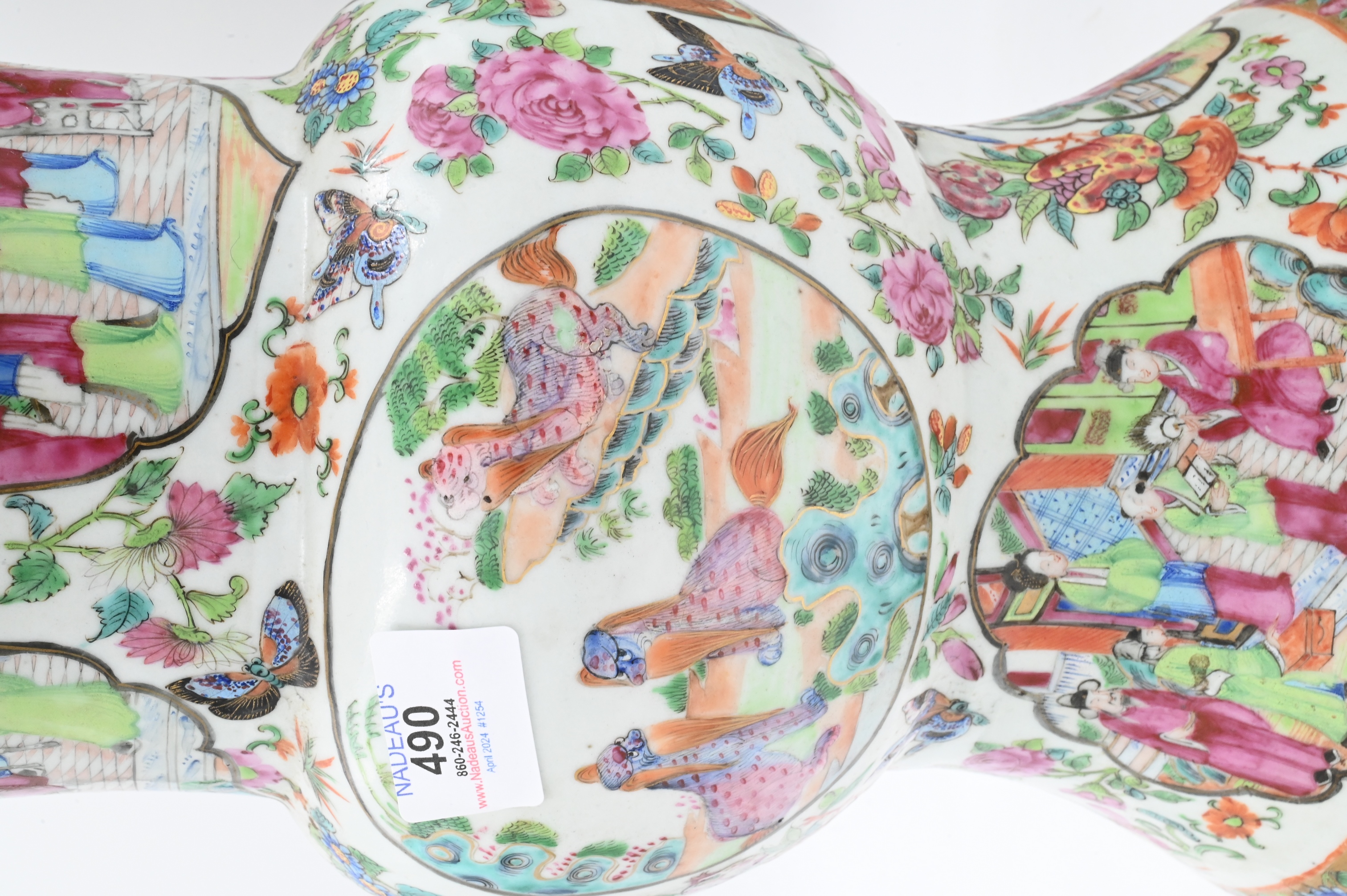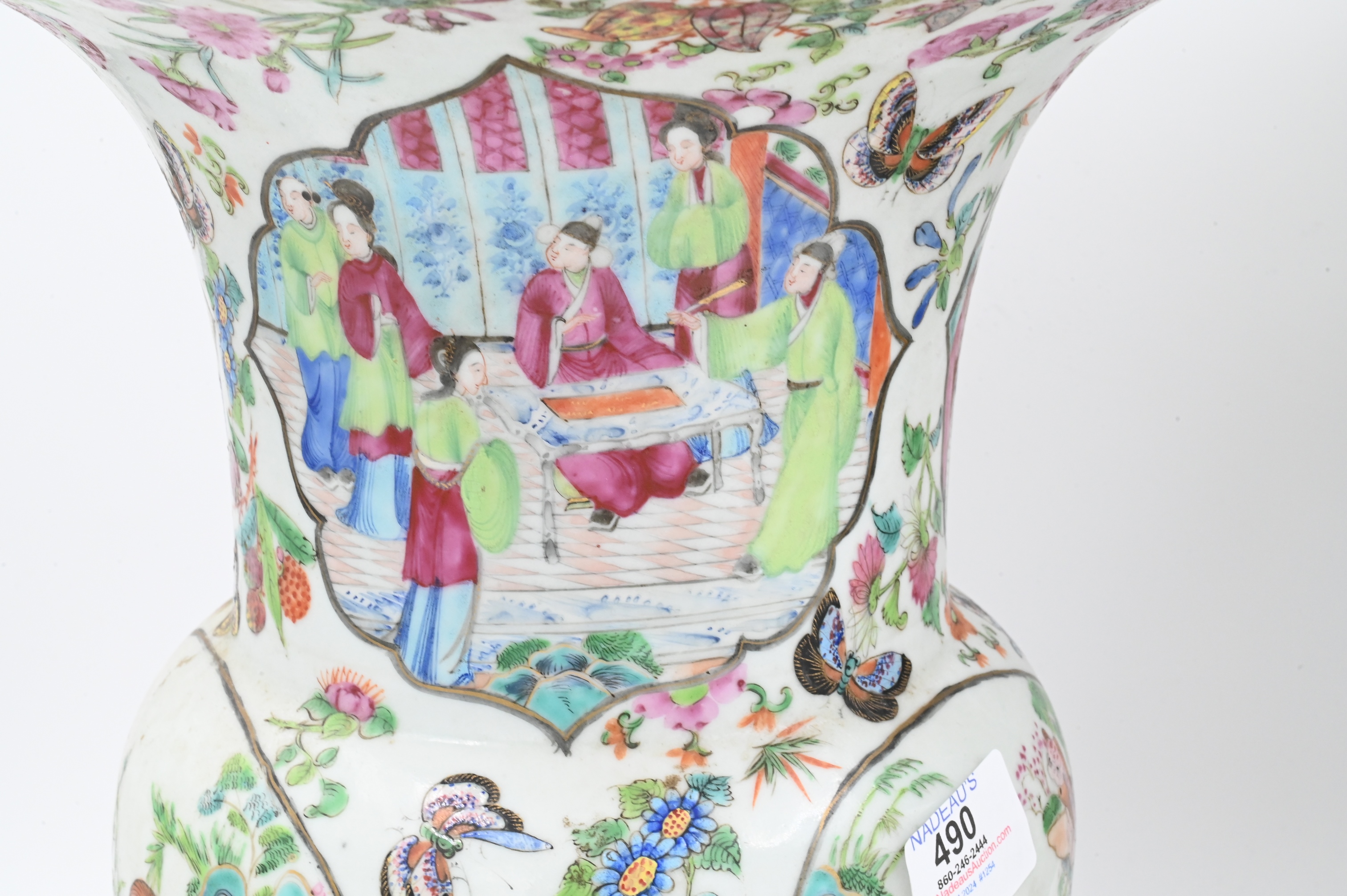 Lot 490: Pair of Chinese Famille Rose Gu Vases