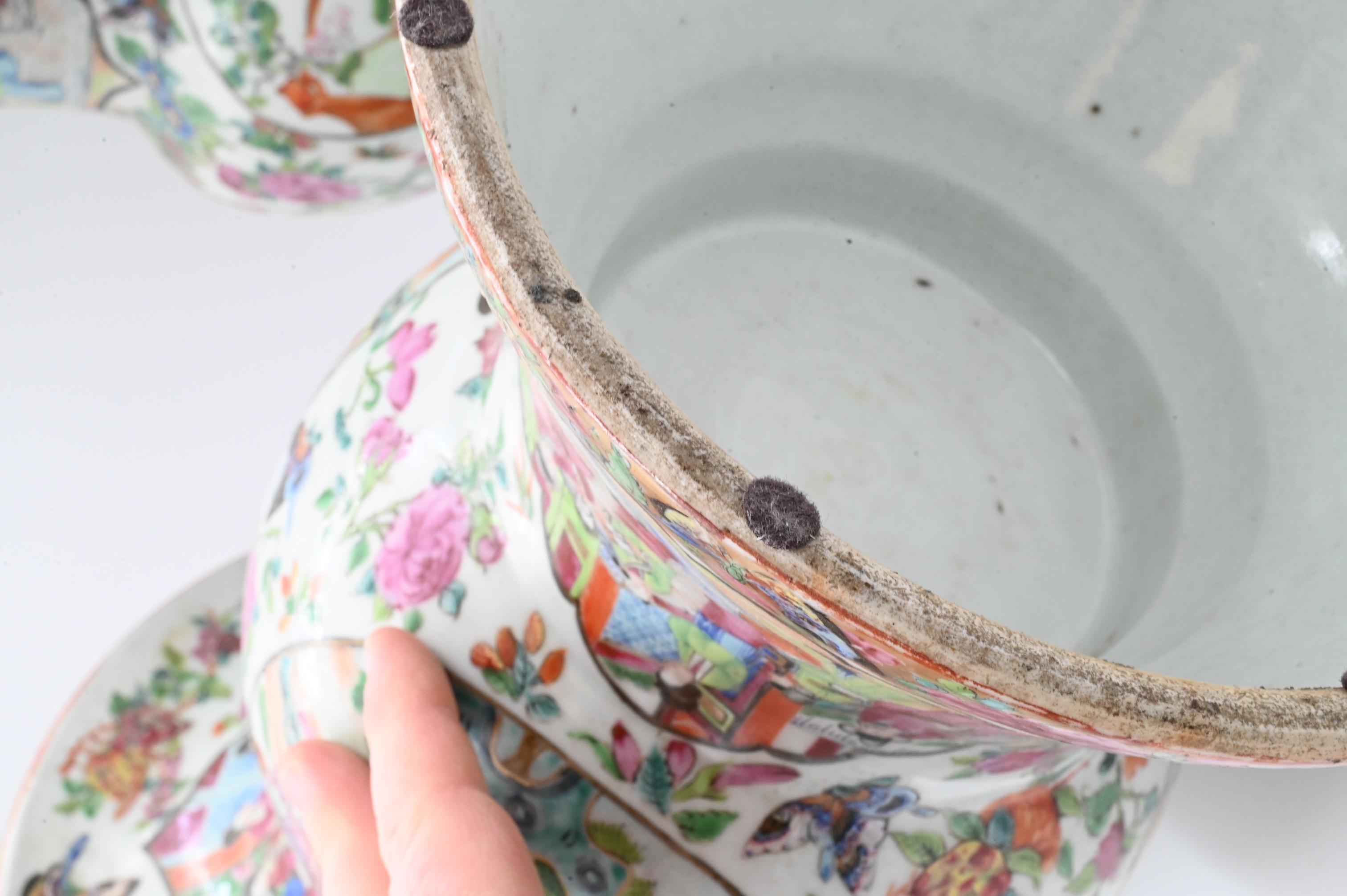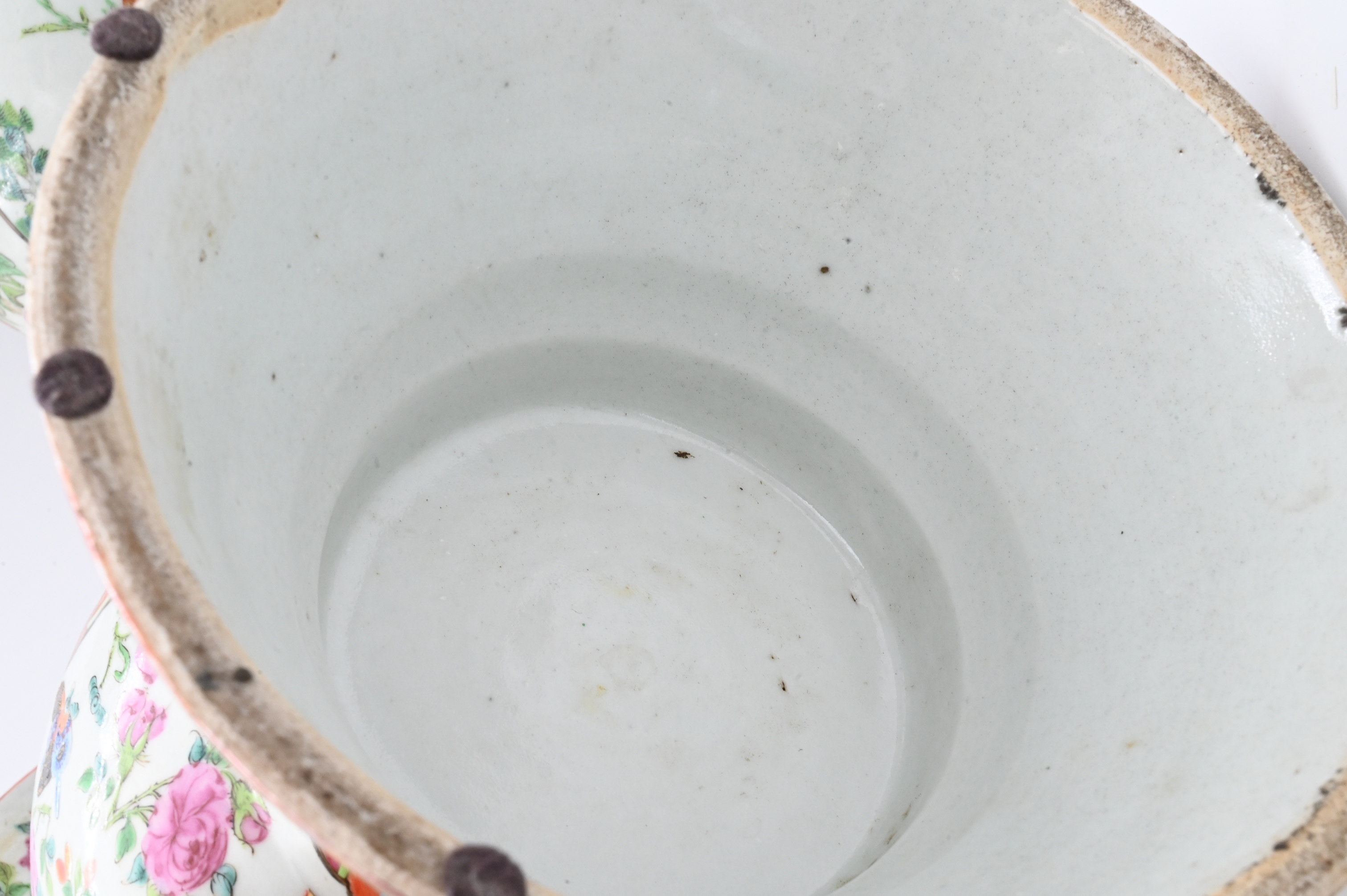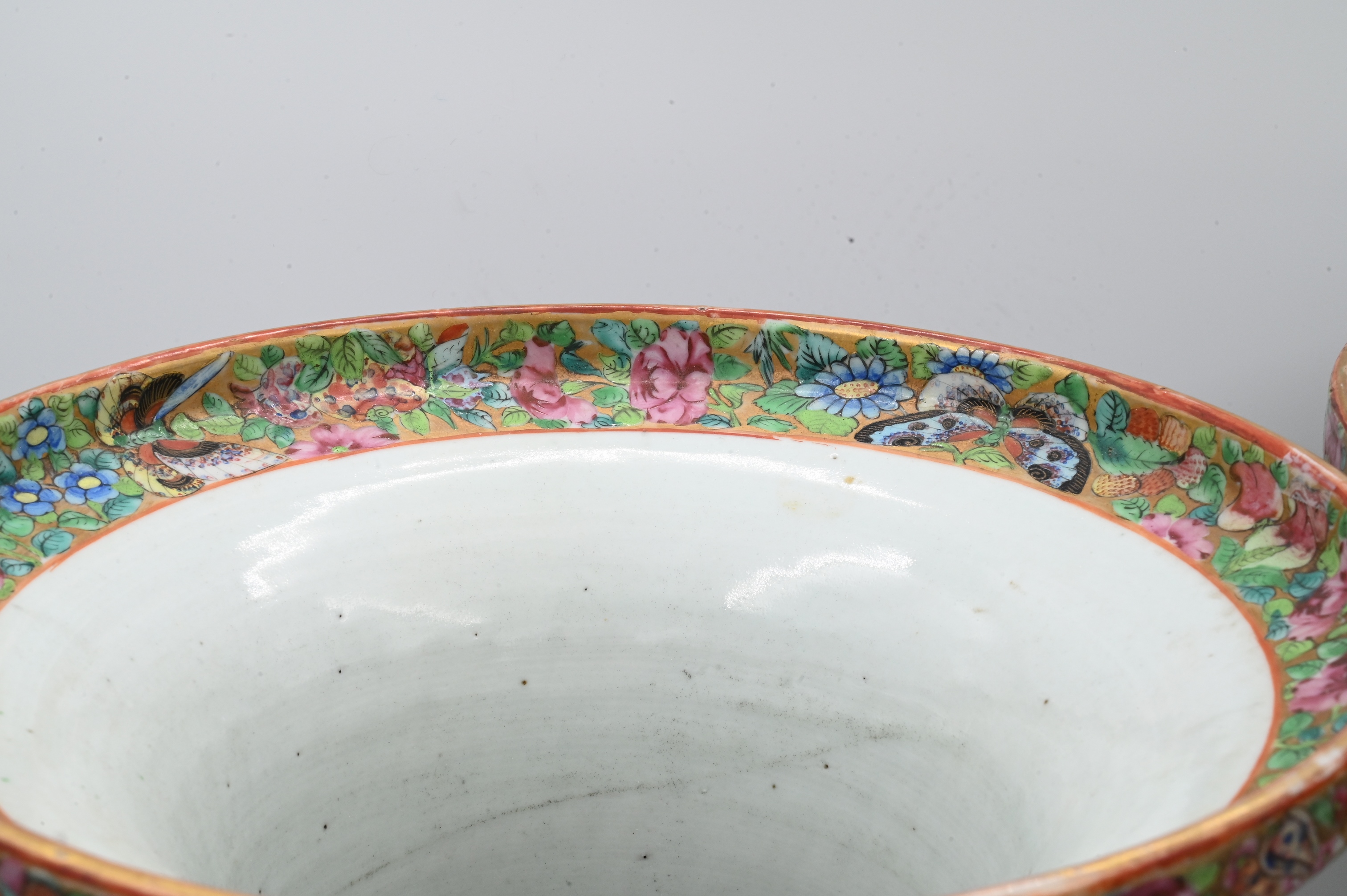 decorated with figural cartouches, floral sprays, and butterflies, unmarked base, 19th century