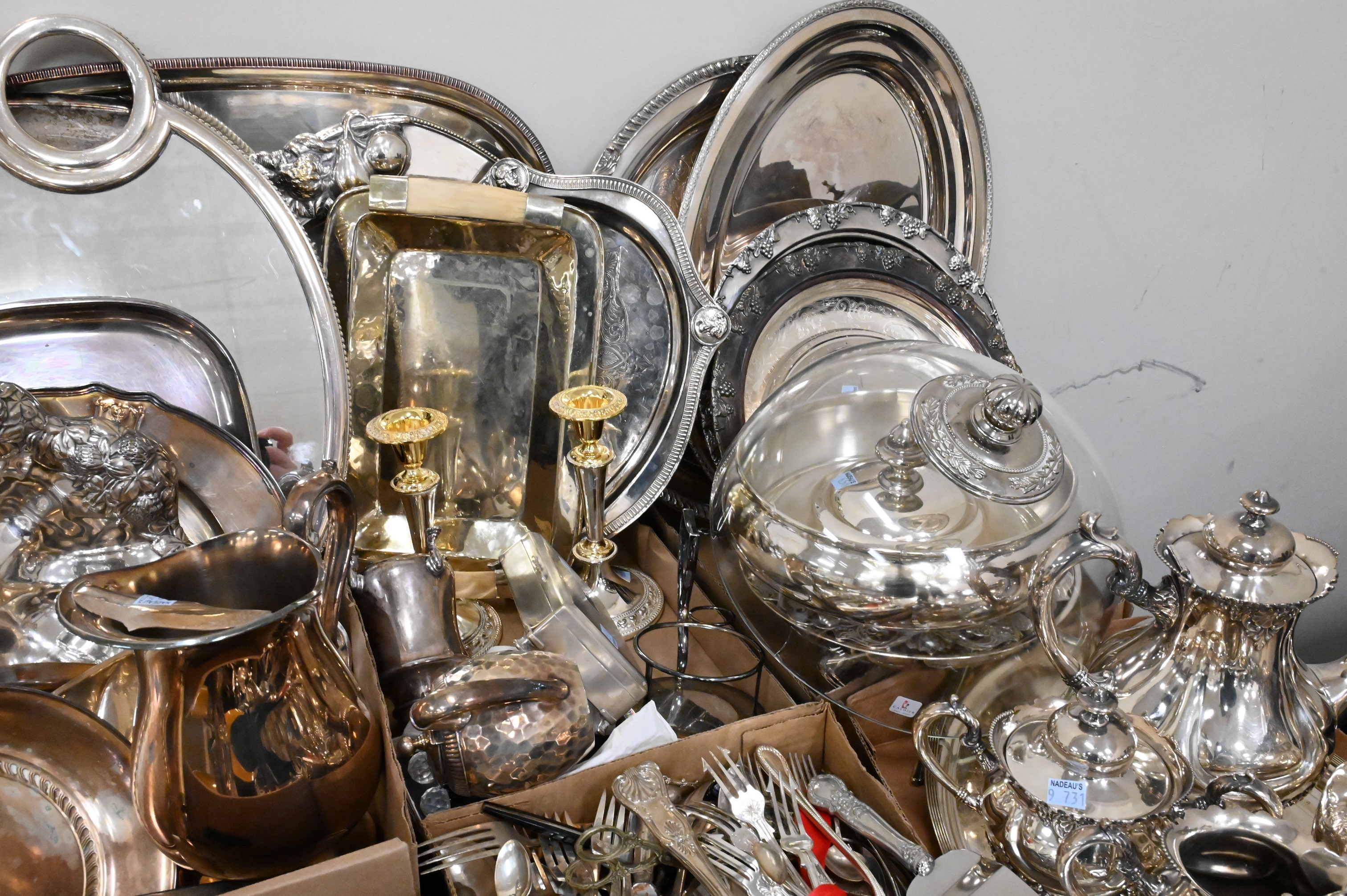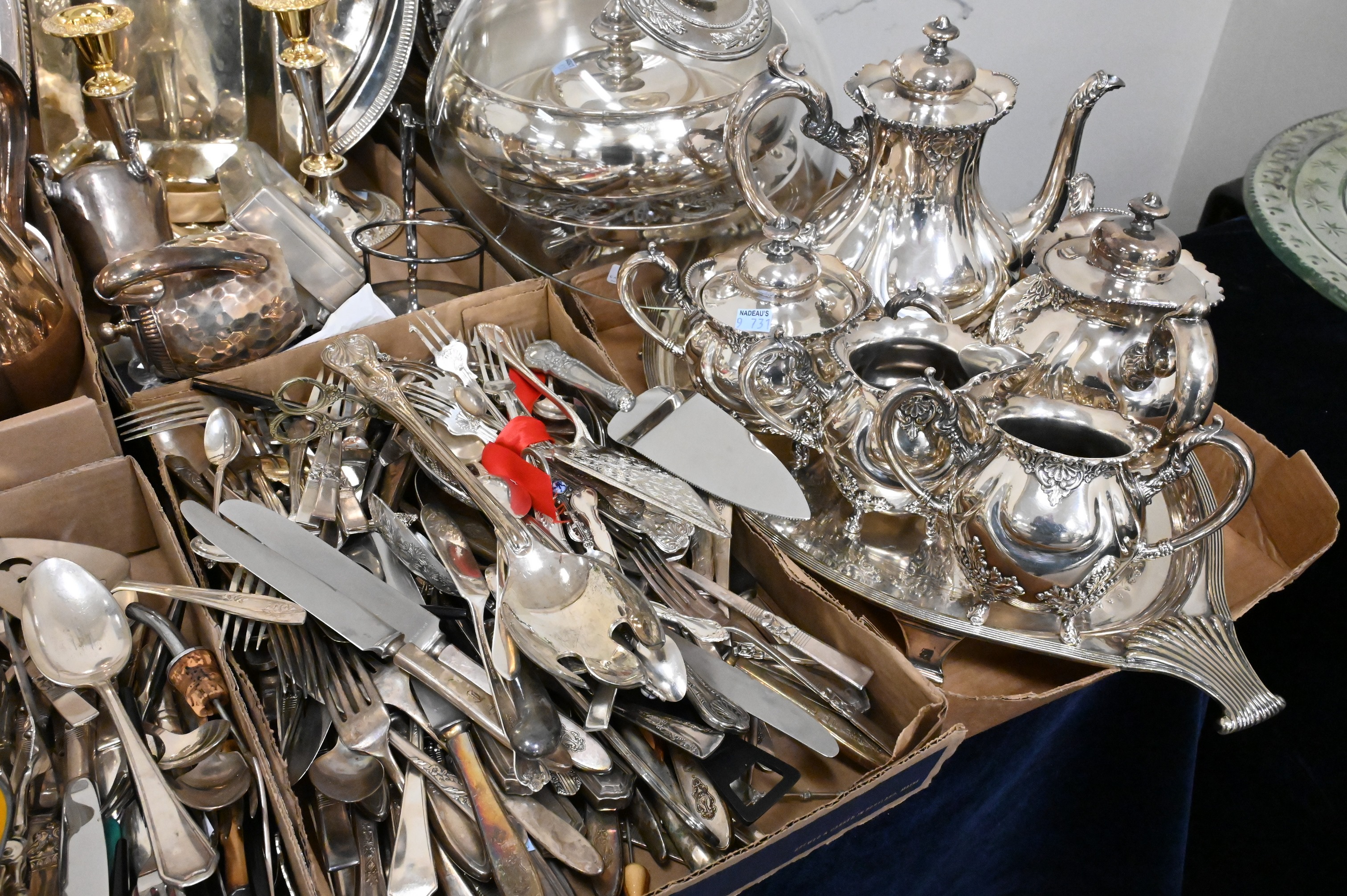 to include platters, repousse plates, tea set, candle sticks, pitcher, utensils, cream and sugar, etcetera