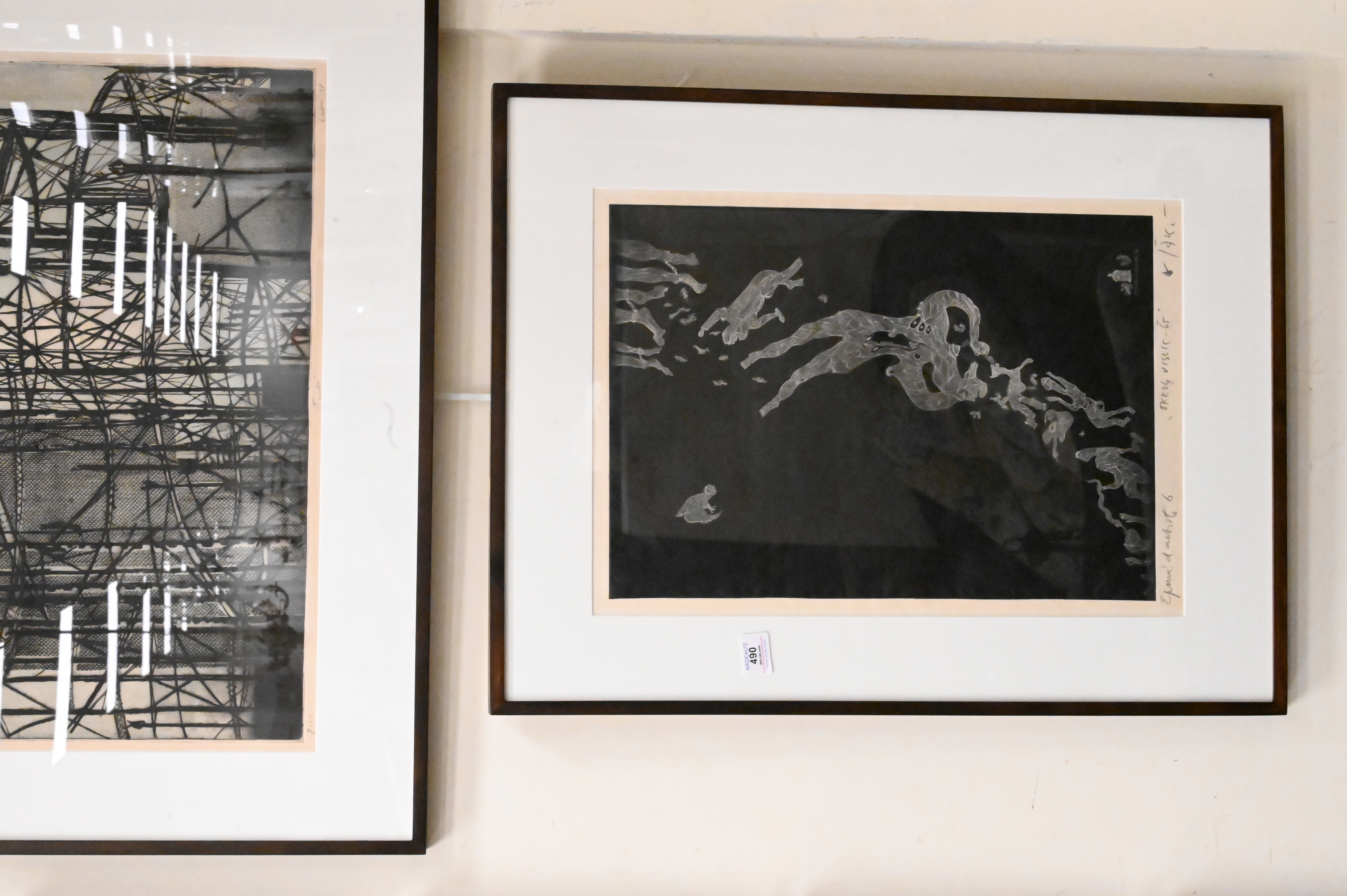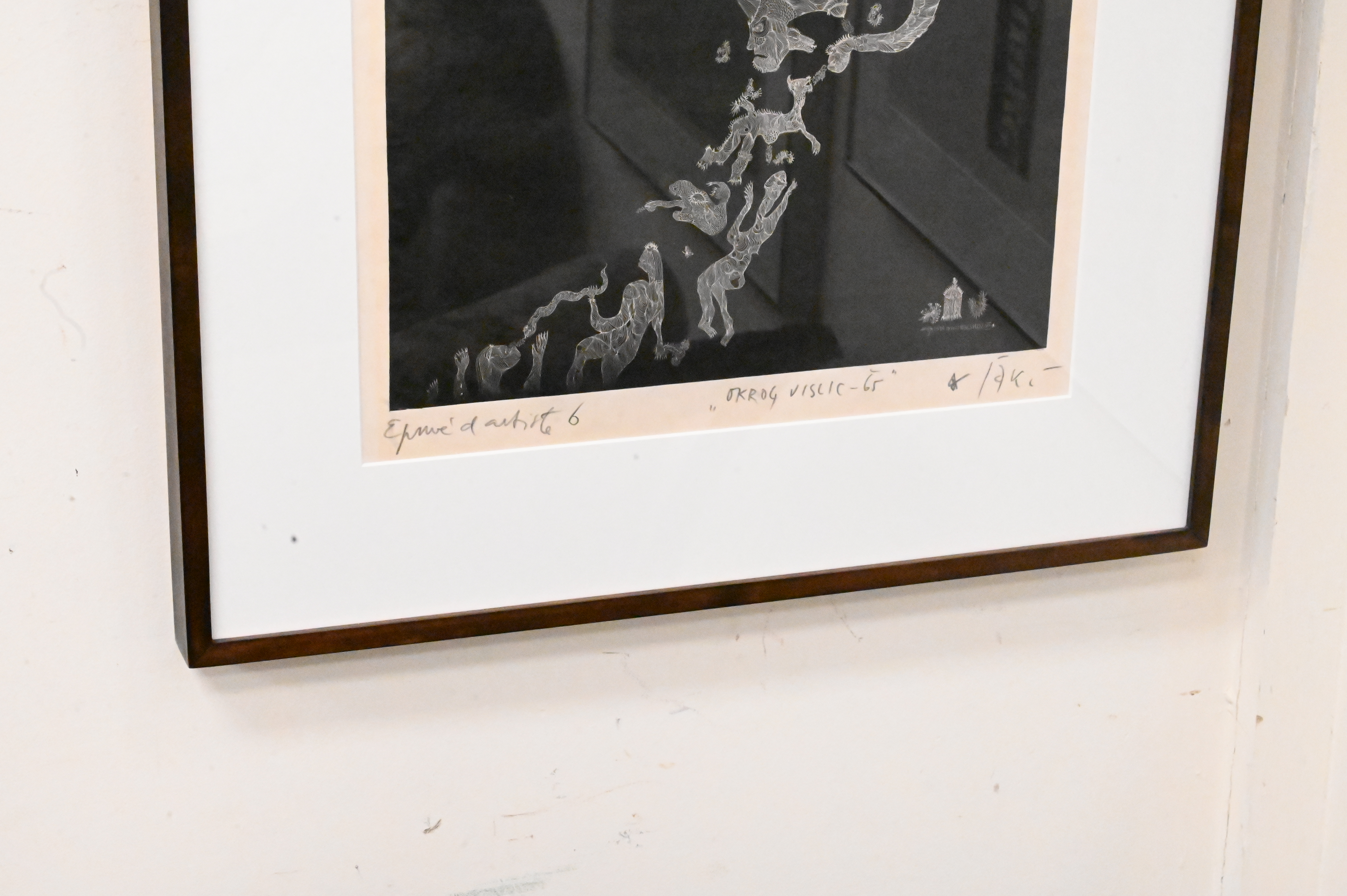 Three Piece Art Lot, to include Gerson Leiber (American, 1921 – 2018), lithograph, ‘The Tanks’, 1958, pencil signed and edition numbered 8/10, frame size 26″ x 31 1/4″ x 1 1/2″, paper size 18 1/2″ x 24″; Jose Horvat Jaki (Yugoslavian, 1930 – 2009), etching, ‘Round the Gallows’, 1965, signed, titled, and dated in pencil, frame size 30″ x 24″ x 1″, paper size 24″ x 18″; along with John Ross (American, 1921 – 2017), linoleum cut, ‘Duomo’, 1959, paper size 31″ x 23 1/2″.