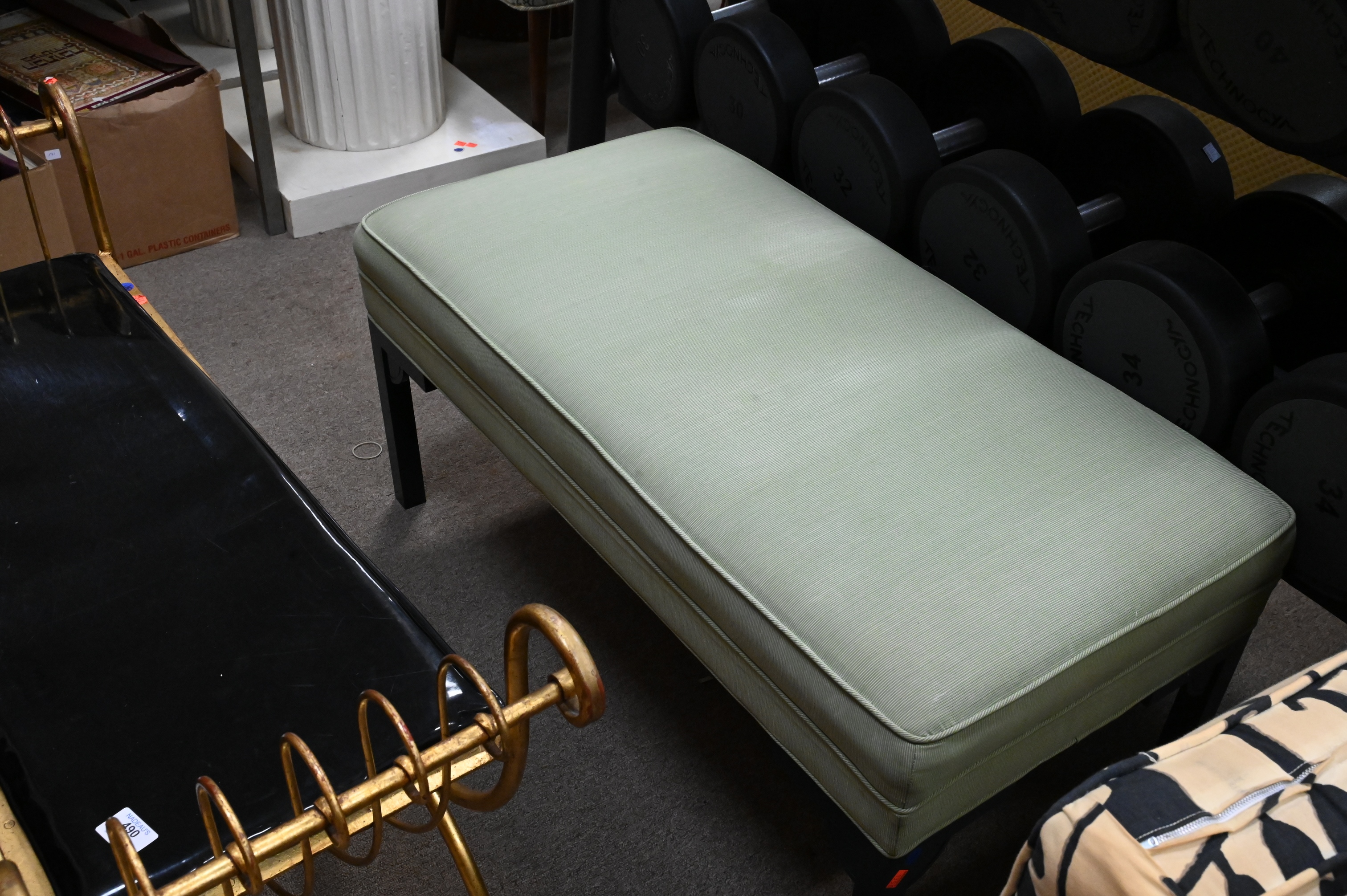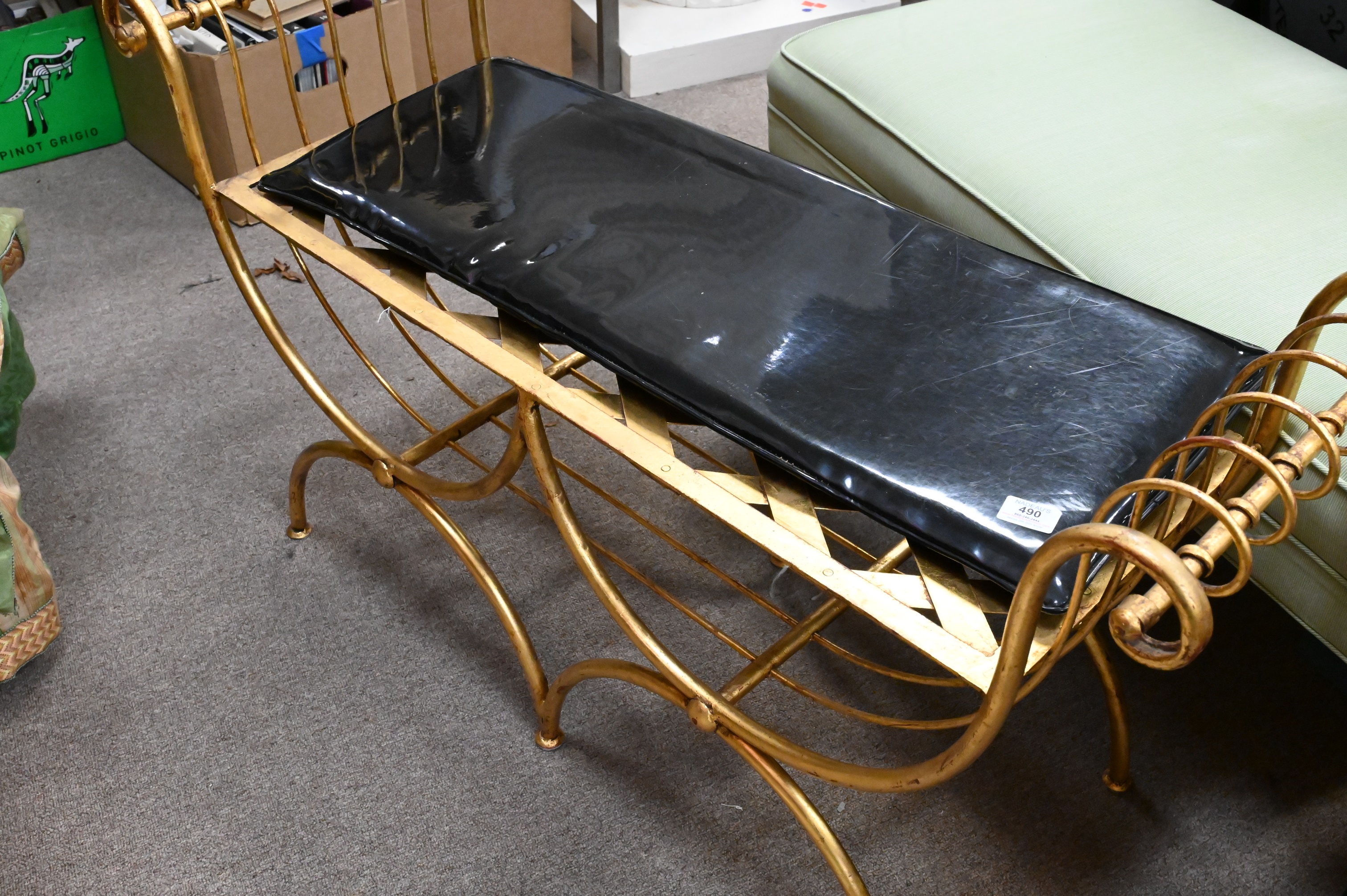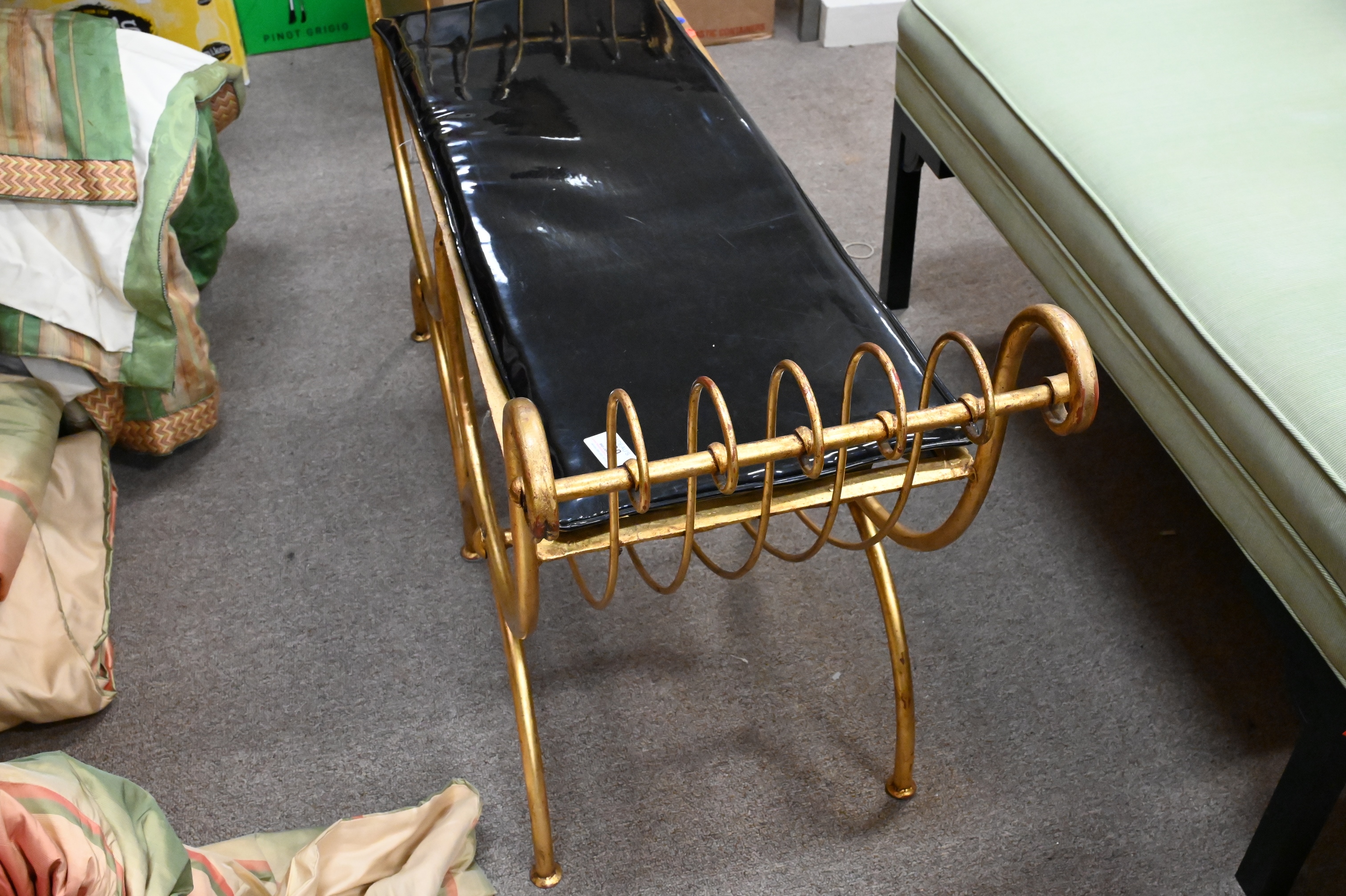 Two Benches, having metal and gold gilt, along with upholstered footstool, tallest 24 inches, length 43 inches, depth 15 inches. Provenance: Property from a private New York collection sold to benefit charitable foundations.