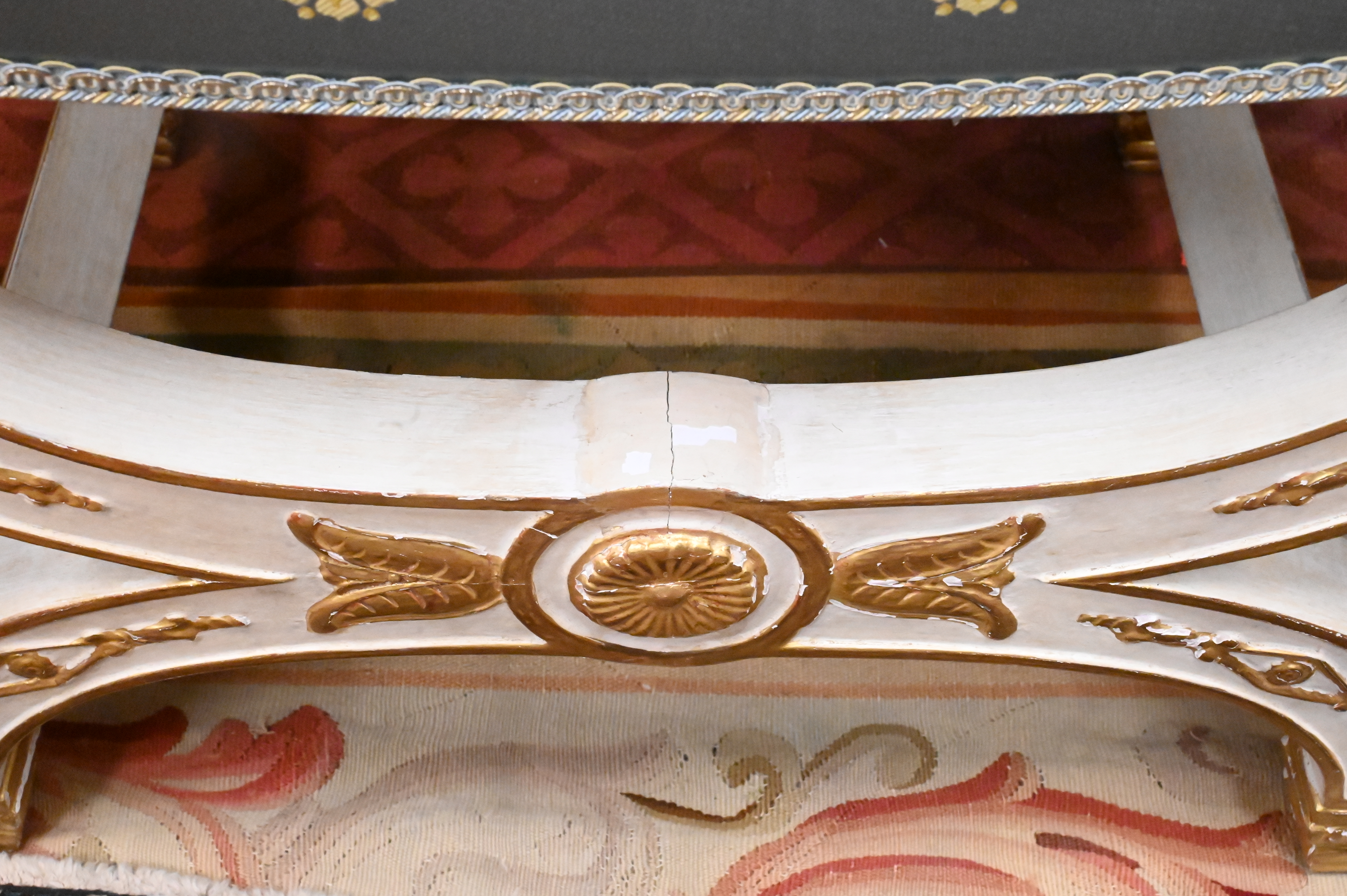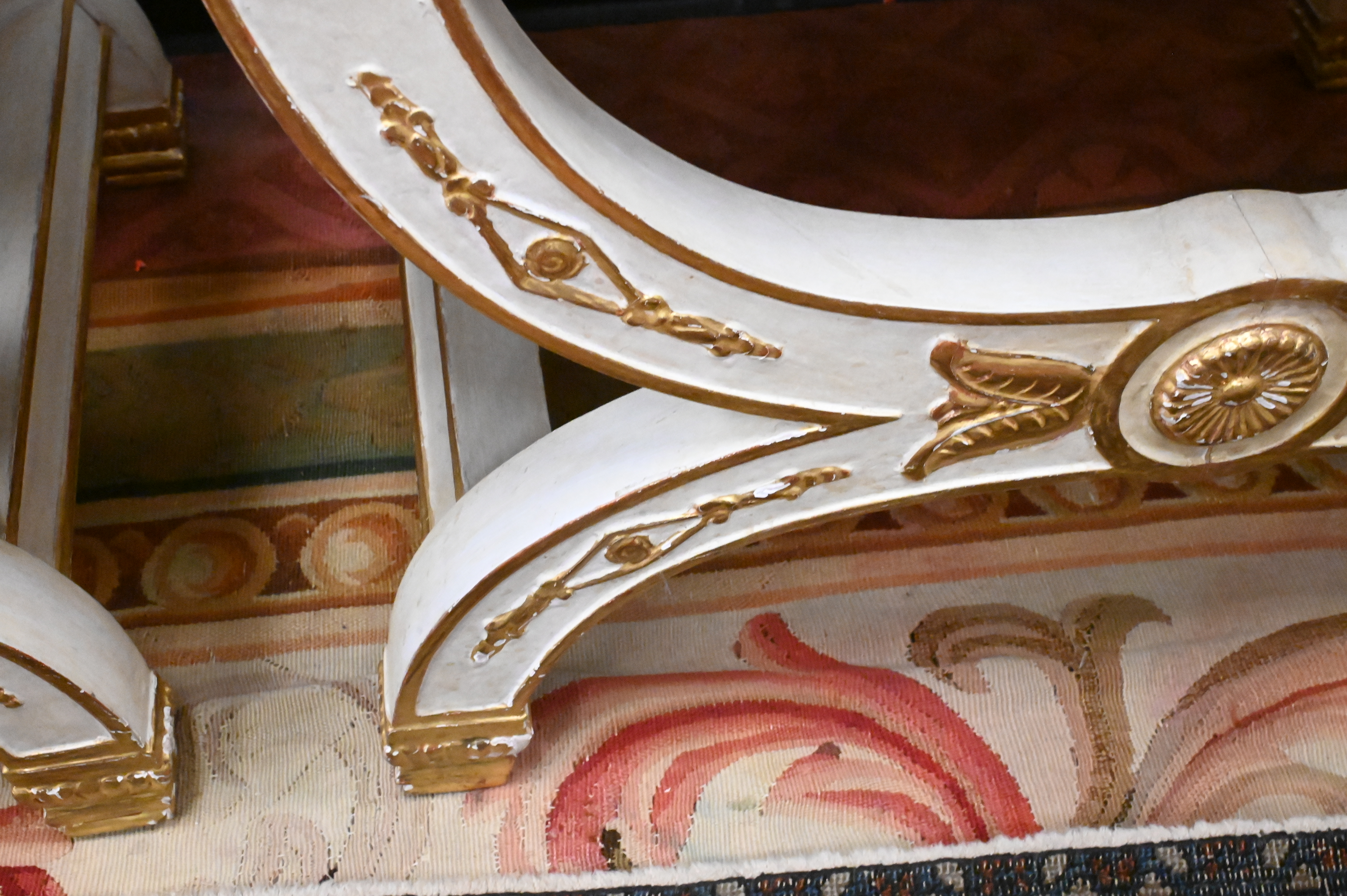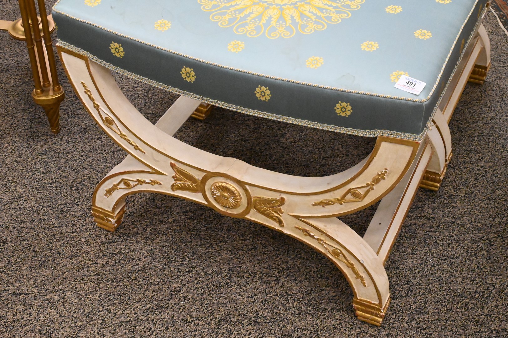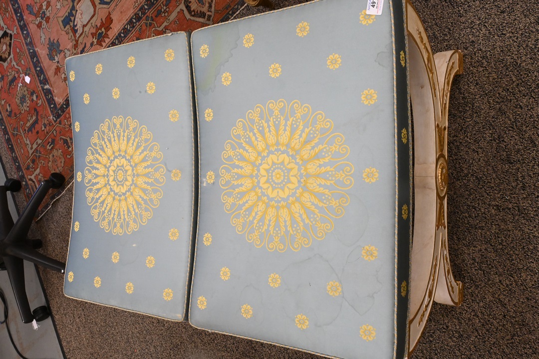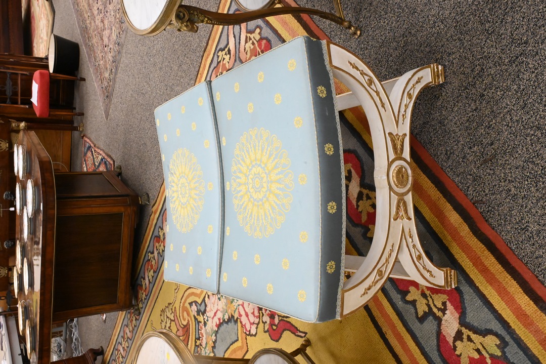 Lot 491: A Pair of Neoclassical Style Parcel-Gilt White Painted Tabourets