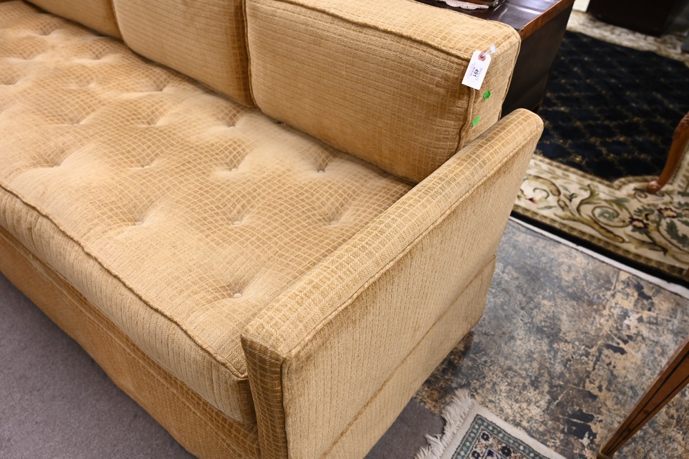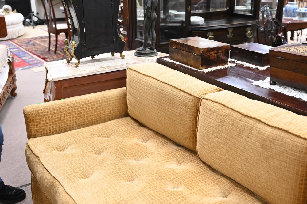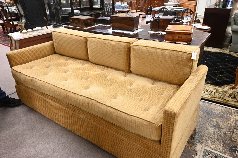 Lot 491: Custom Upholstered Sofa, height 38 inches, length 83 inches.