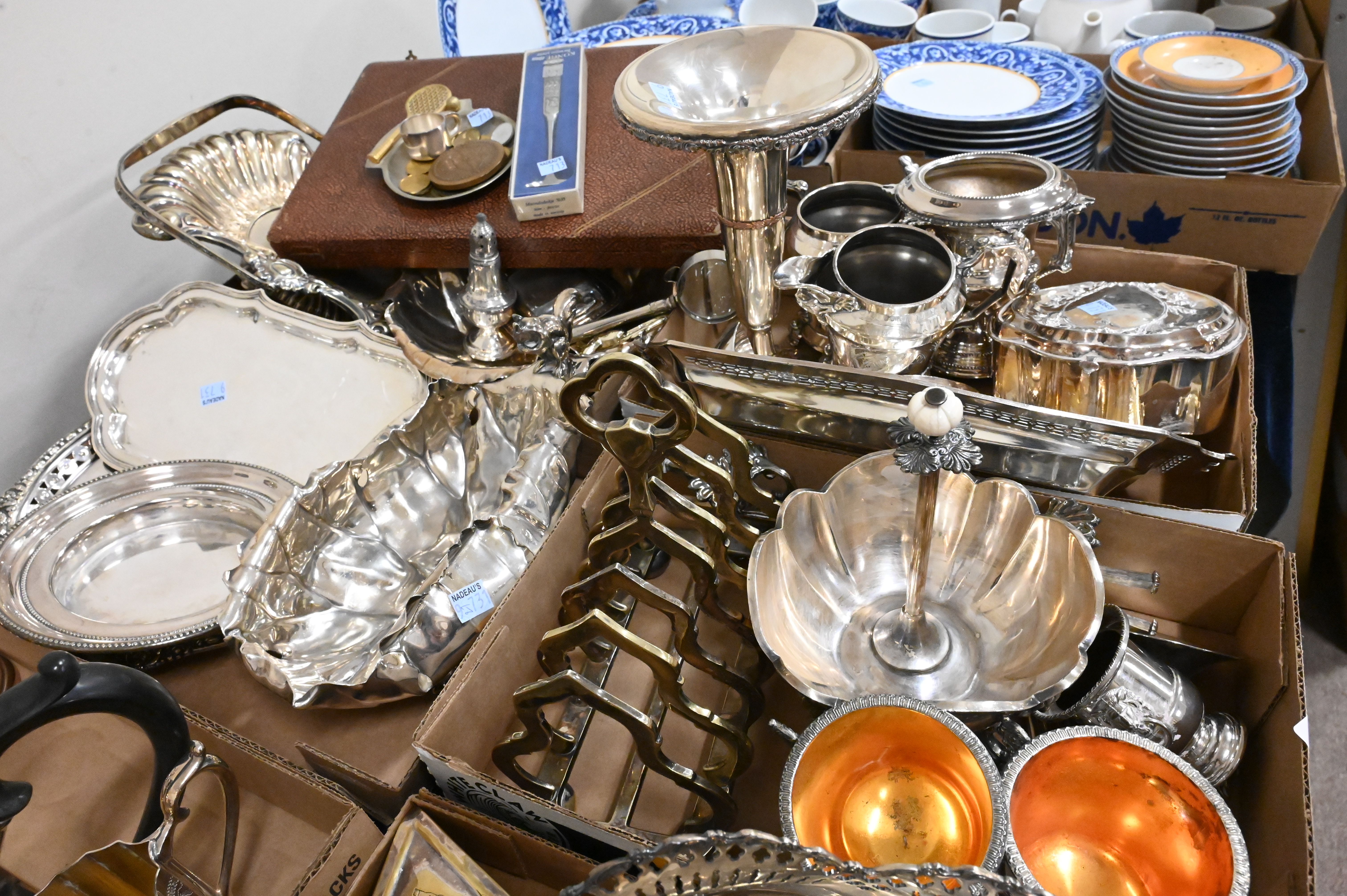 Lot 491: Eight Box Lots of Silver Plate and Handles