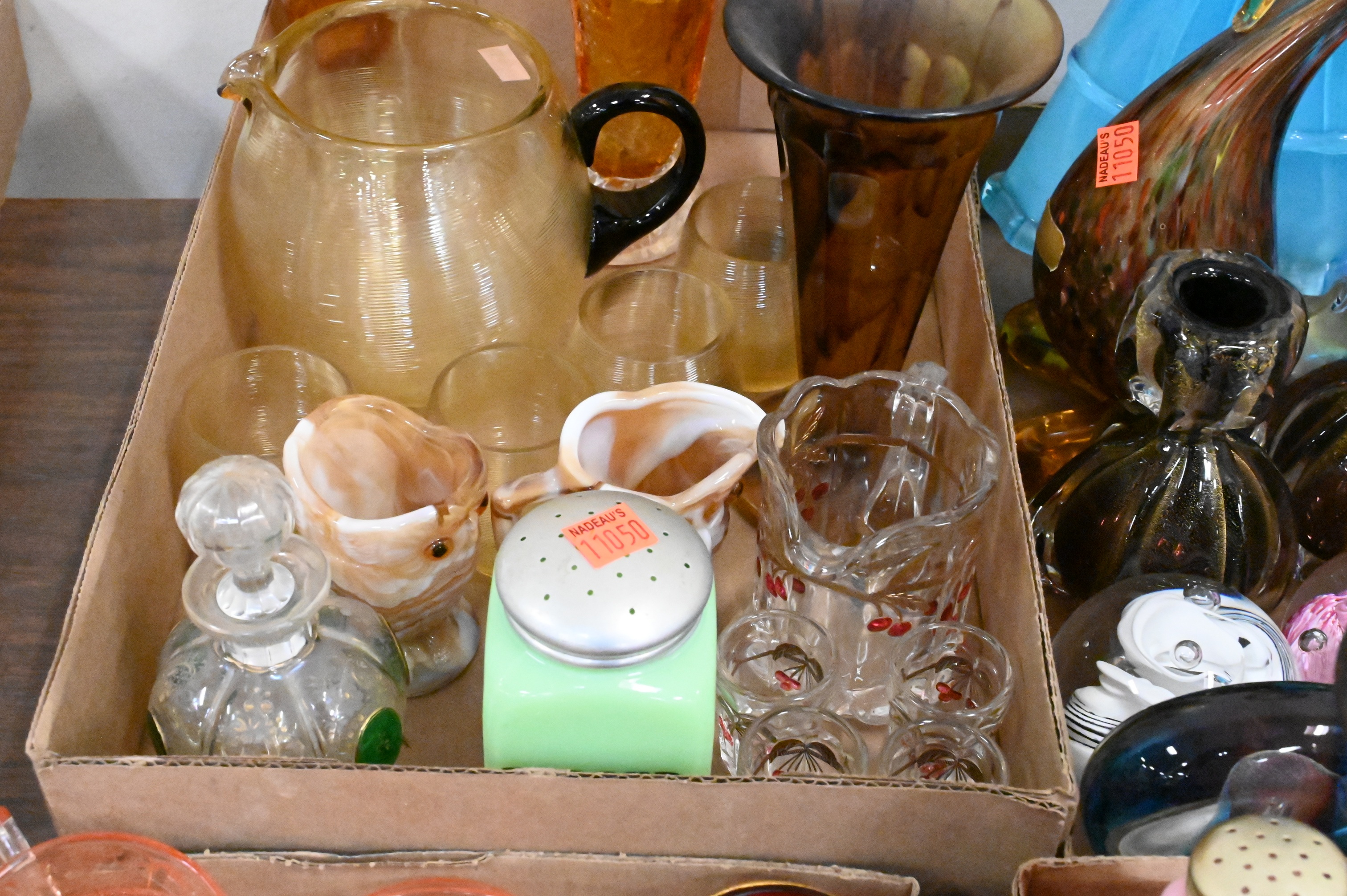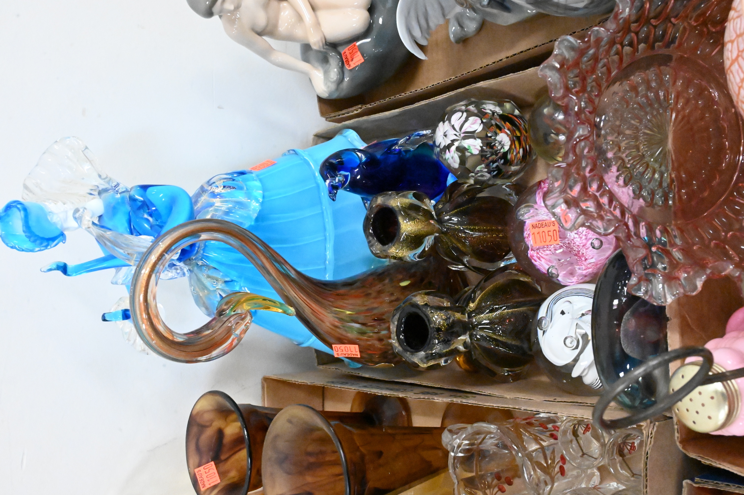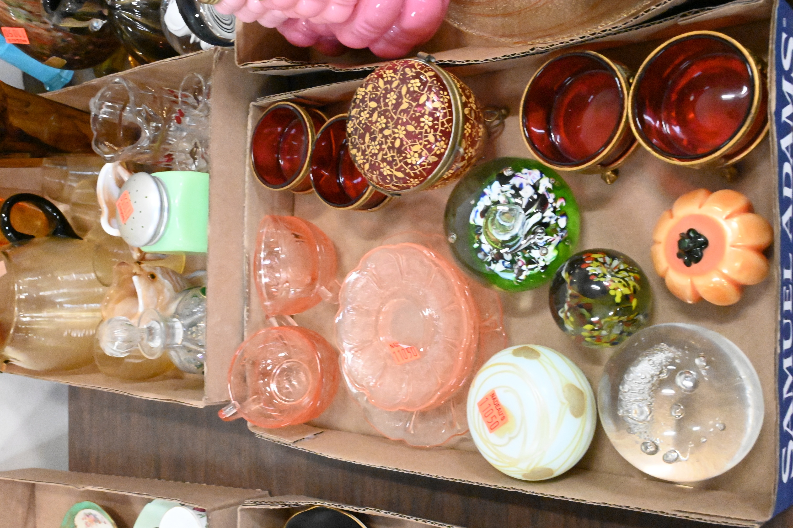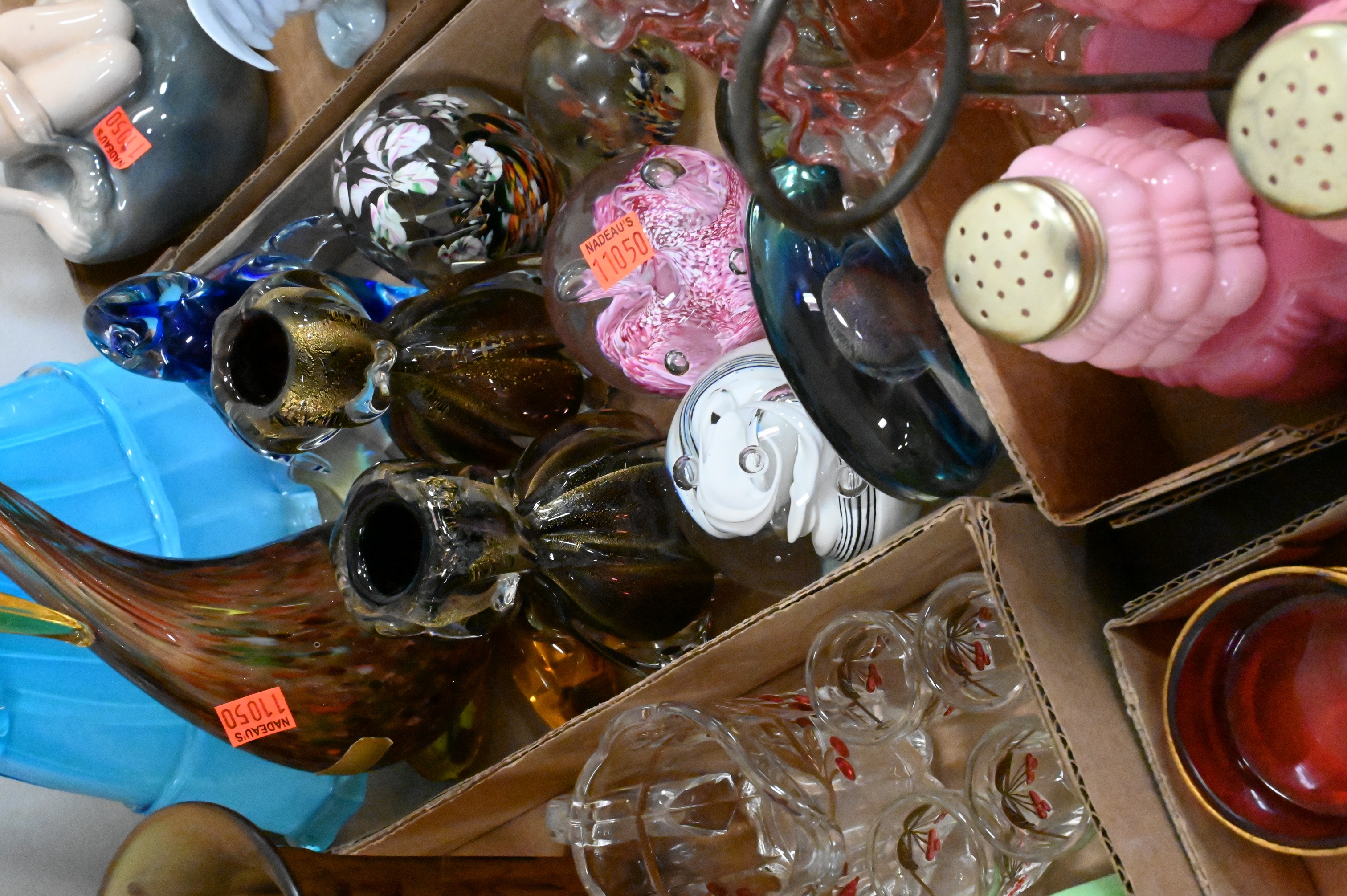 Murano figures, thread glass, millefiori paperweights, pink glass, vases etc…