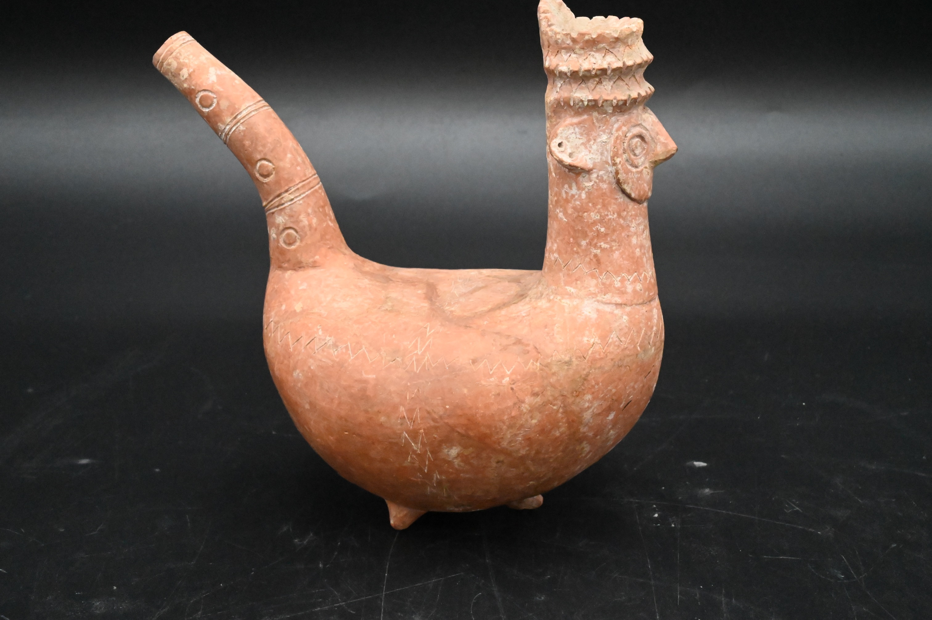 Lot 491: Iranian Pottery Human-Headed Bird-Form Spouted Vessel