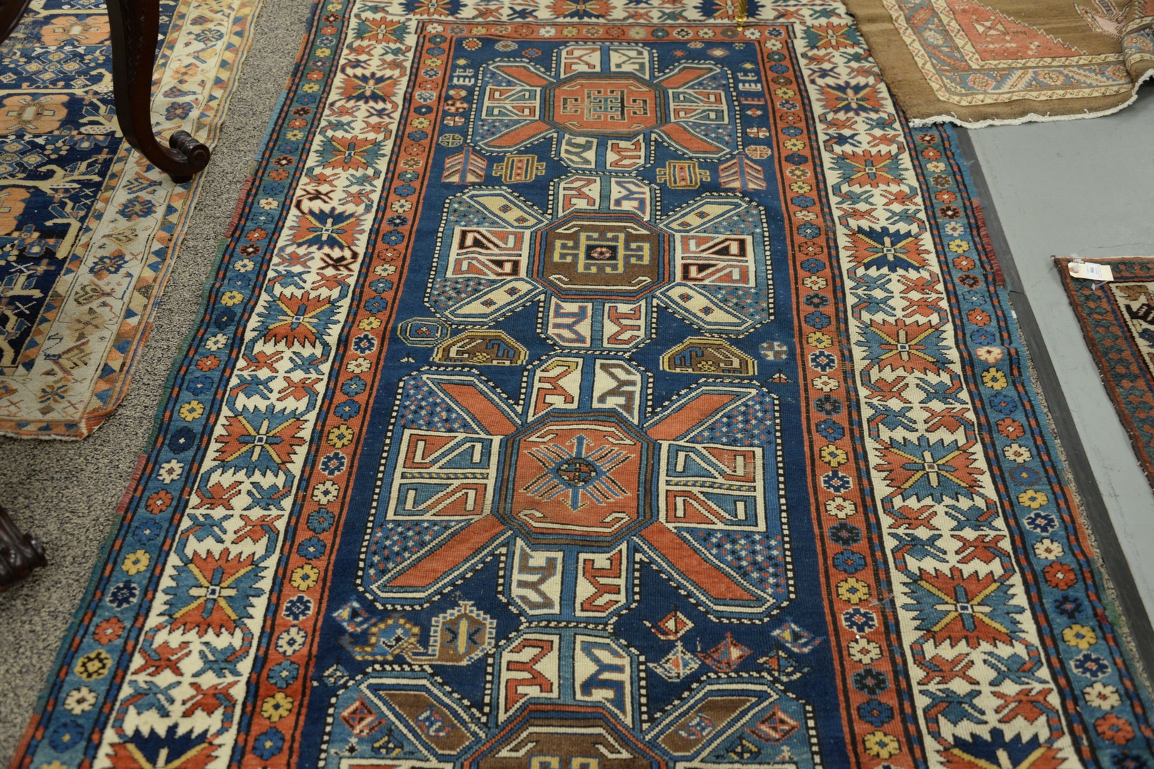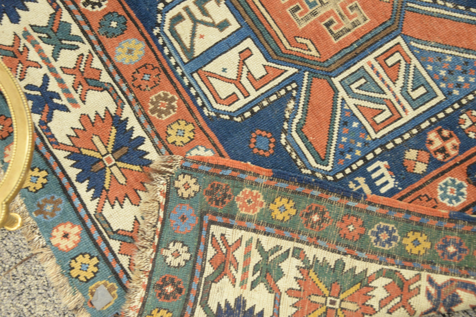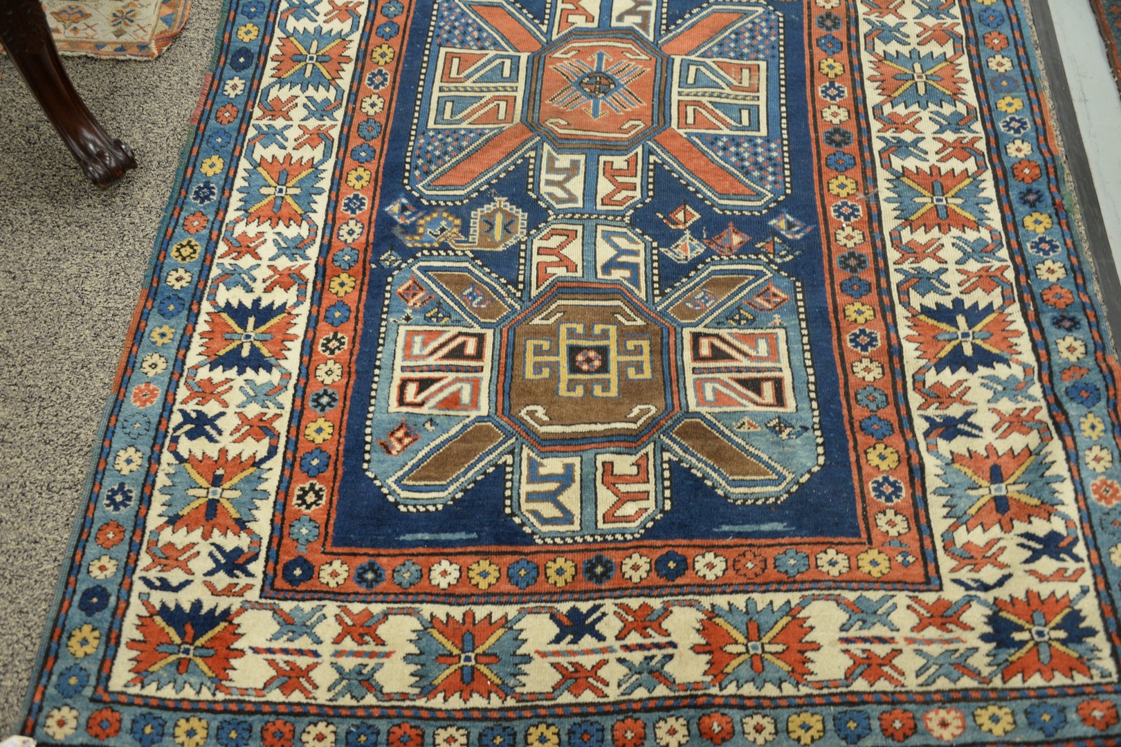 Lot 491: Kazak Oriental Rug 4’6 x 8’6 Provenance: Estate of Dr. Thomas & Alice Kugelman, Bloomfield, Connecticut