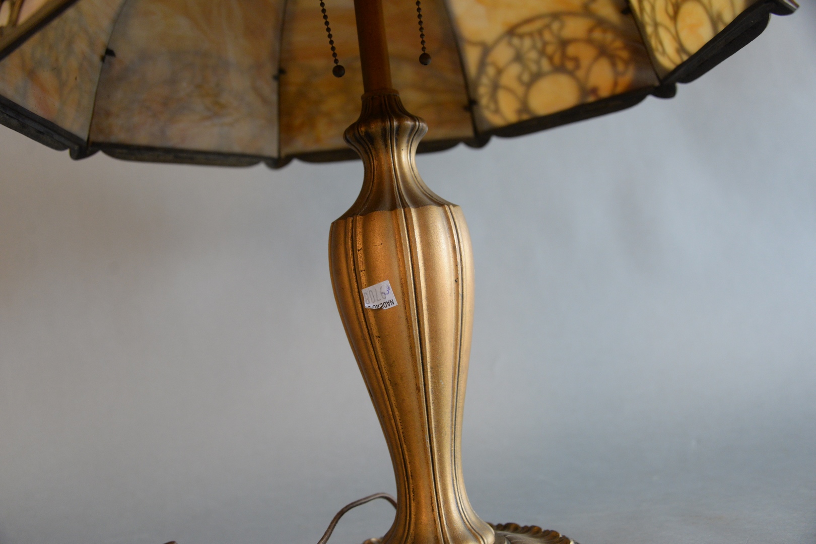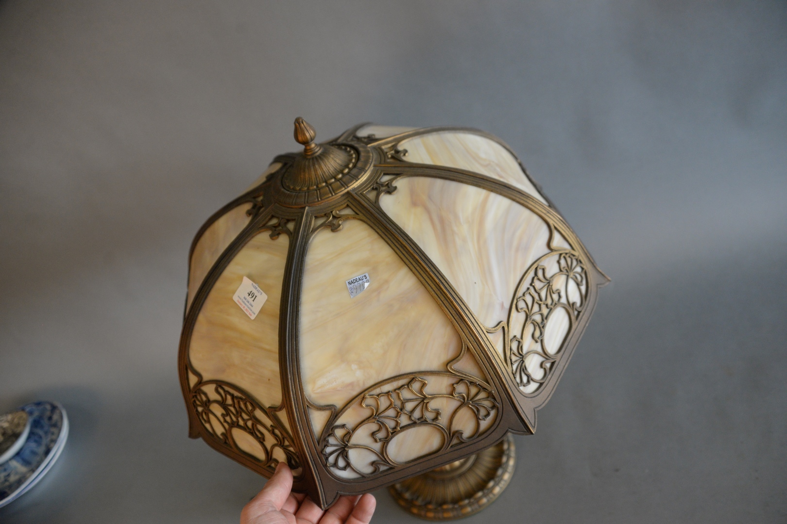 Lot 491: Large Caramel Slag Glass Table Lamp eight panels height 22 1/2 inches, diameter 20 inches Provenance: Thirty-five year collection of…