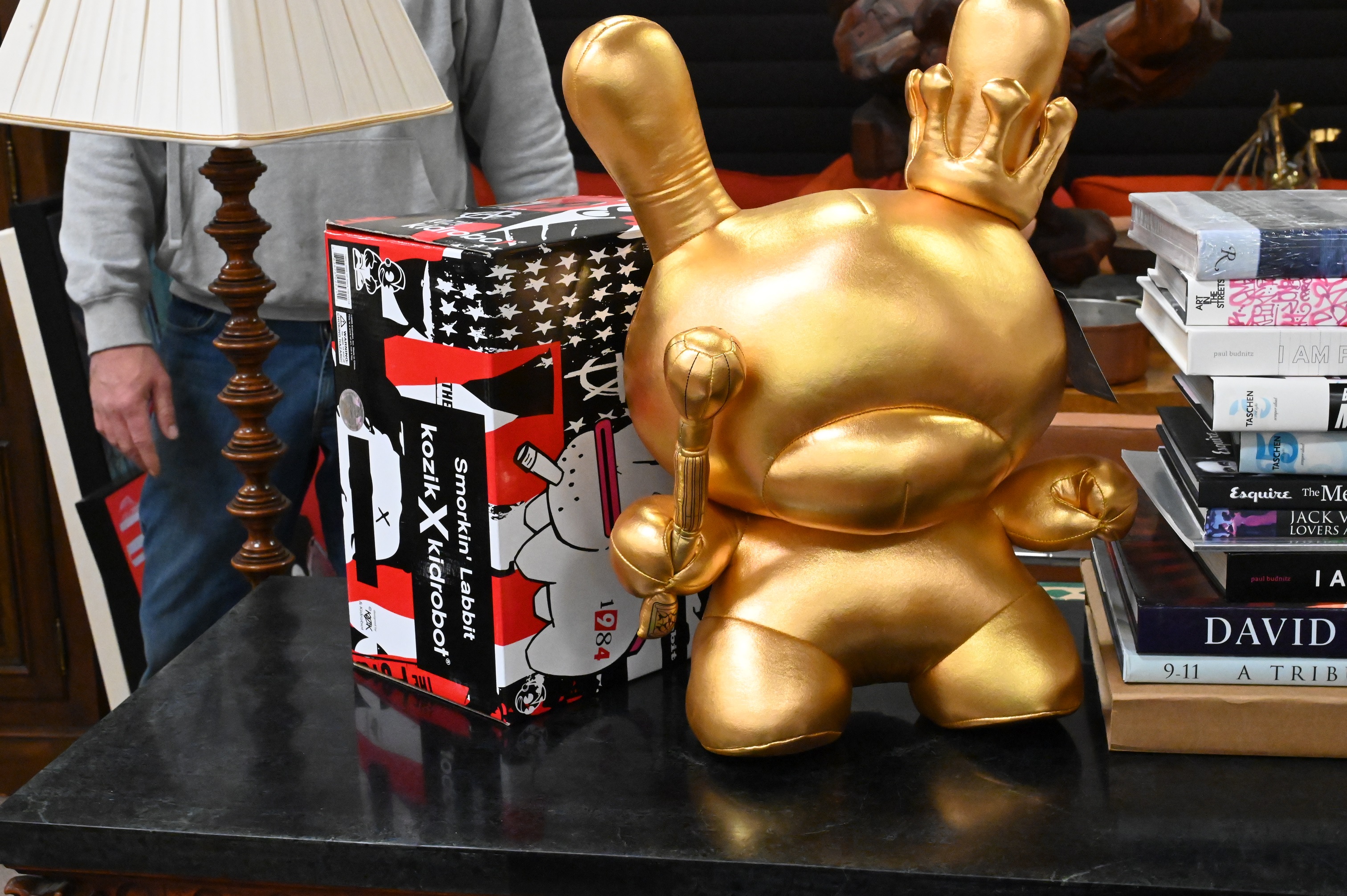Tristan Eaton for Kidrobot, Gold King, 2012, gold plush dunny, 292/500, almost new with very few marks