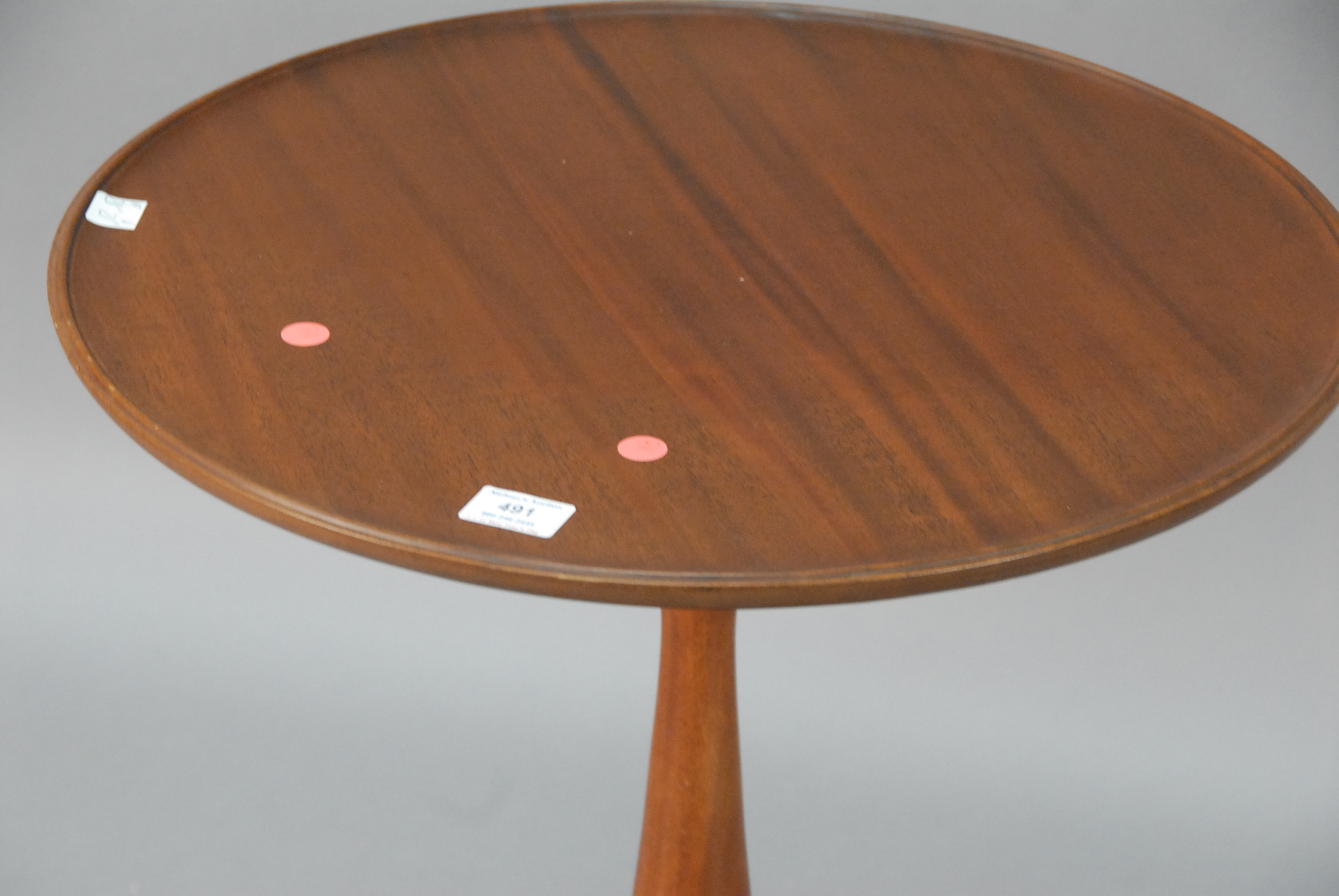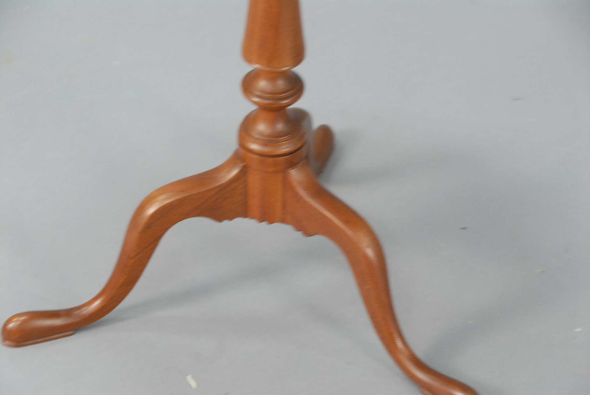 Margolis mahogany candlestand with dished top, branded Margolis Shops. height 28in. diameter 21in.